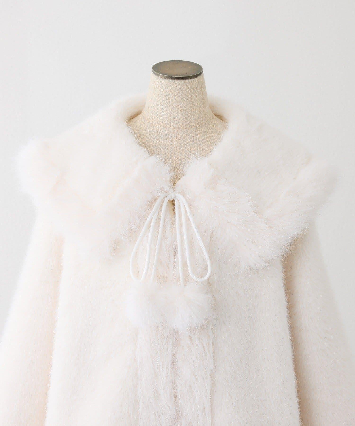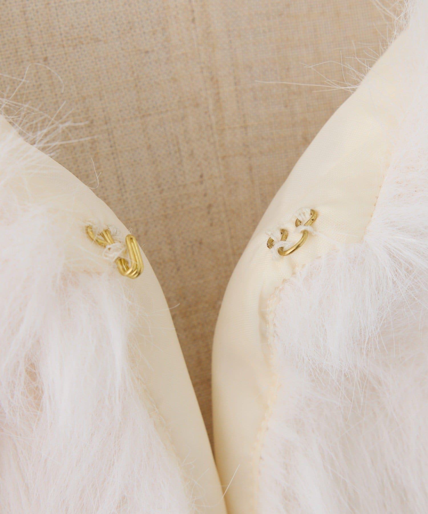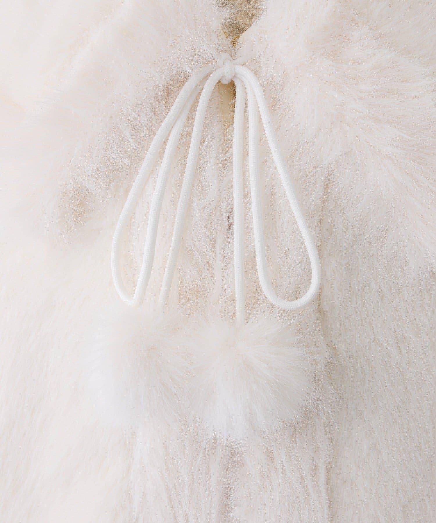 領口處的毛皮飾有絨球,設計既可愛又優雅。