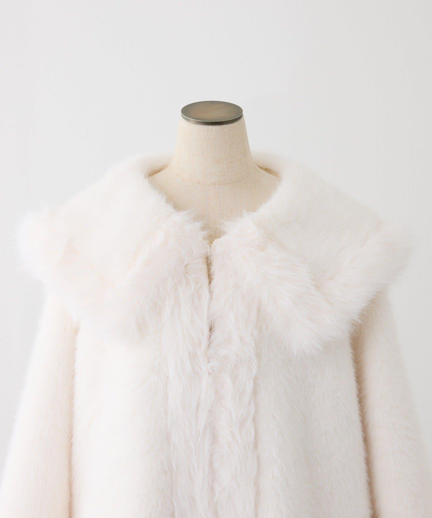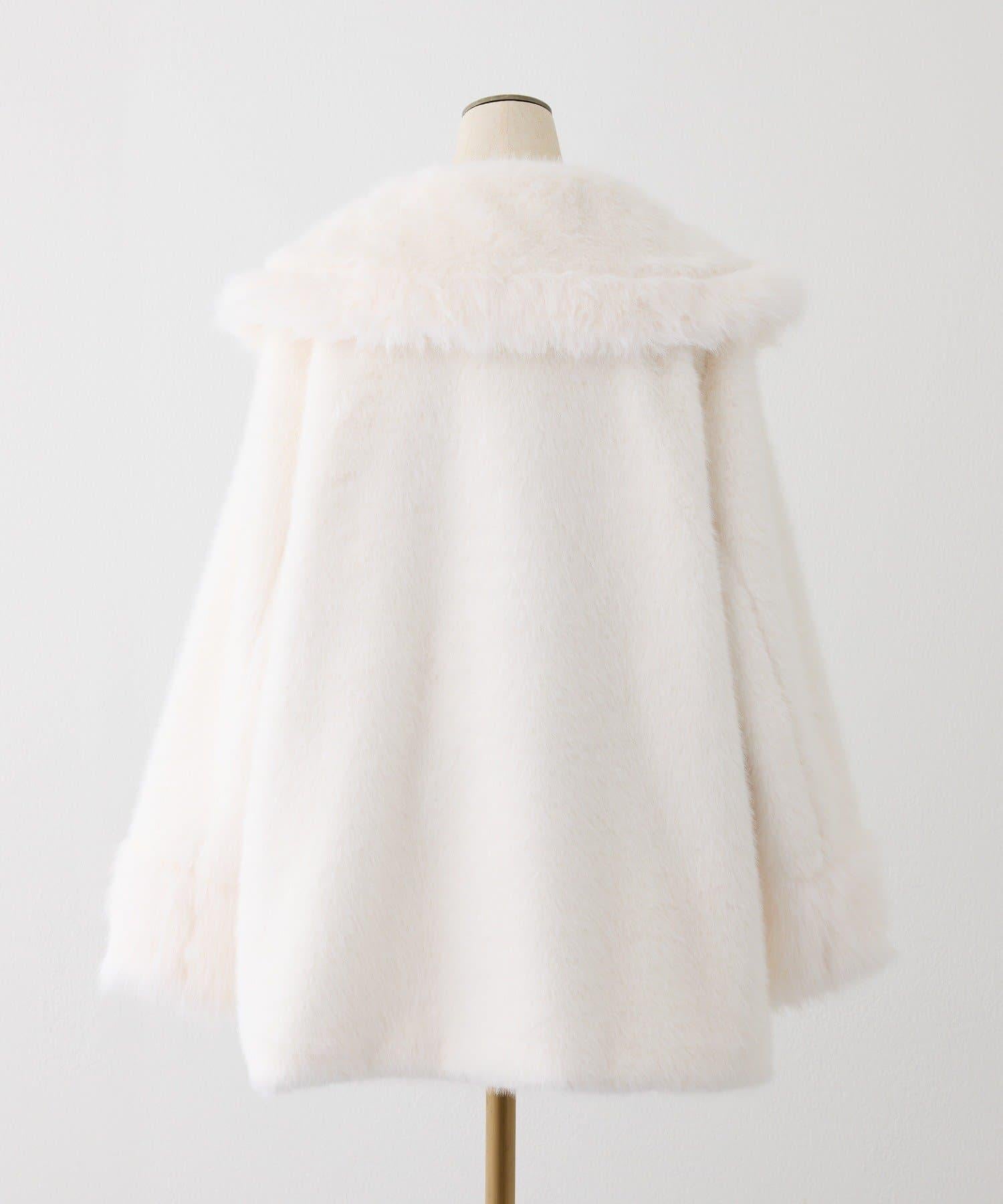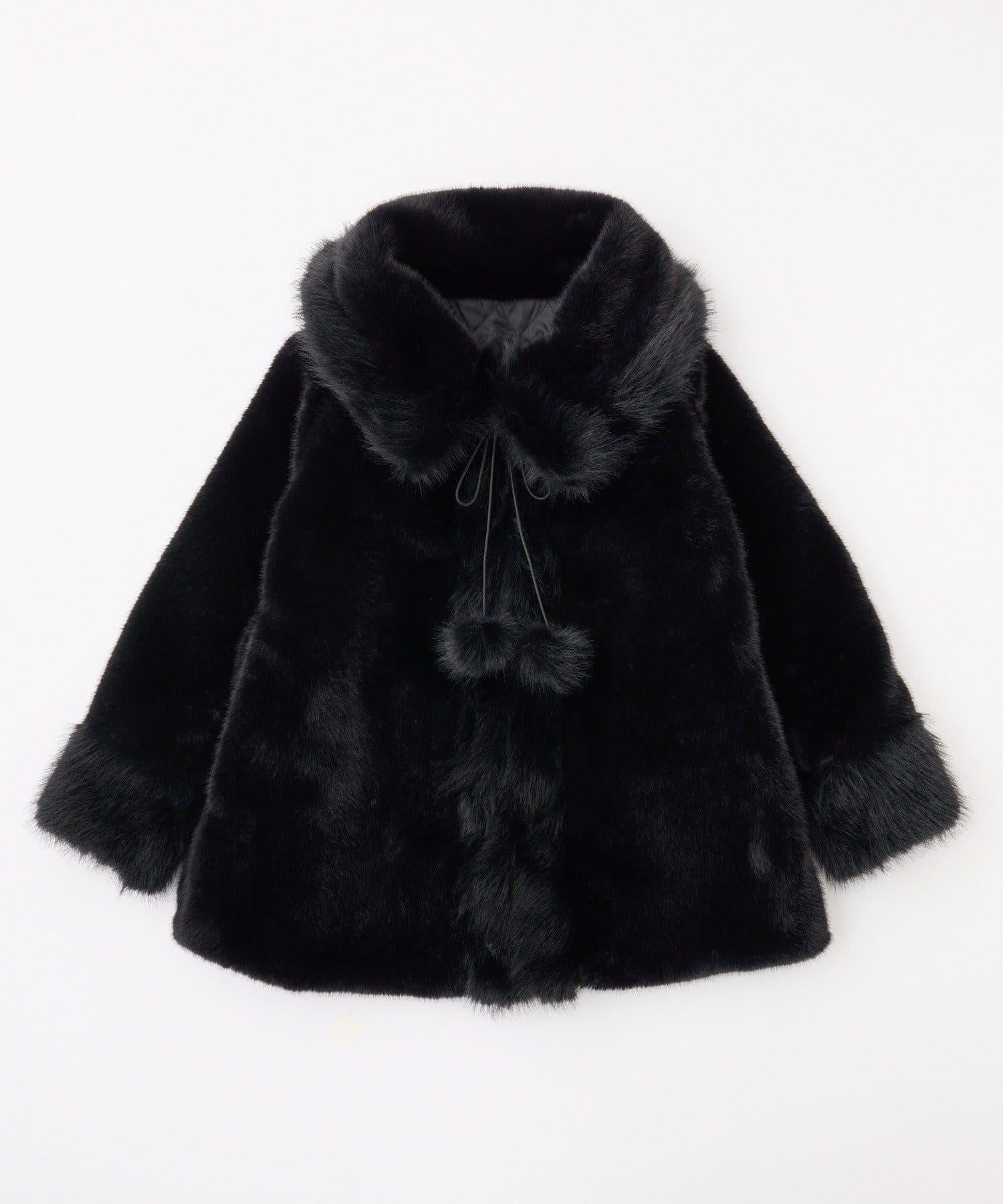 領口處的毛皮飾有絨球,設計既可愛又優雅。
