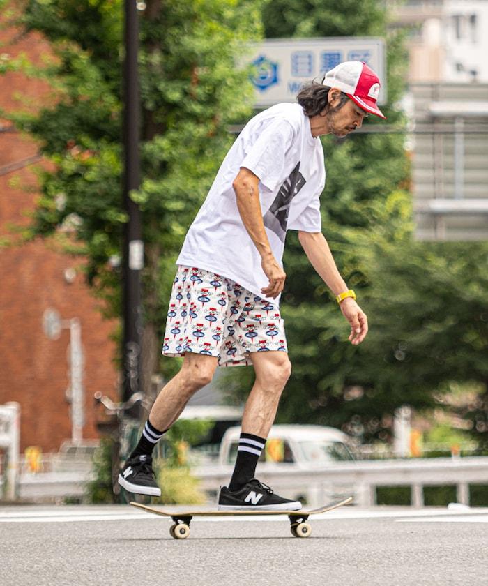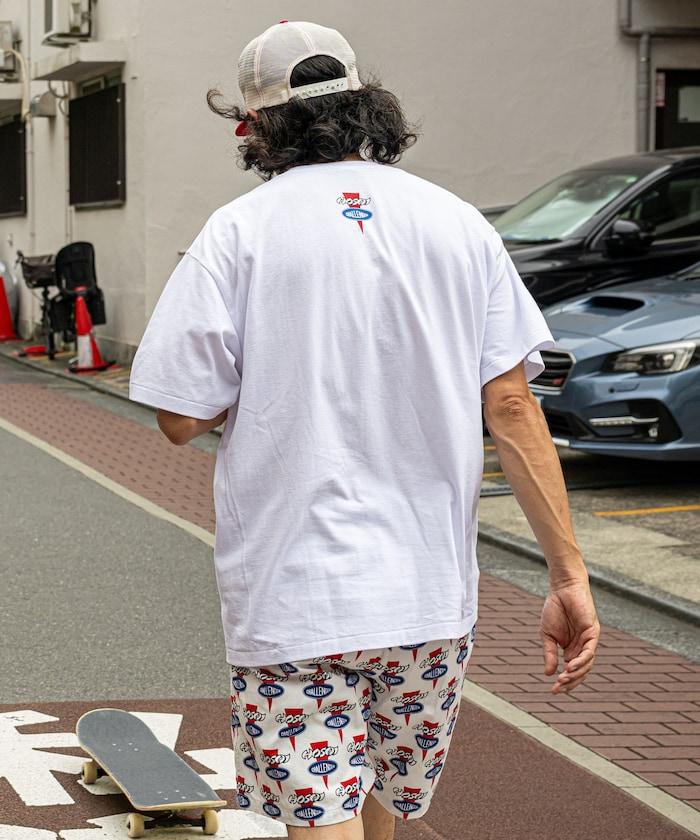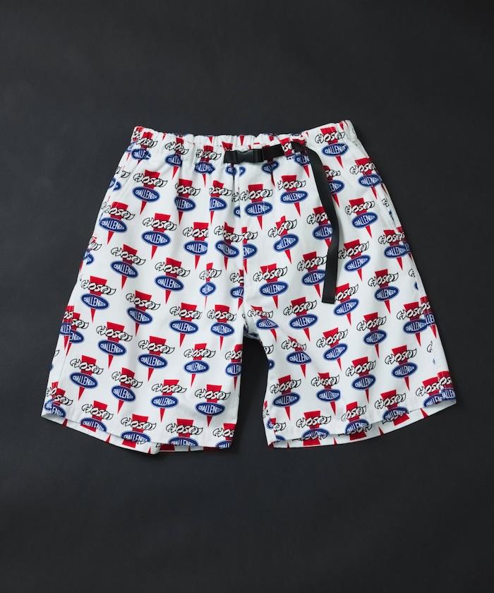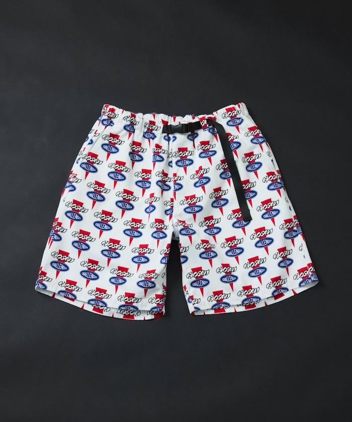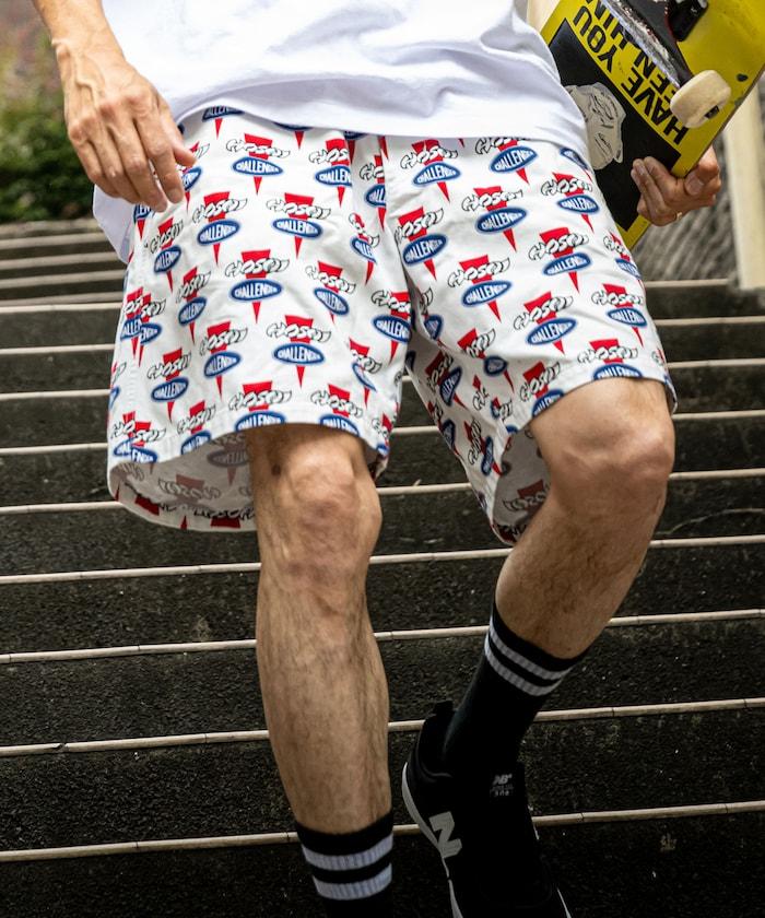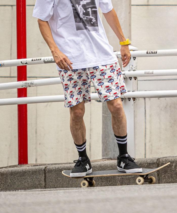 簡易短褲,印有 HOSOI SKATEBOARDS 和 CHALLENGER 的合作標誌。