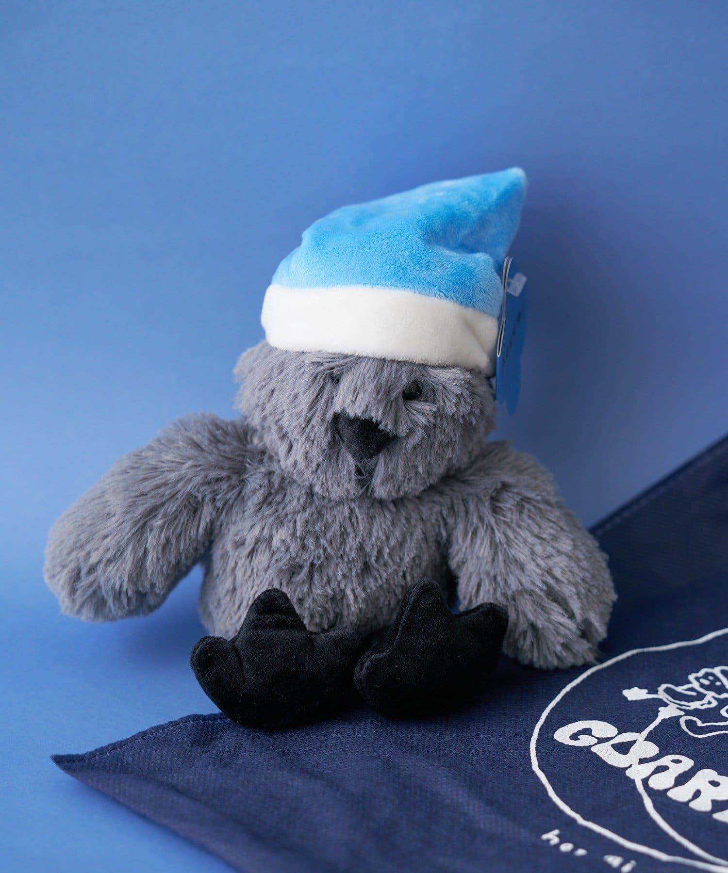 帶藍色帽子和鳥嘴的可愛毛絨玩具