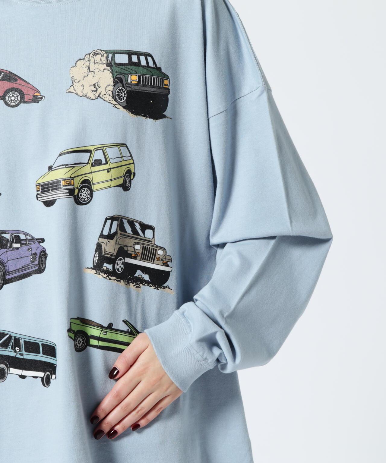 Hub PRODUCTS/Hub Products CAR L/S TEE 你想駕駛哪輛車?你一直想開的那輛車就印在上面!寬大的輪廓使其成為中性款式!可搭配裙子、牛仔褲或其他任何服飾。Hub PRODUCTS] 以世界各地城市的紀念品、動物園、博物館、雜誌副刊和其他古色古香的復古物品為設計藍本,採用插圖和印刷技術製作的復古物品。