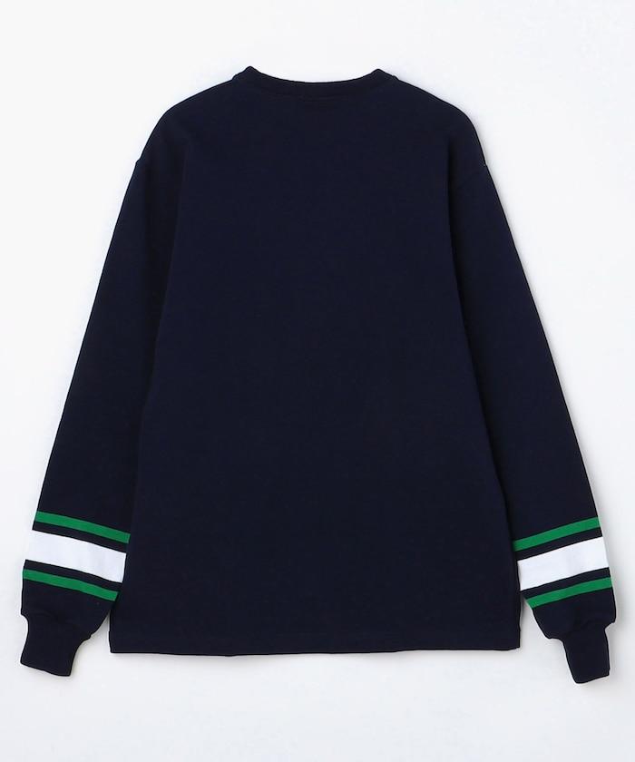設計精美的 T 恤,袖子上的線條圖案充滿街頭風情。