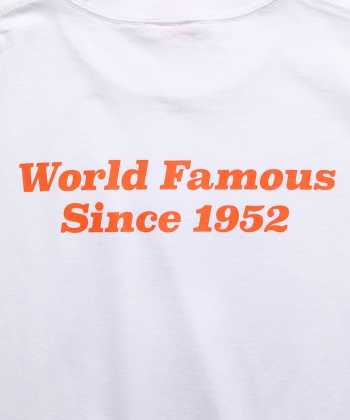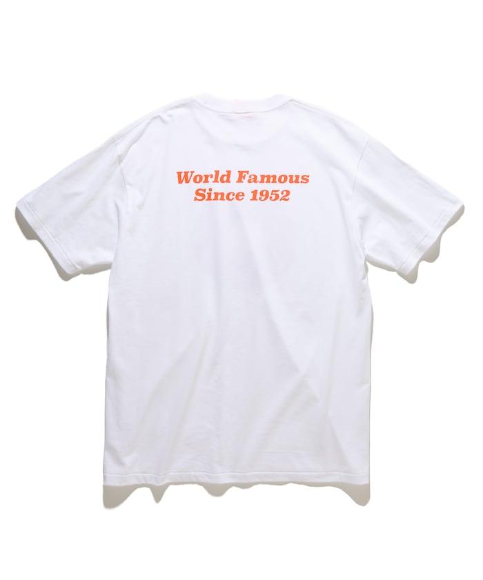 這件 T 恤的圖案是一個巨大的甜甜圈標誌,聳立在美國👍家蘭迪甜甜圈店--👍的洛杉磯地標英格爾伍德店--的屋頂之上。背面印有 "World Famous Since 1952 "字樣。布身由 50% 的美國原產棉花和 50% 的墨西哥原產棉花混紡而成。表面有一種開放式的感覺,質地獨特粗糙,厚度為 5.7 盎司,輕盈而半透明。當然,它還有圓形的衣身、單線縫製的袖子和下襬以及復古的規格。印有標誌性 Randy's Donuts(蘭迪甜甜圈)徽標和藝術圖案的產品將為您的日常休閒時尚增色不少。請盡情享受這些充滿洛杉磯風情的服飾吧。
