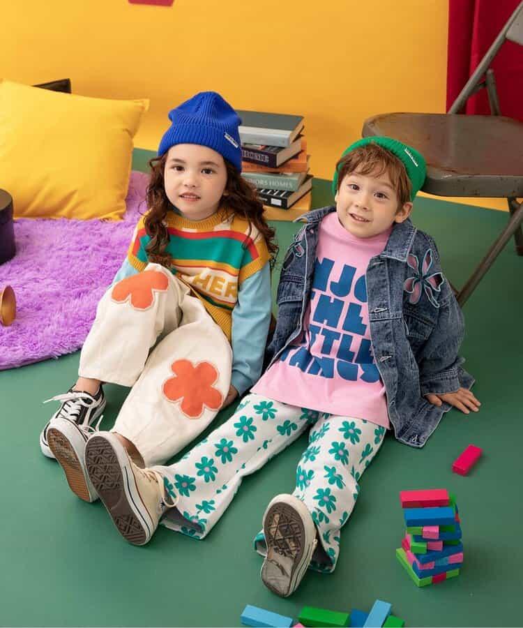BREEZE的 "I'm Jelly!提花喇叭褲 "以其時尚、易走動的設計而備受歡迎,推薦用於上學和上學時穿著!