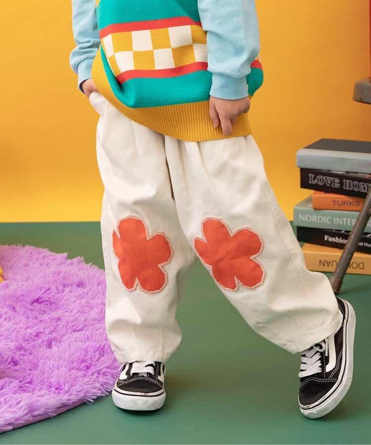 BREEZE的 "I'm Jelly! Flower Patch Tuck Pants "因其時尚且易於活動的設計而備受歡迎,推薦用於上學和上學時穿著!
