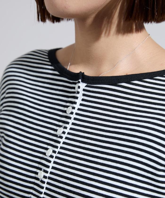 雞心領的設計給人一種休閒的感覺,略微寬鬆的剪裁即使單穿也很好看。