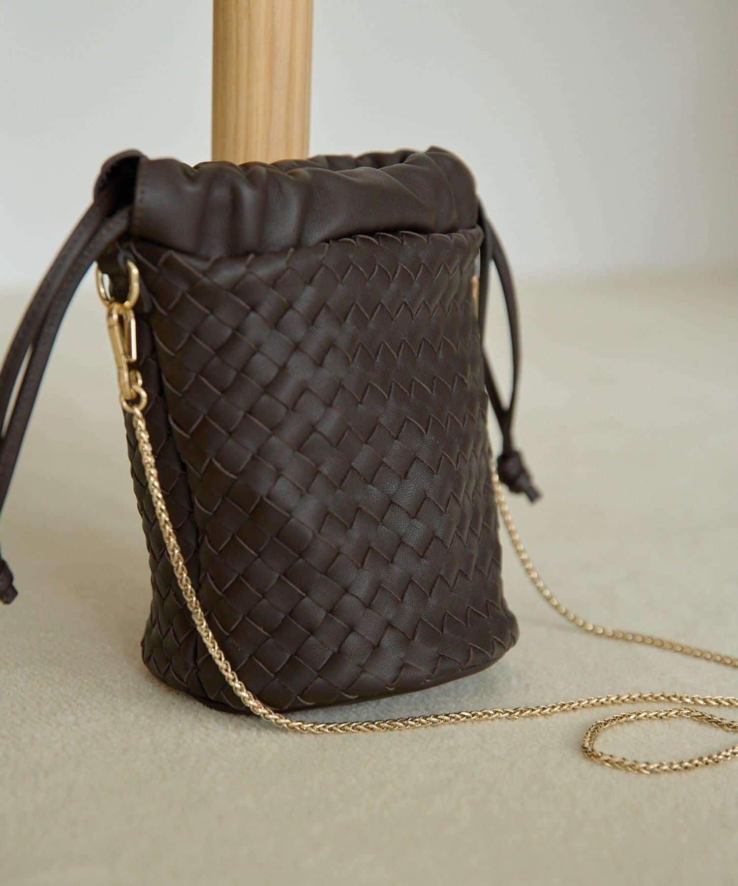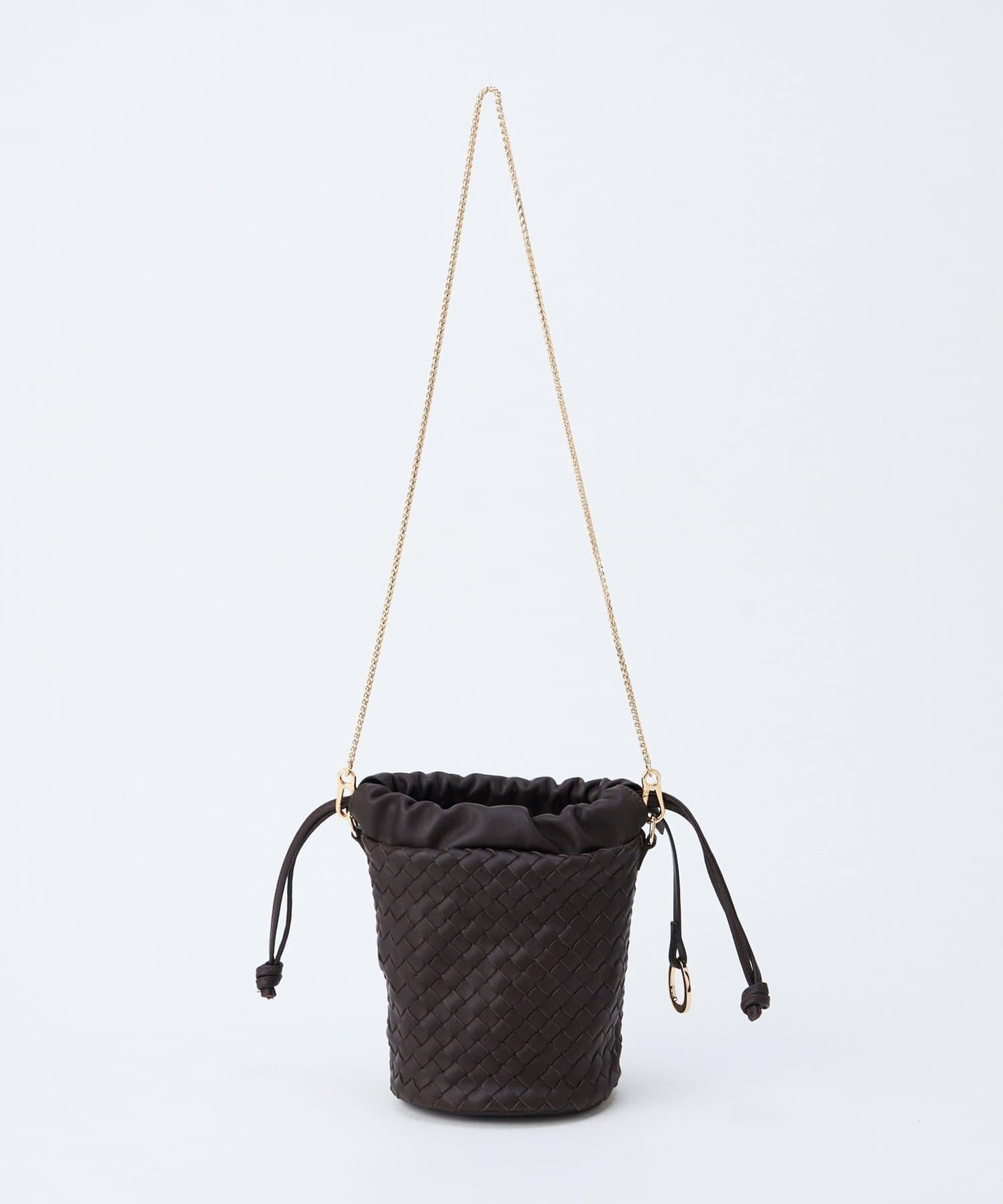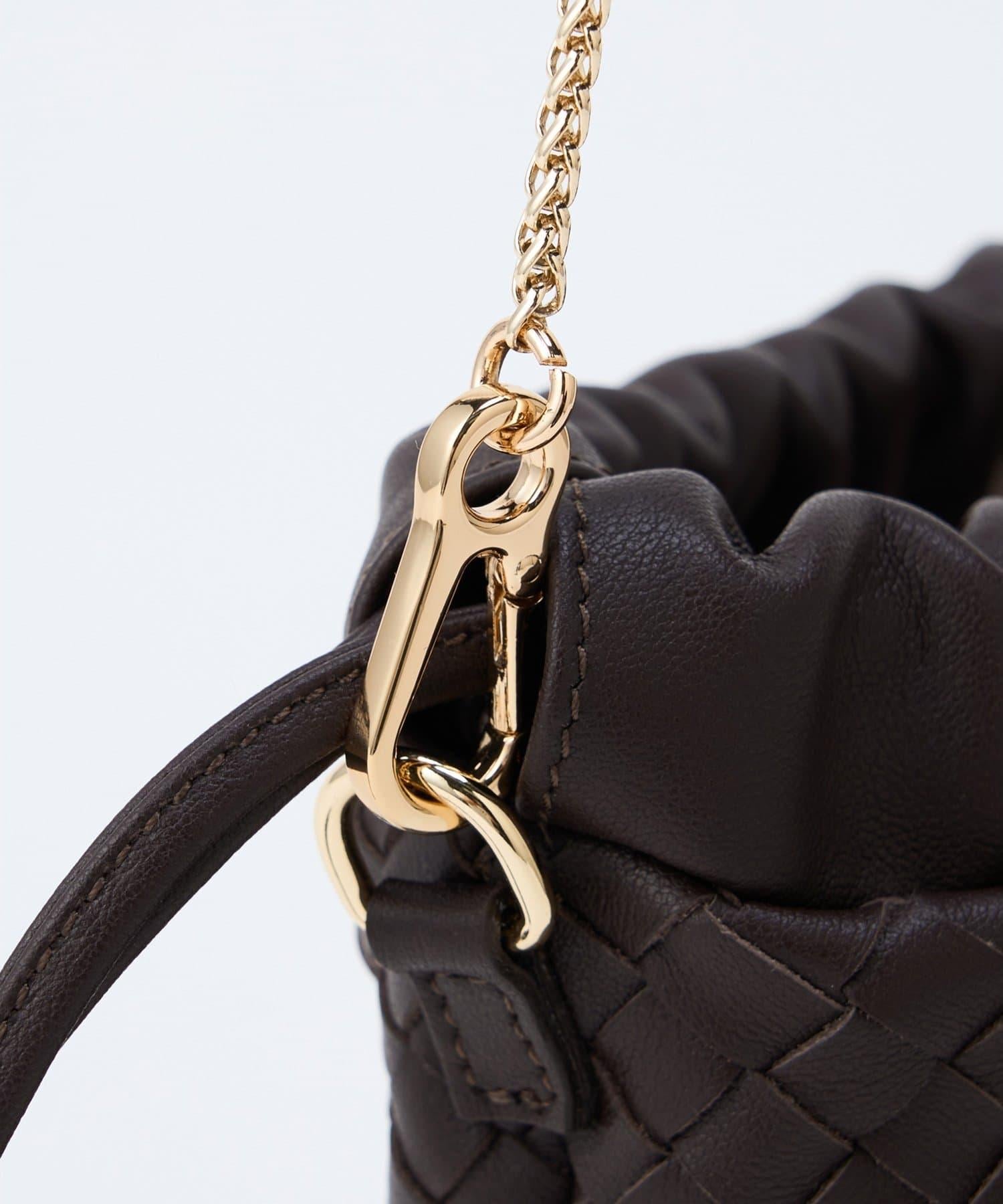這款包既可以用附帶的鏈條揹帶背在肩上,也可以作為手提抽繩包。