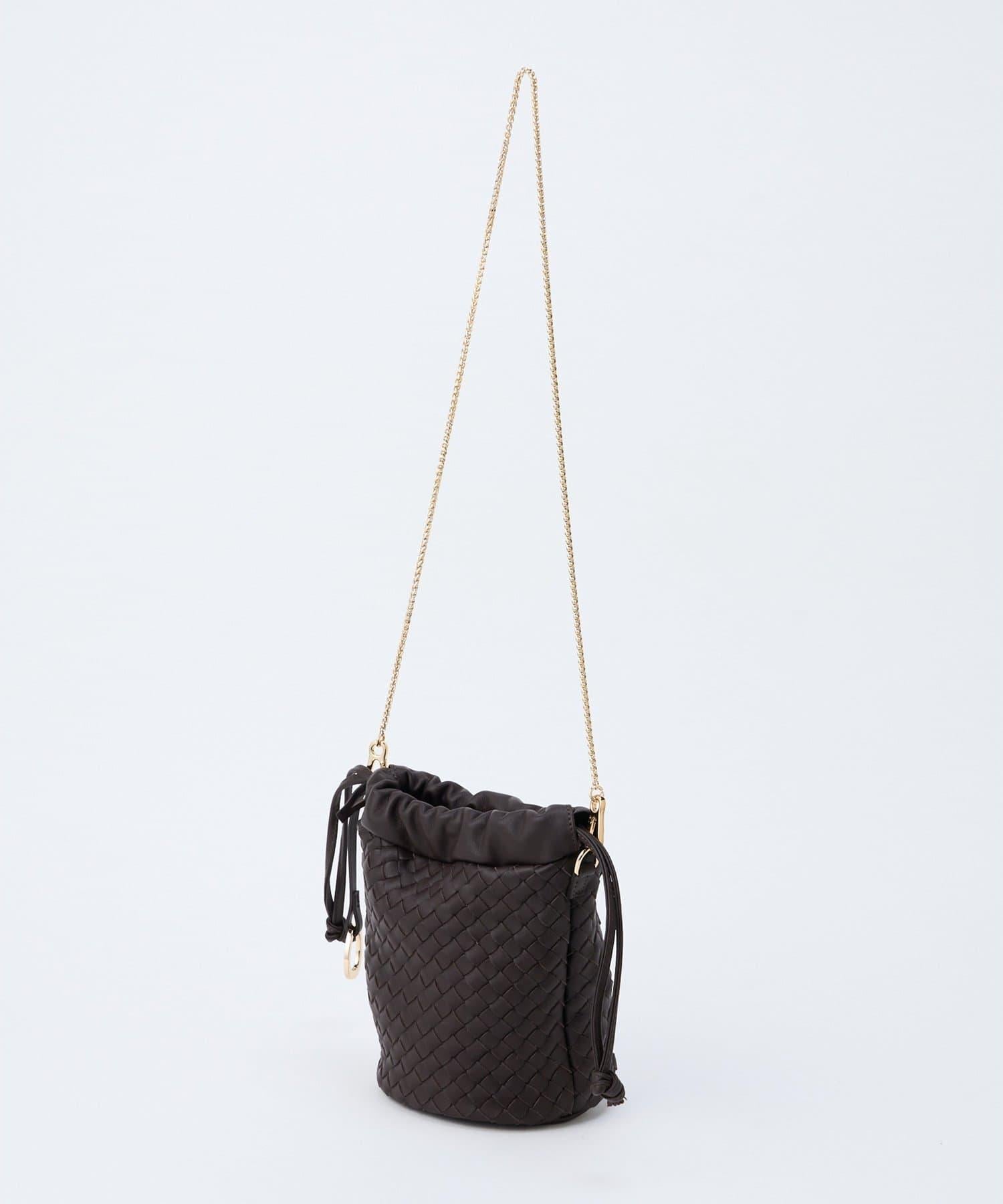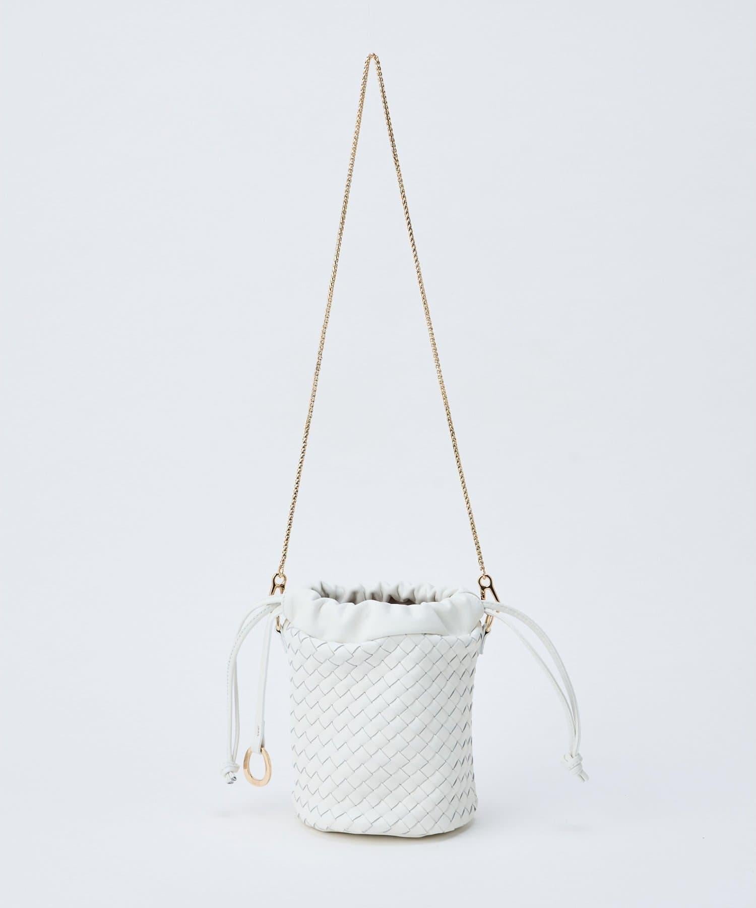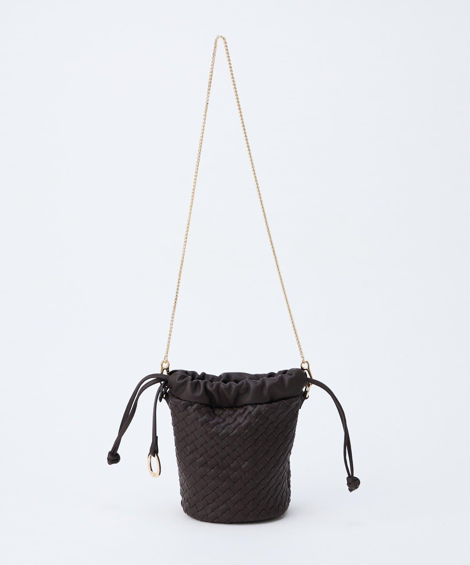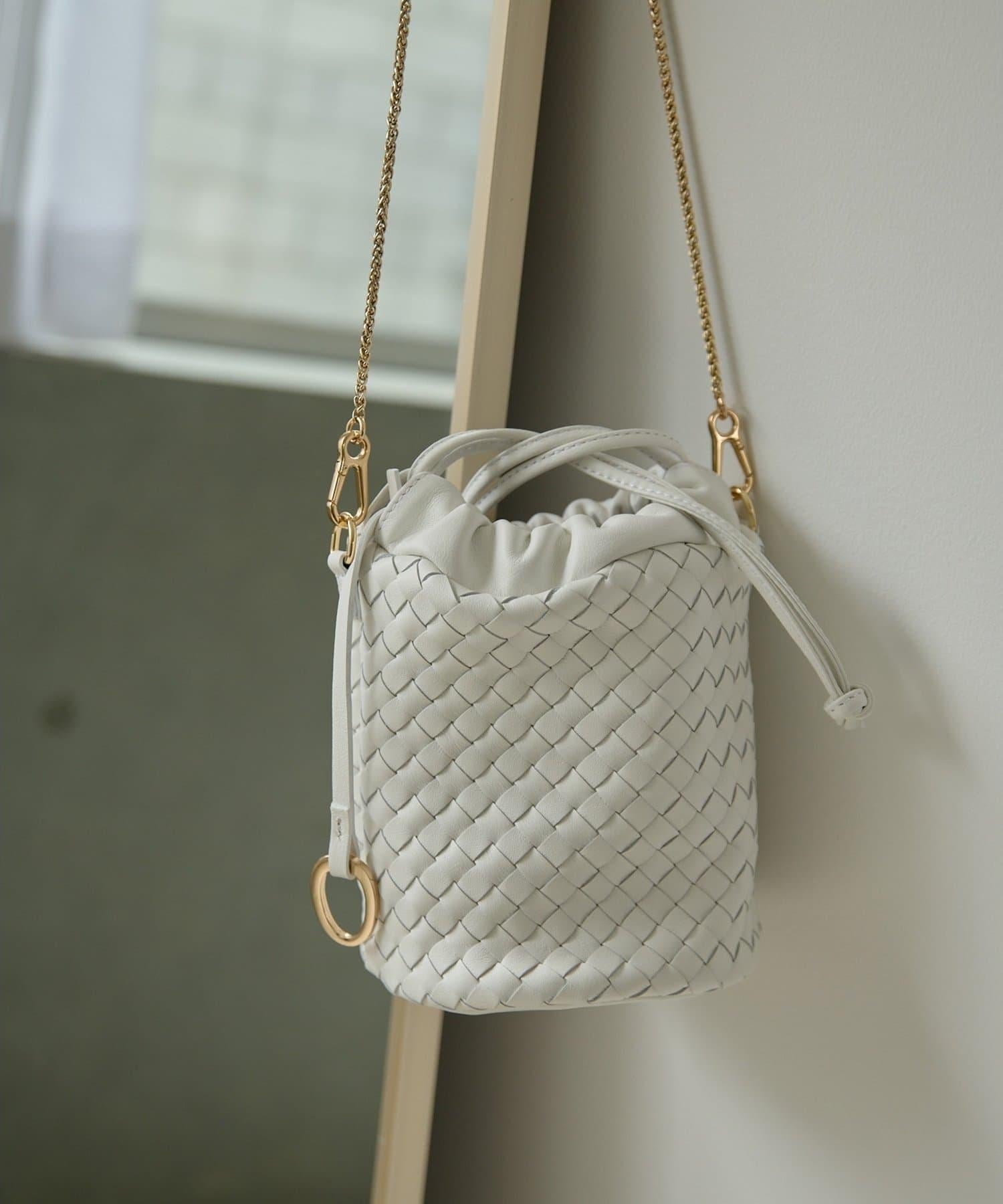 這款包既可以用附帶的鏈條揹帶背在肩上,也可以作為手提抽繩包。