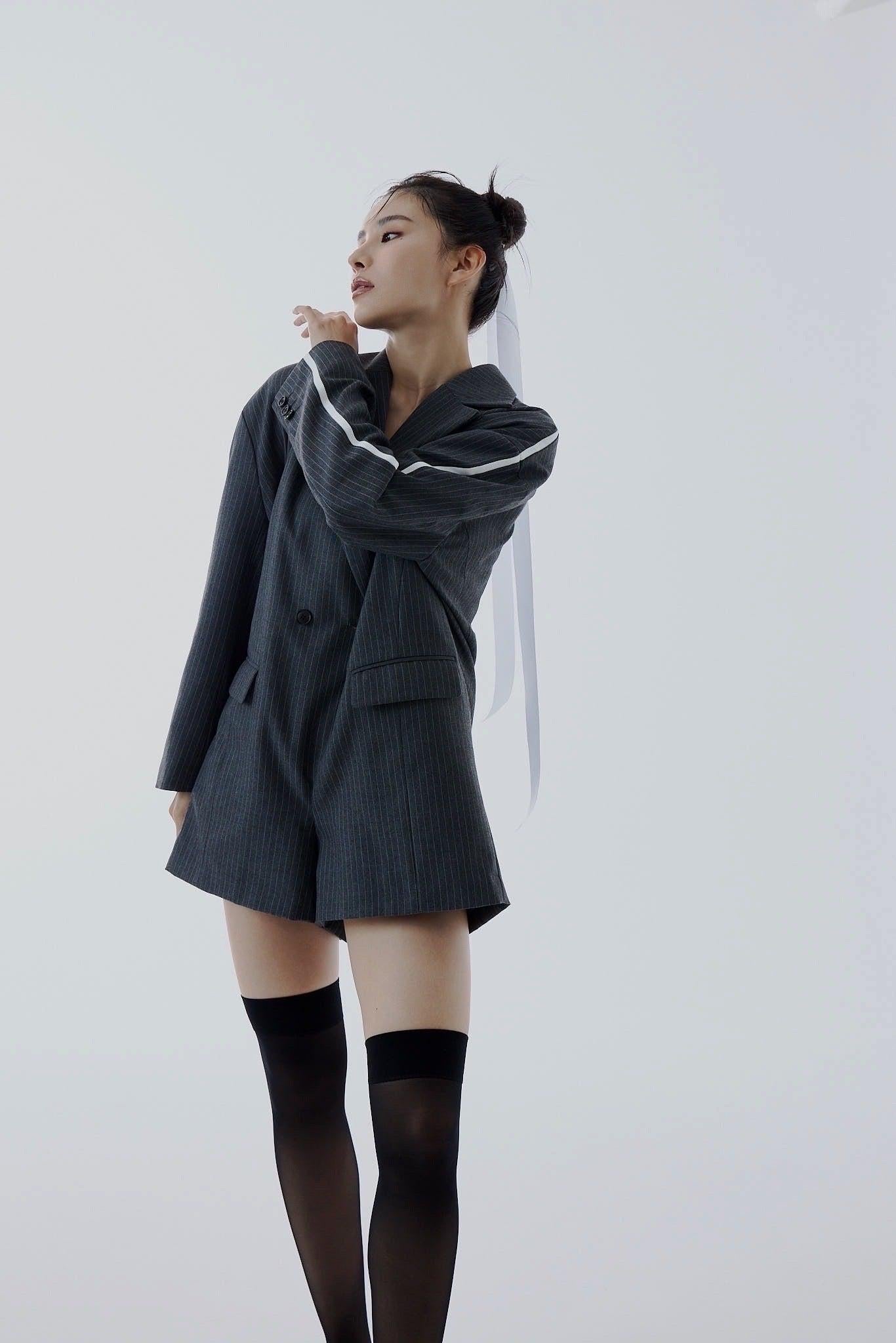 這是一款創新的連身裙,其中融入了夾克的元素。