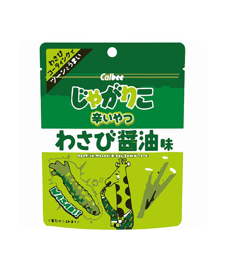 材質:じゃがいも,植物油,乾燥じゃがいも,ミルクパウダー,粉末植物油脂,砂糖,粉末しょうゆ(小麥・大豆を含む),食塩,乳糖,でん粉,デキストリン,酵母エキスパウダー,たん白加水分解物,焼きのり,チキンエキスパウダー,酒粕パウダー,混合節エキスパウダー(さばを含む),わさびパウダー / 調味料(アミノ酸等),香料,加工デンプン,乳化剤,酸味料,カラメル色素,酸化防止剤(V.C),甘味料(アセスルファムK)