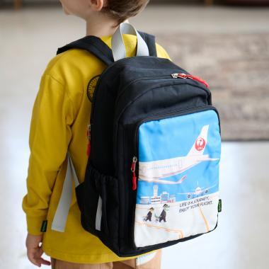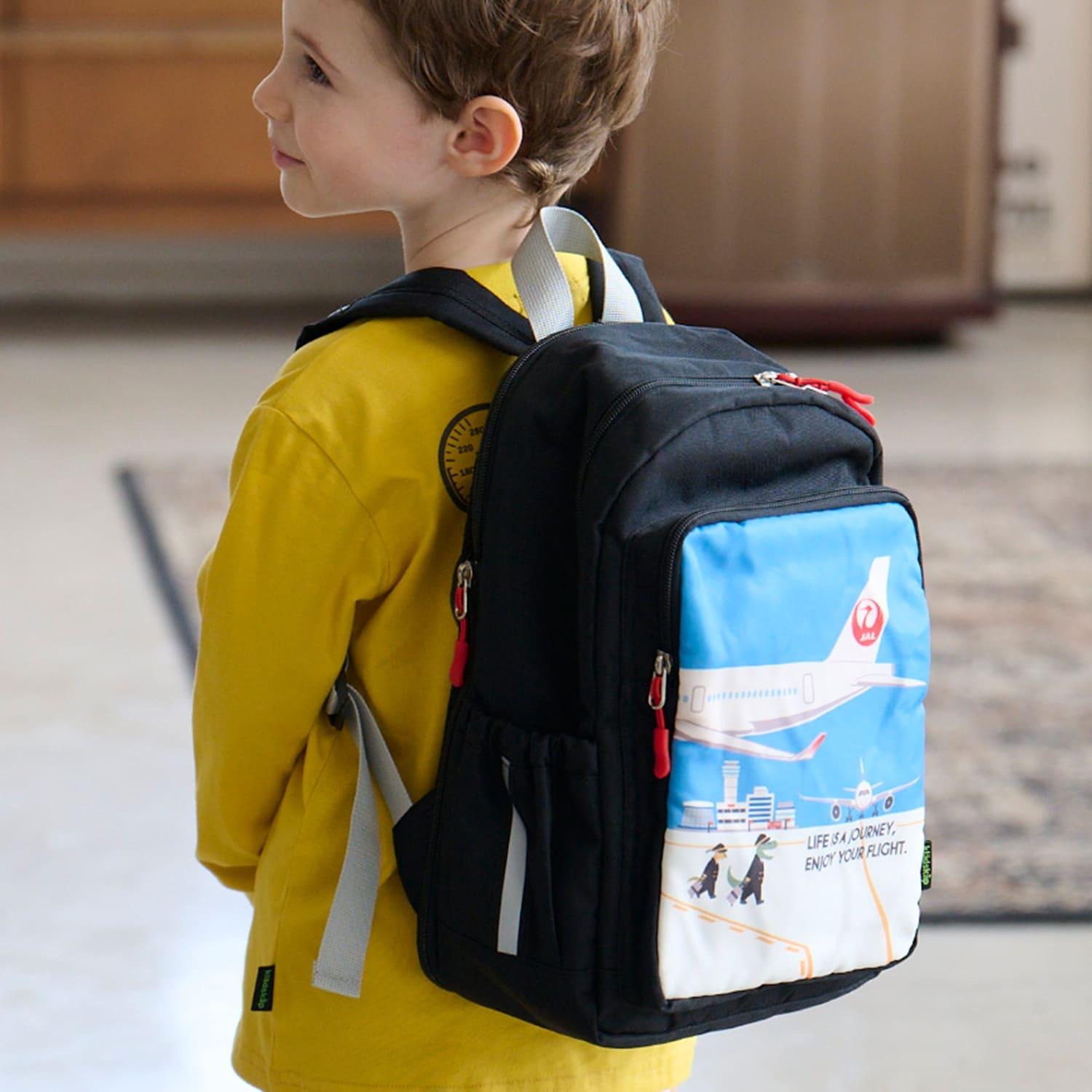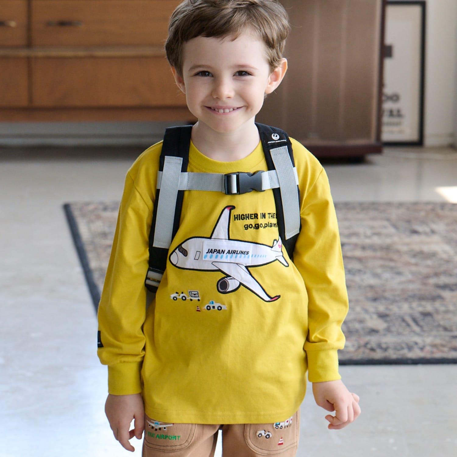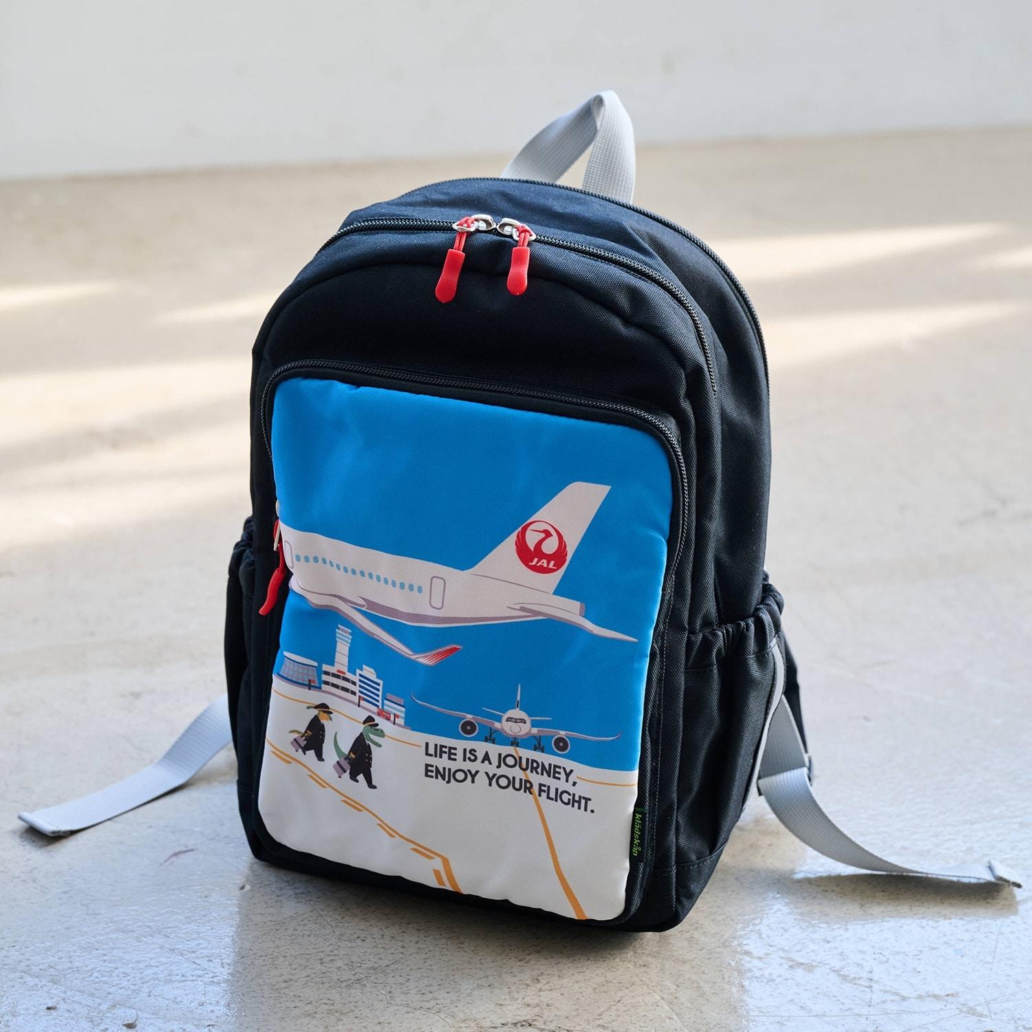 插圖上醒目地印有日航飛機的圖像和停機坪的景色。