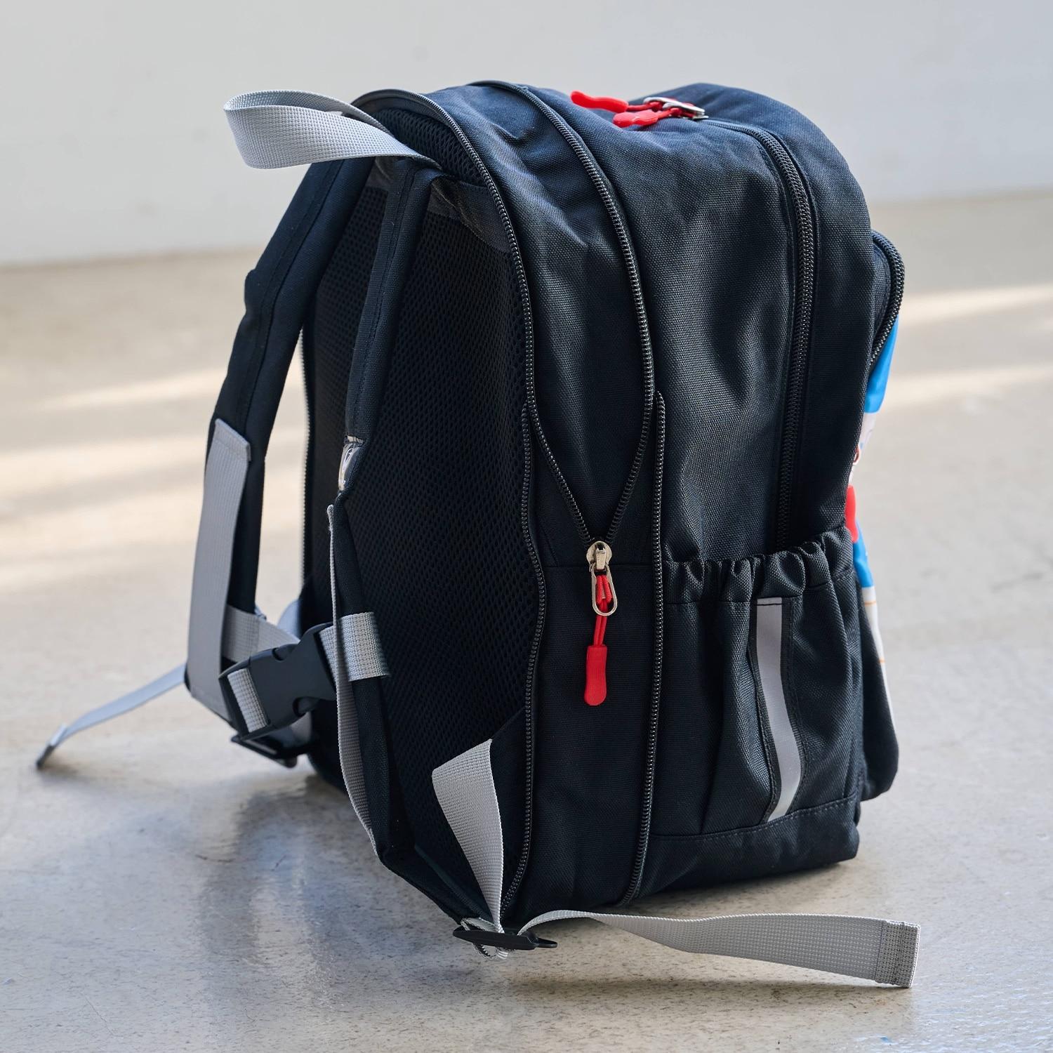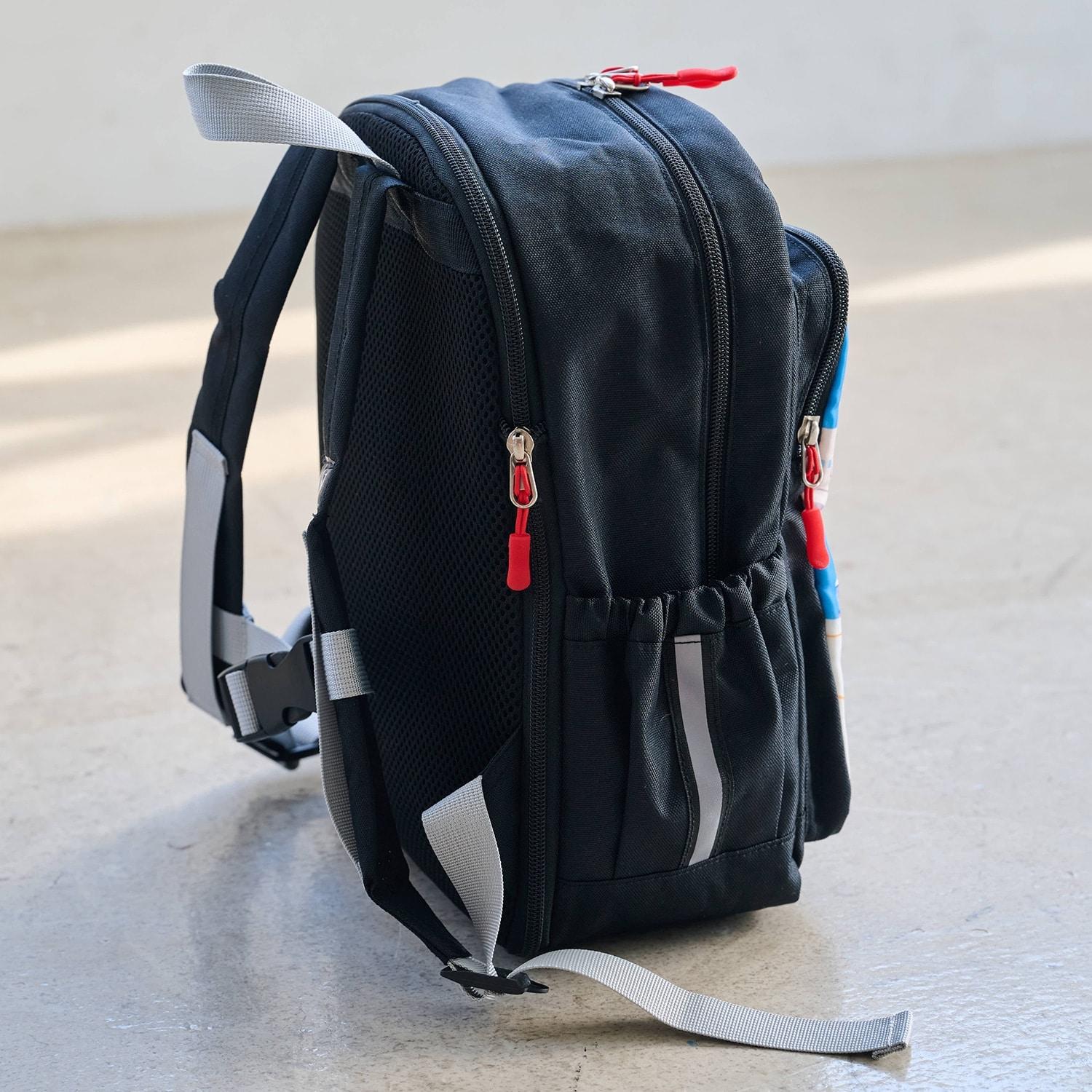 揹包後側的拉鍊一開一合,就能將揹包拉長,從而獲得足夠的儲物空間。