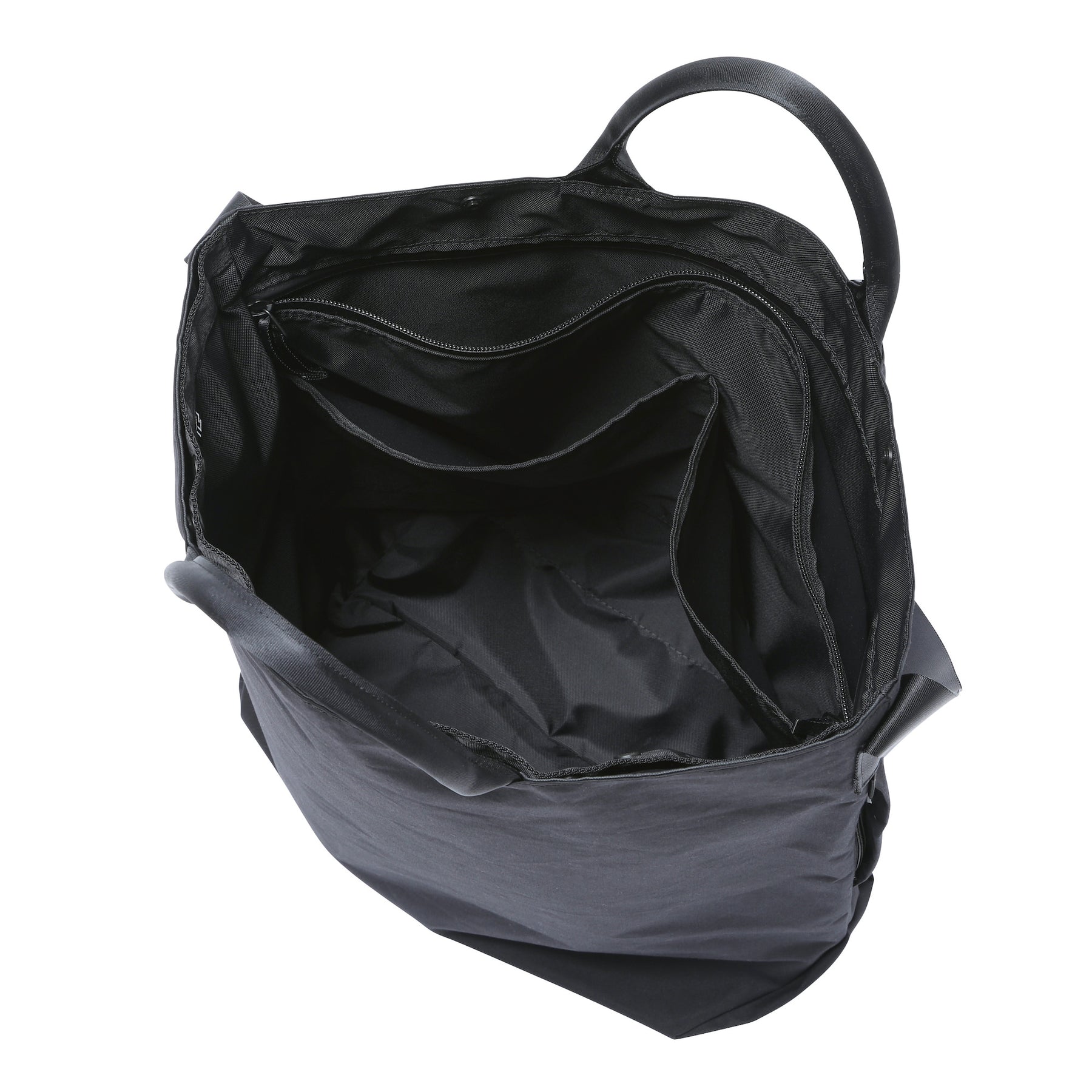 手提包,設計輕巧、簡約,結合了手提包和單肩包的功能。它的開口處和側面有多個口袋,可以放置經常使用的智能手機和錢包,使其具有類似於衣服上的口袋的流暢的存儲能力。內部有一個拉鍊套袋,可容納相當於16英寸MacBook Pro的LAPTOP,還有四個插槽式口袋,用於存放小物品。內部面料由光滑的尼龍製成,更加舒適。主倉可以用一個按扣打開和關閉,寬大的底部夾層使其可以獨立存在。