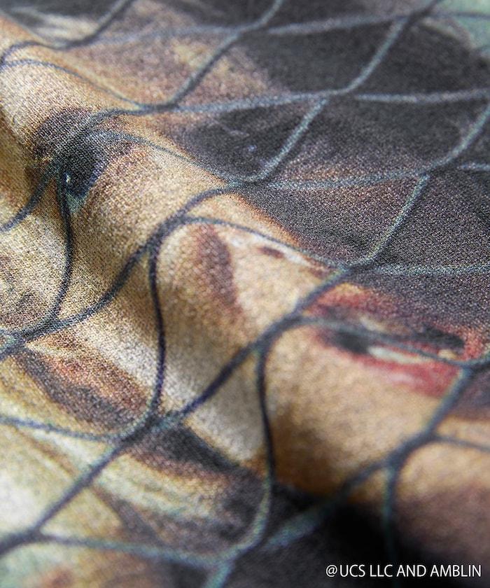 選自史蒂文-斯皮爾伯格 1993 年執導的電影《侏羅紀公園》。正面和背面印有勞拉-鄧恩(Laura Dern)飾演的薩特拉博士。這是一件非常罕見的商品,因為它是《侏羅紀公園》中👍印有薩特拉博士的官方 T 恤。電影徽標下方還印有環球公司和安布林公司的徽標。
