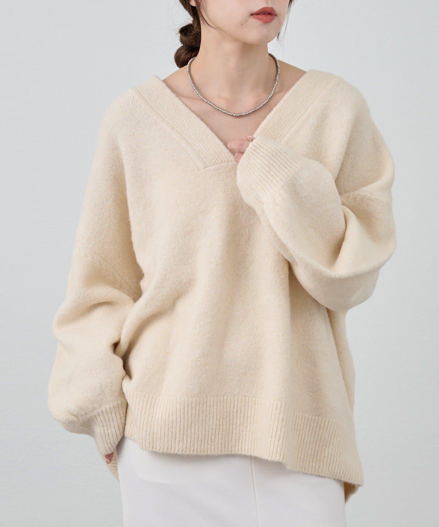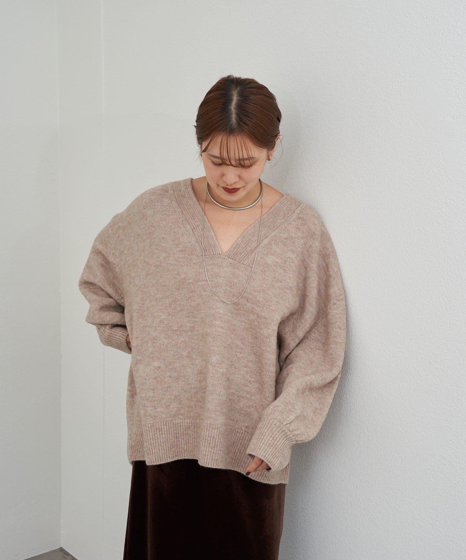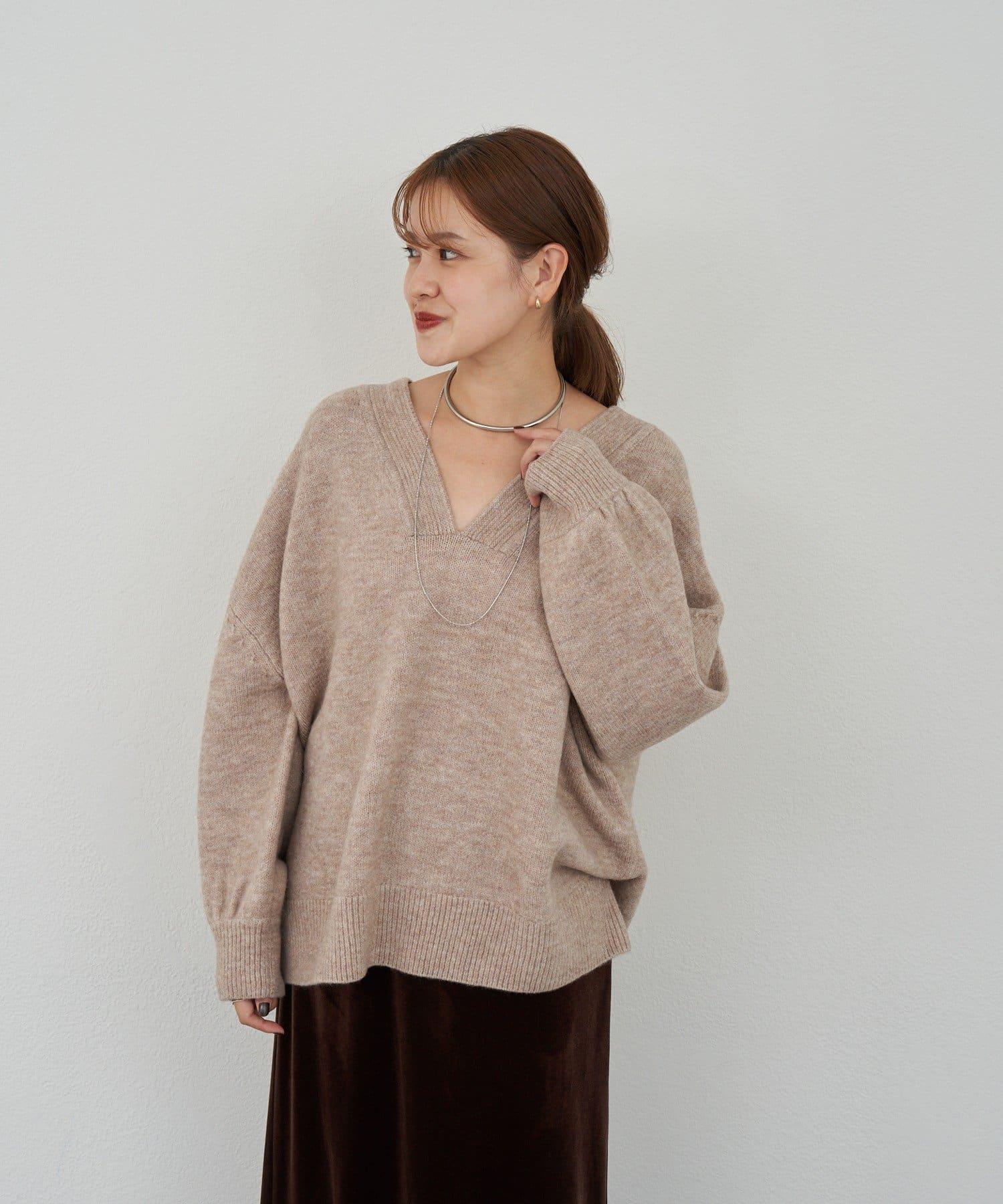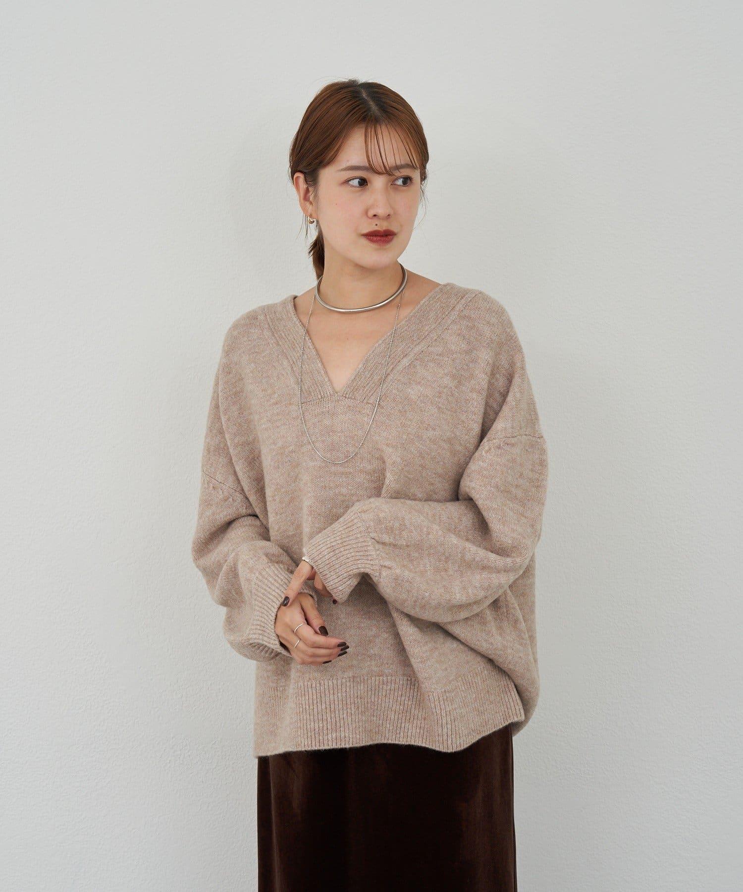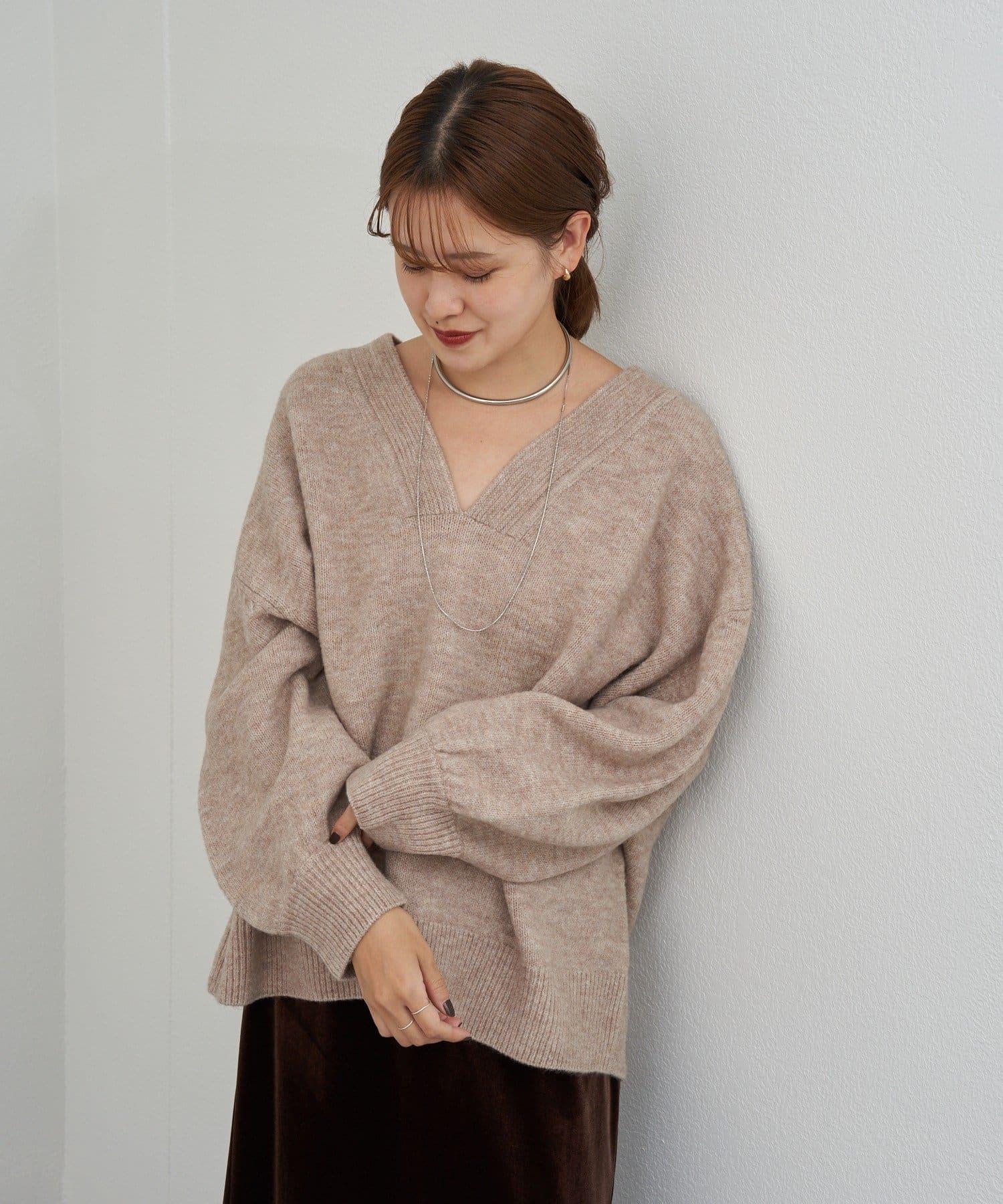 復興單品!女性化套頭針織衫,深 V 領設計。