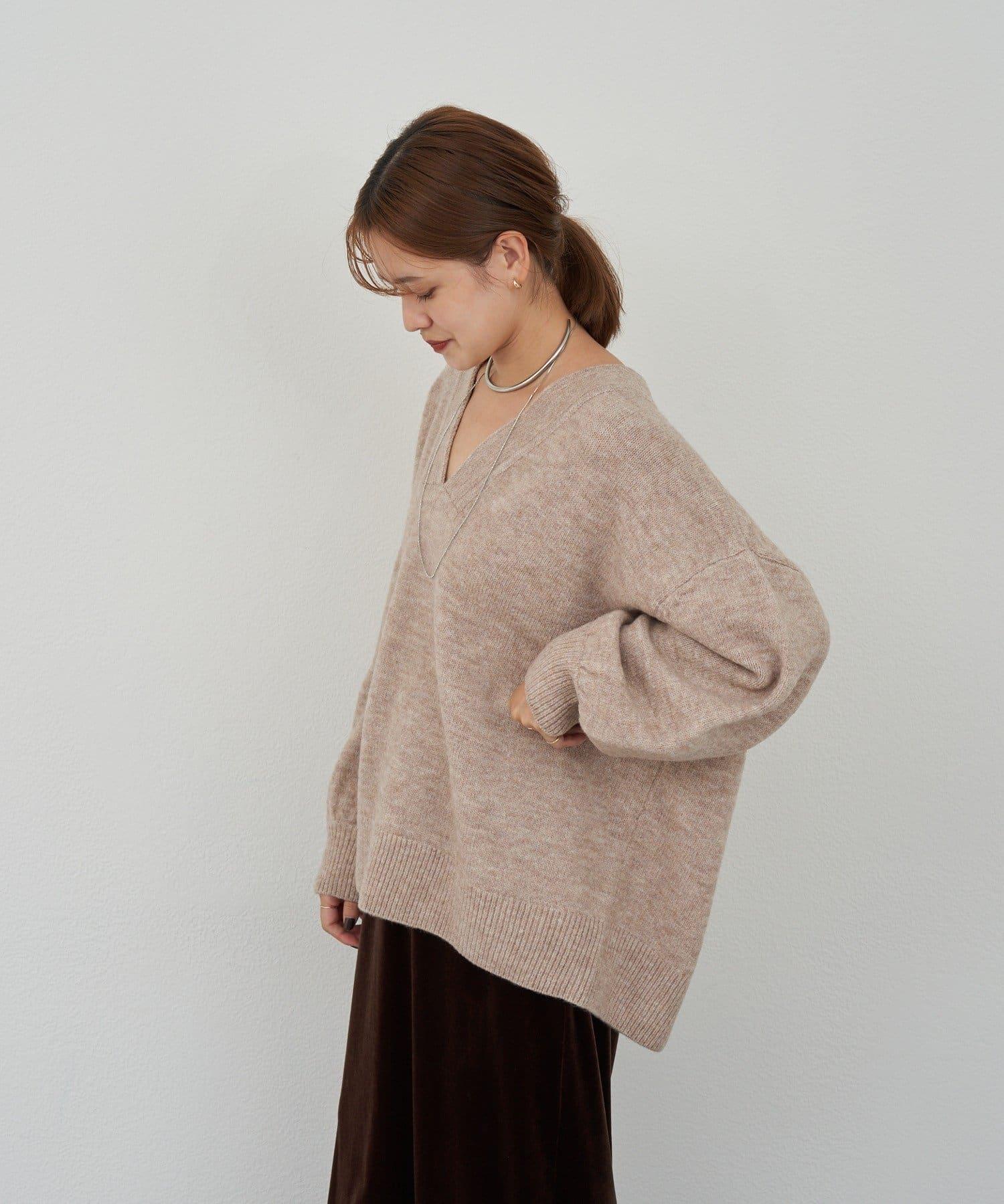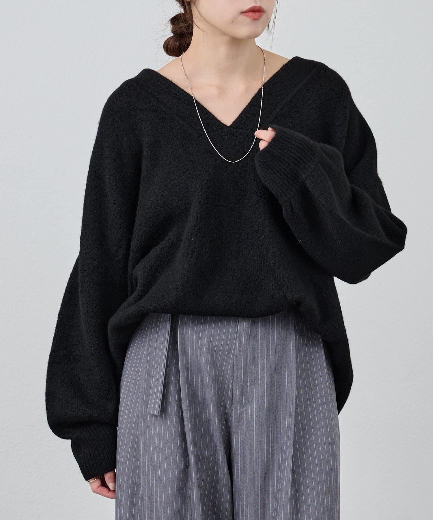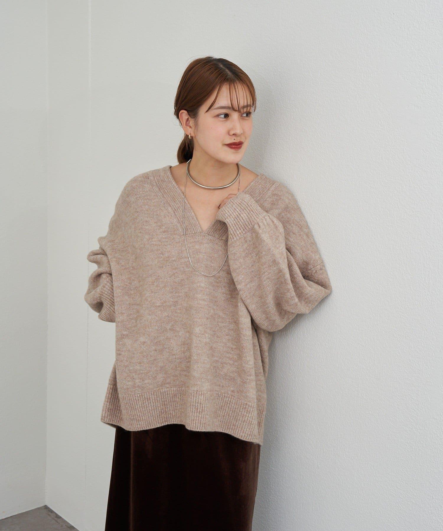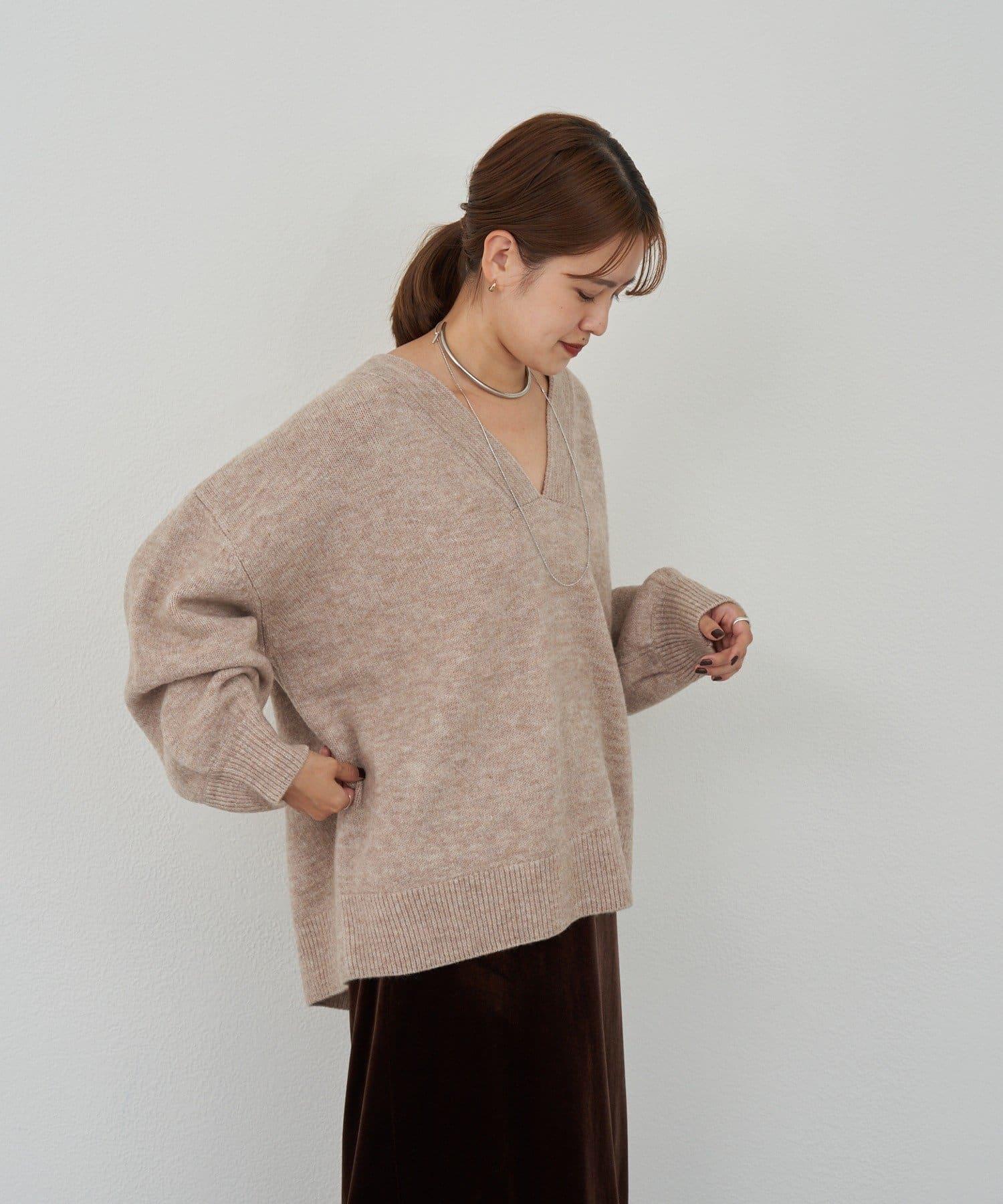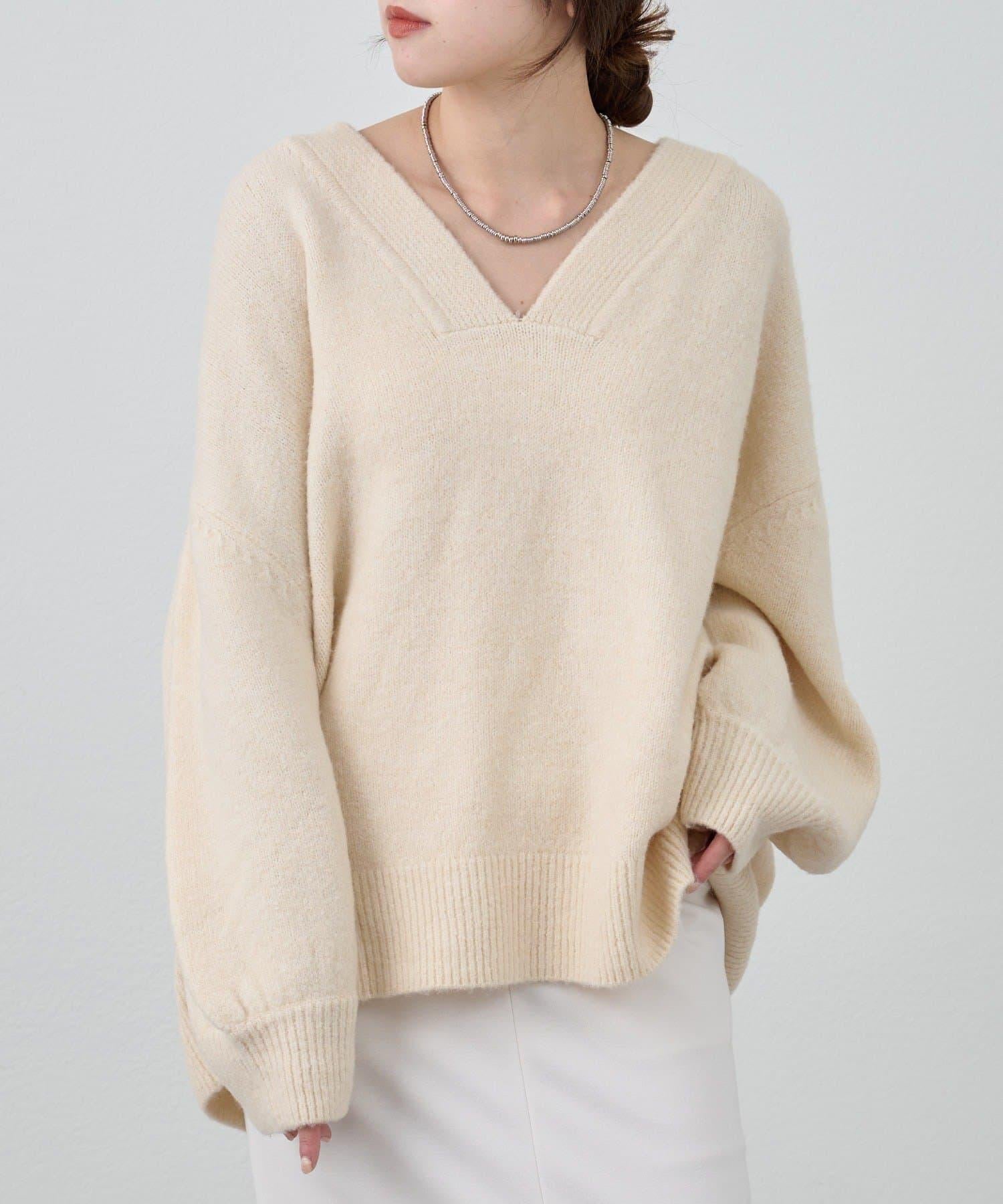 復興單品!女性化套頭針織衫,深 V 領設計。