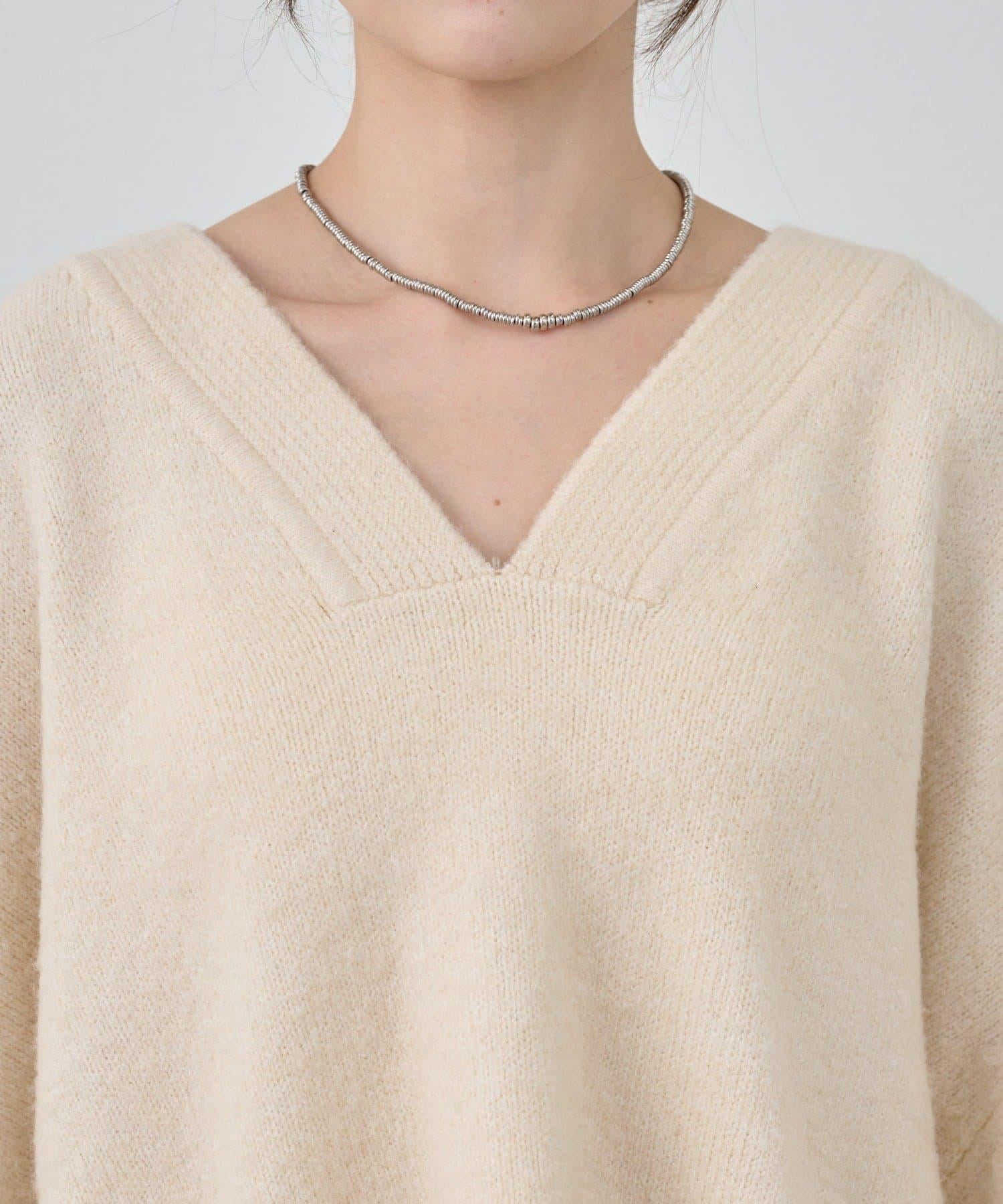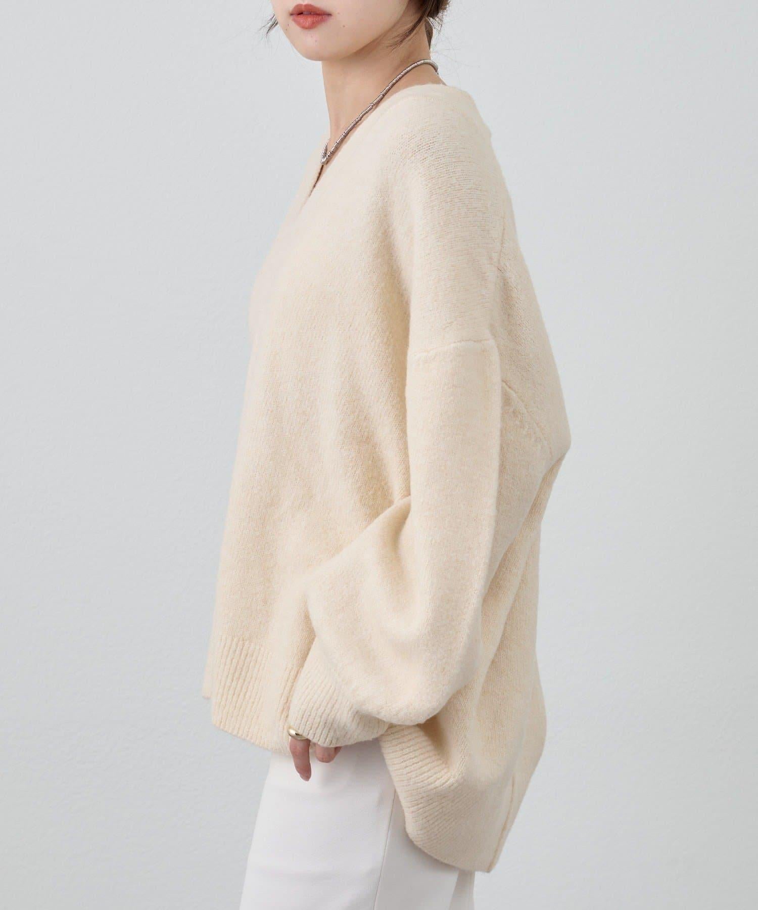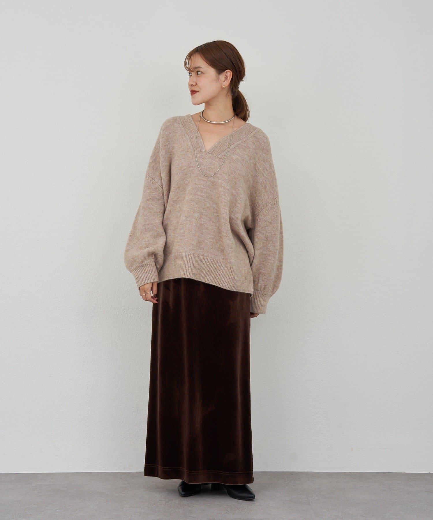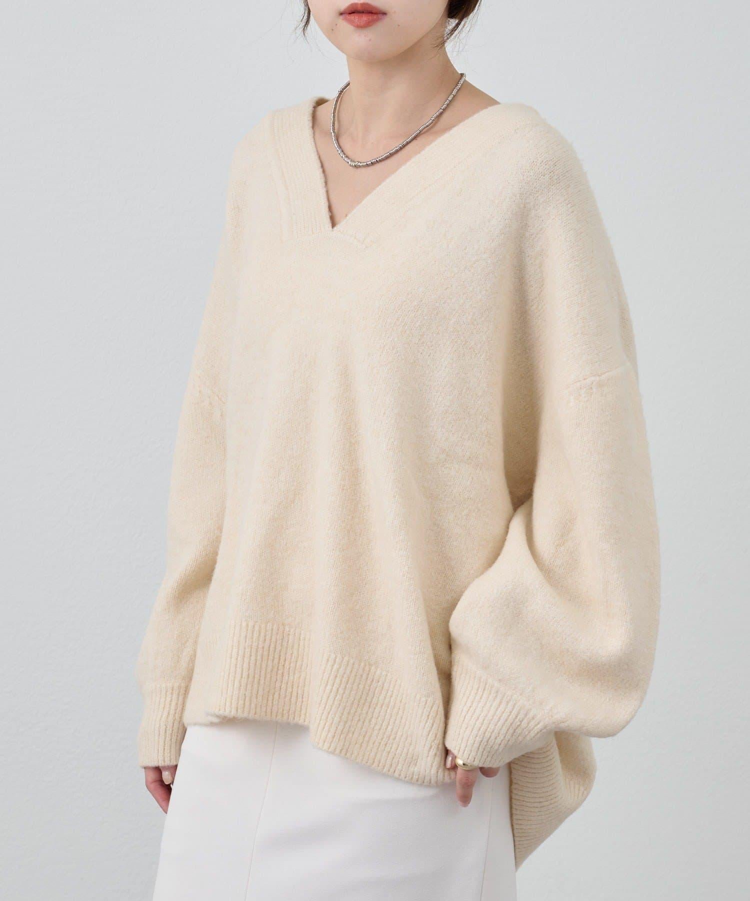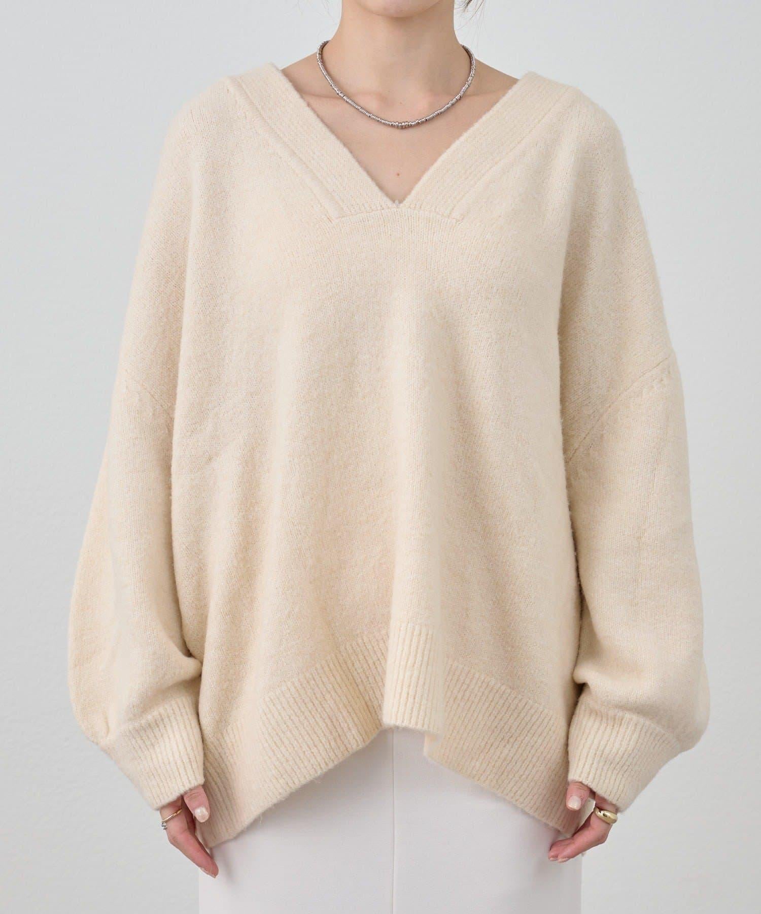 復興單品!女性化套頭針織衫,深 V 領設計。