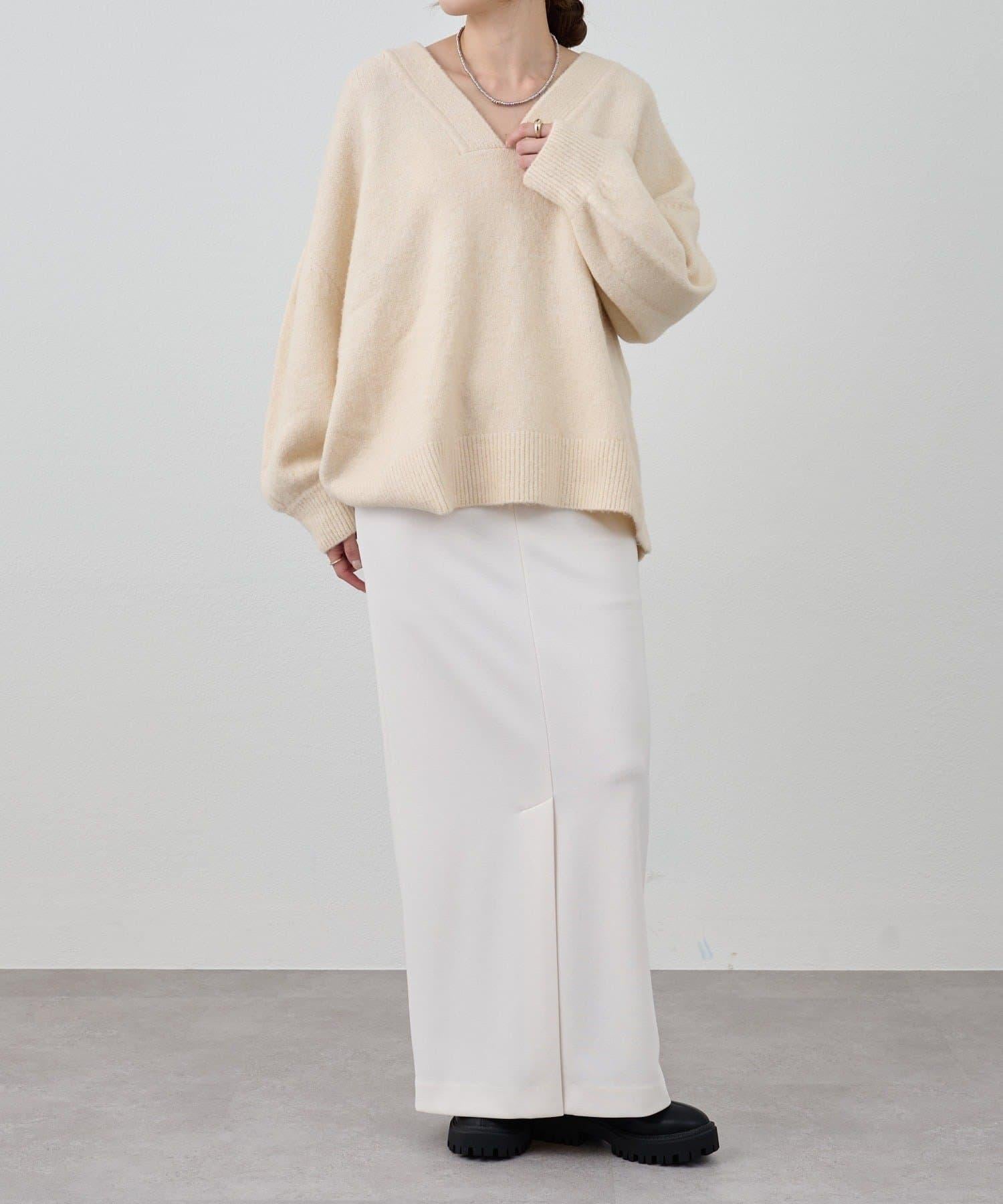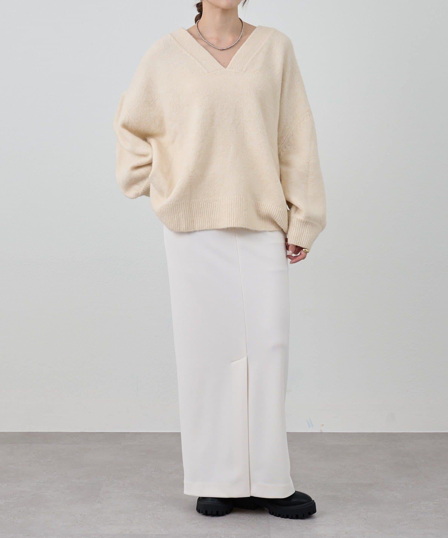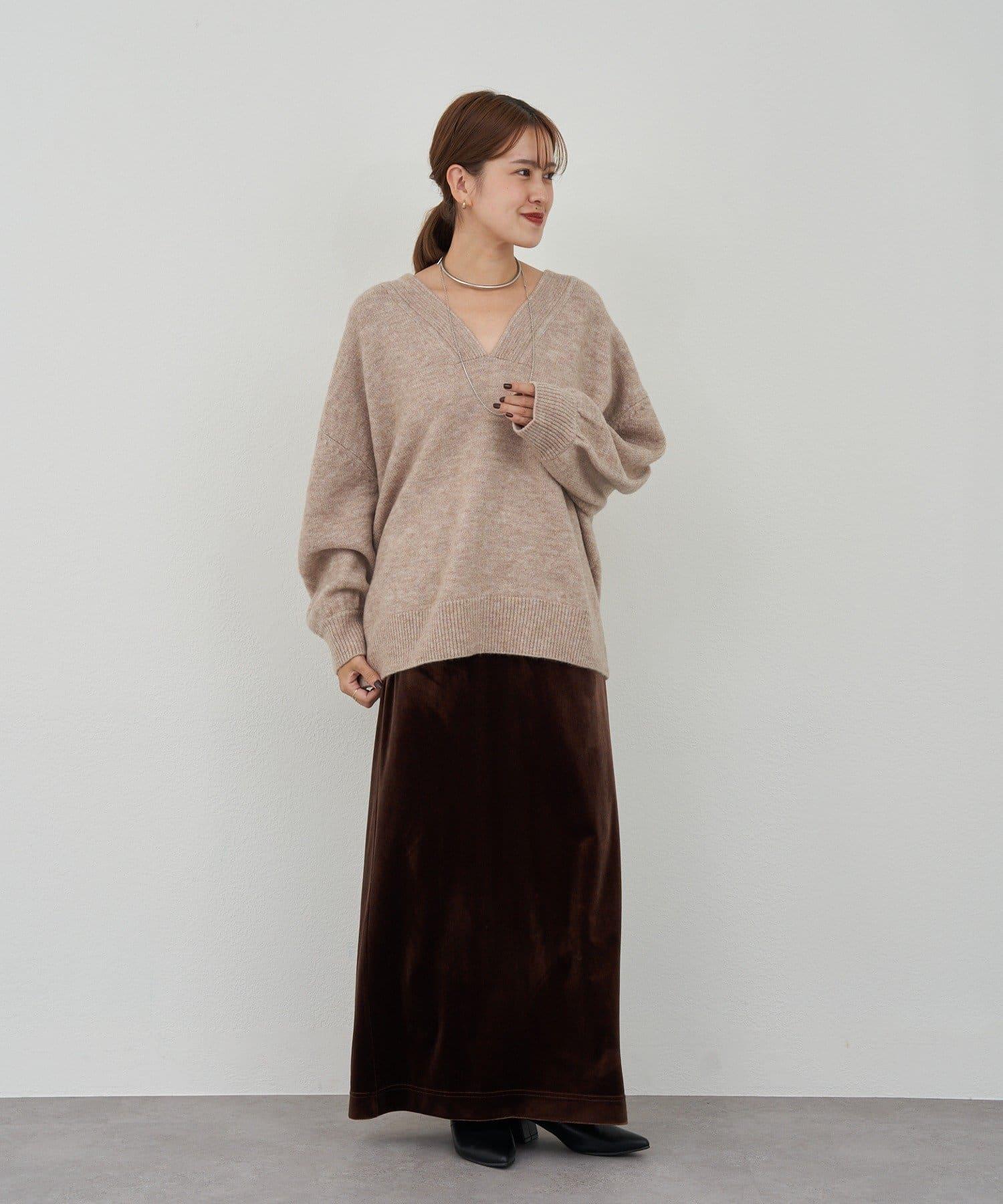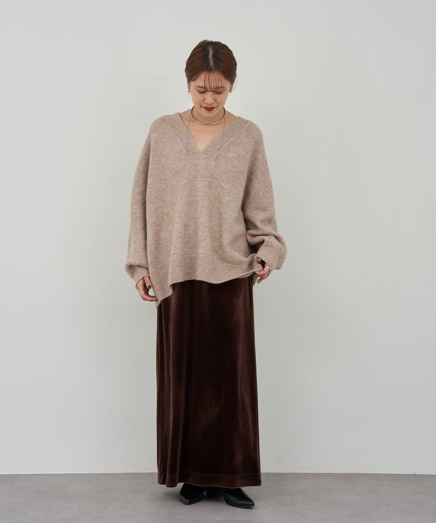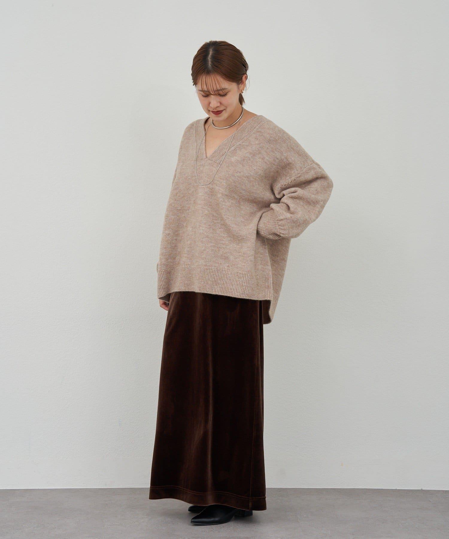 復興單品!女性化套頭針織衫,深 V 領設計。