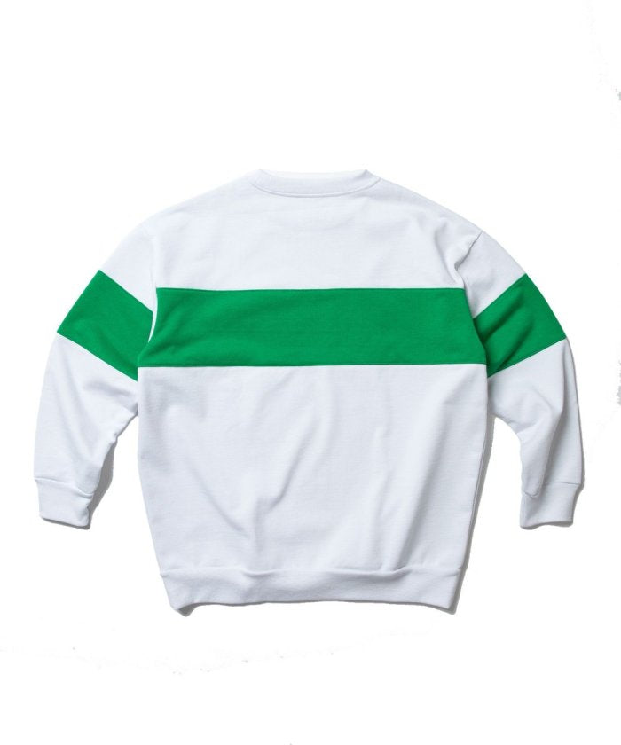 這款圓領運動衫在面料上進行了大膽的色彩切換。