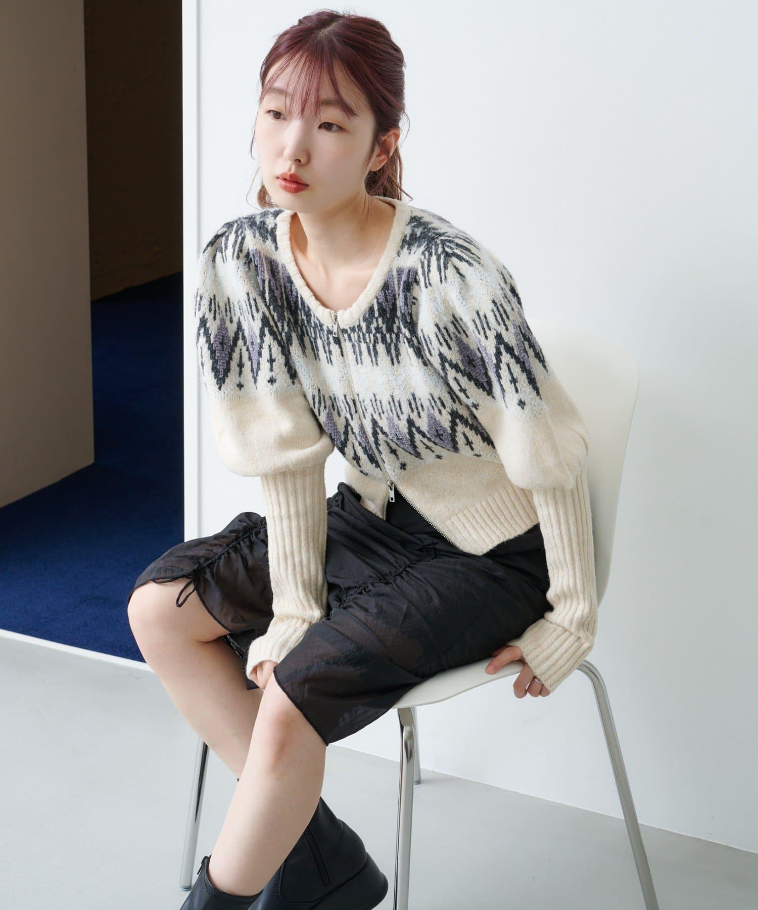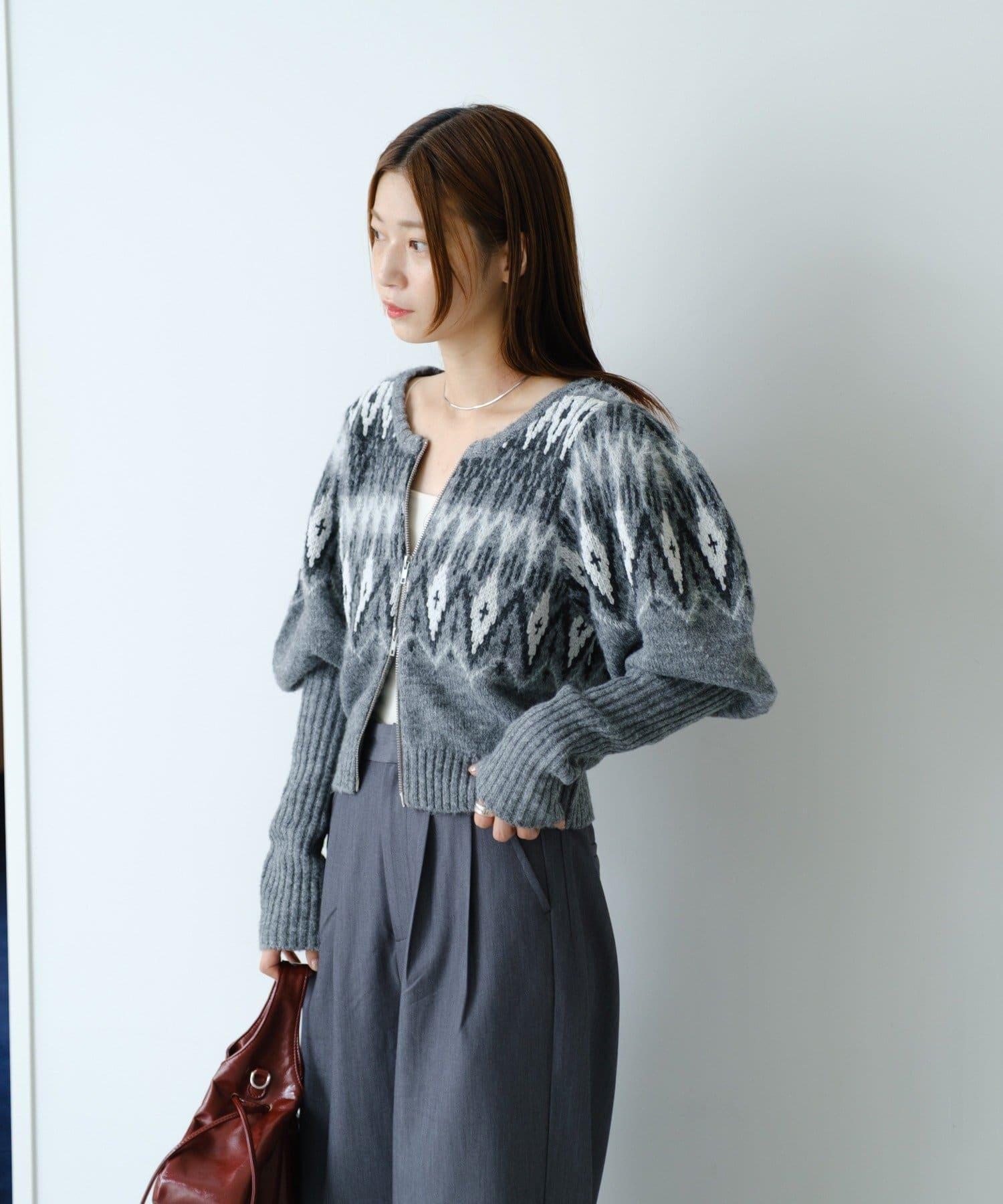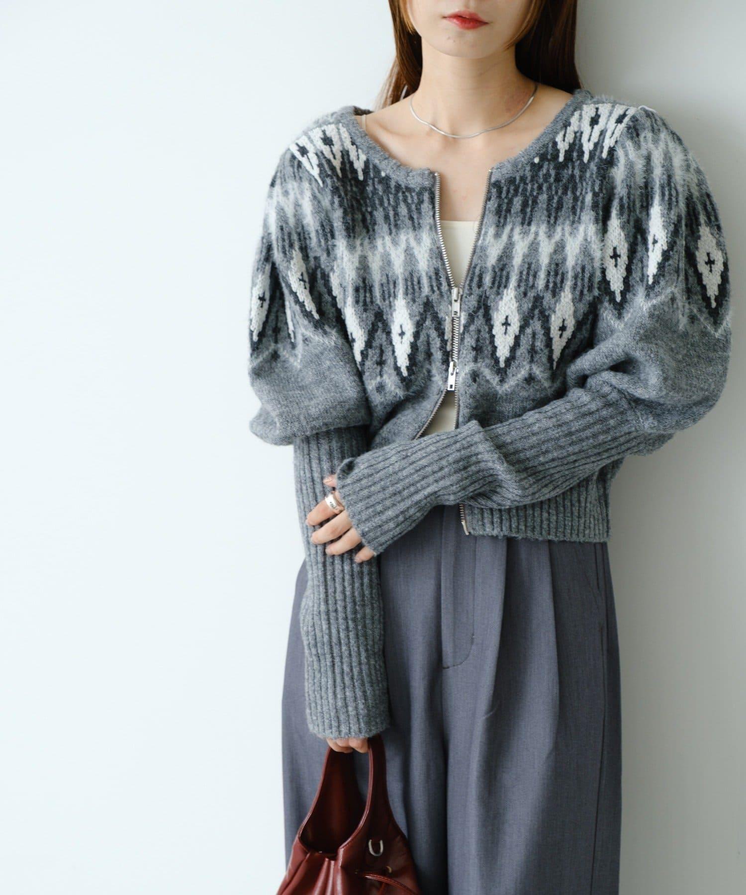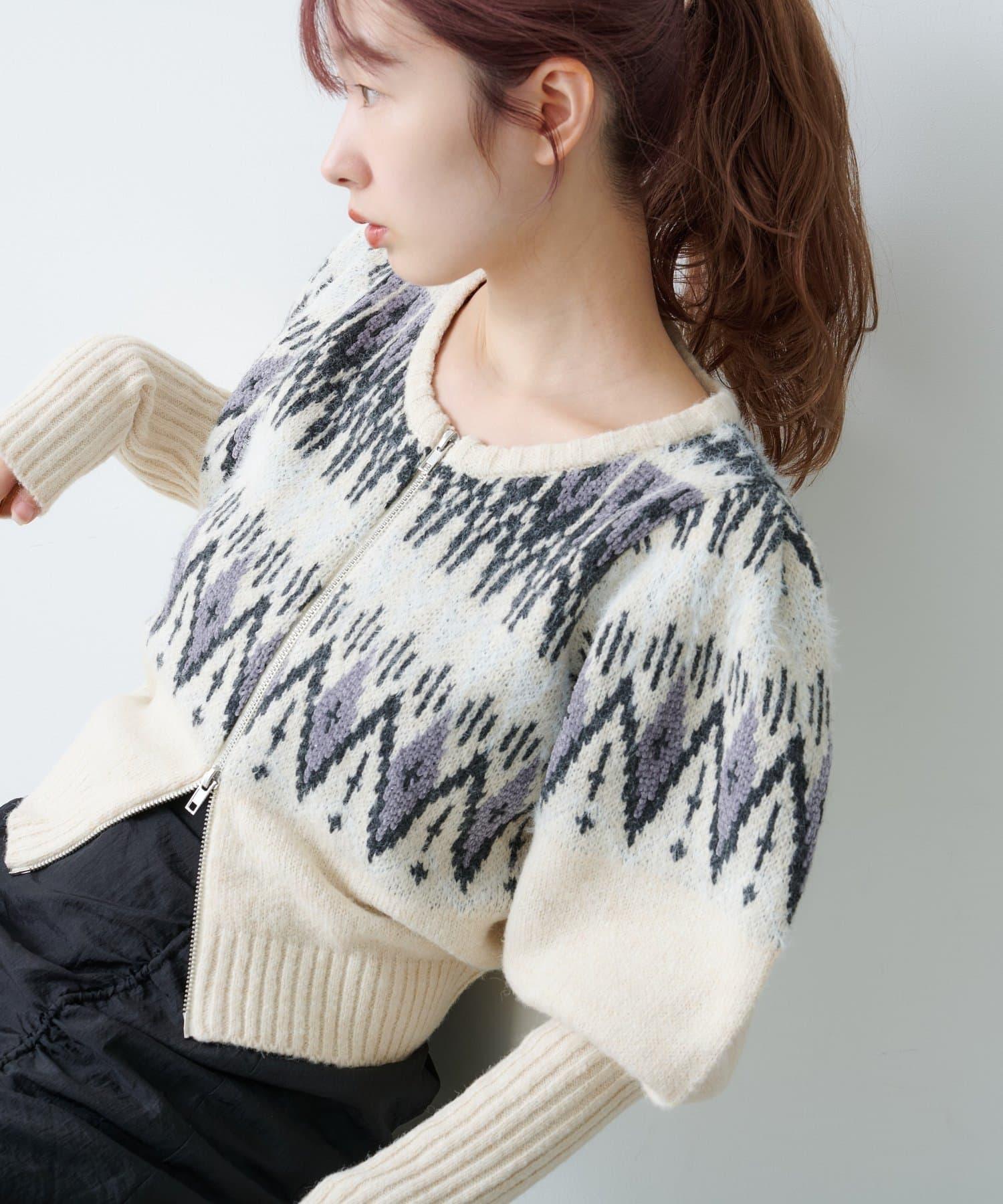柔軟針織拉鍊開衫,帶有冬季北歐圖案。