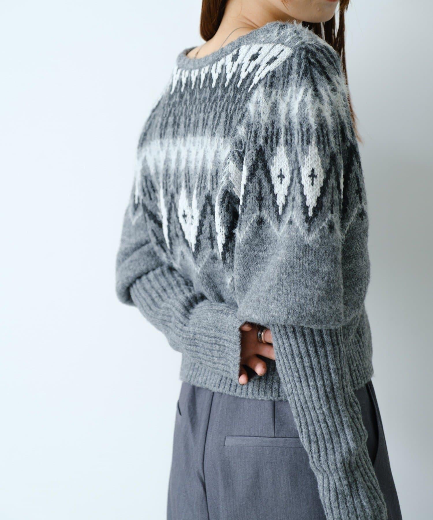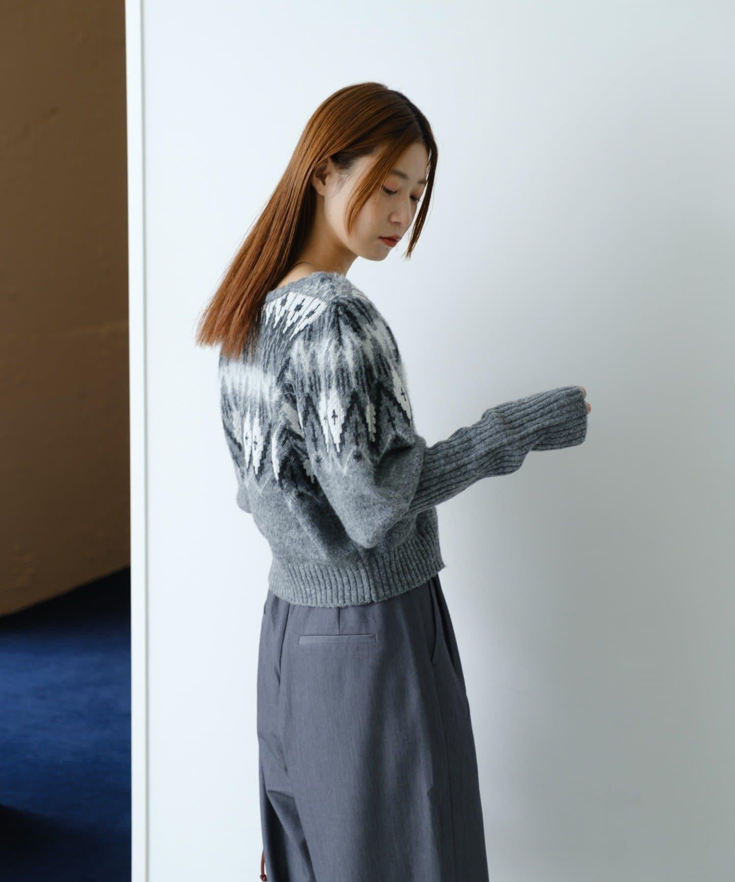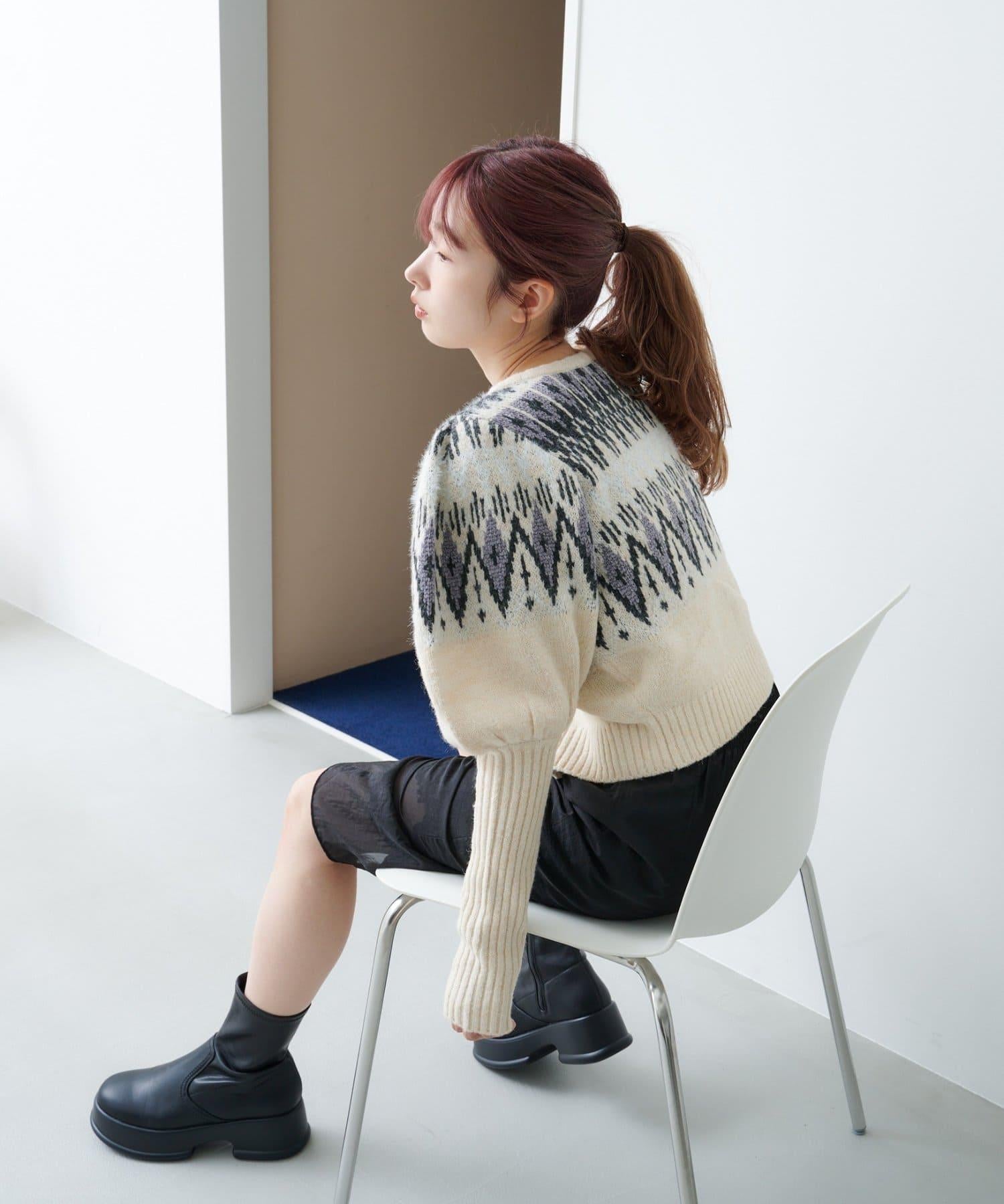 柔軟針織拉鍊開衫,帶有冬季北歐圖案。