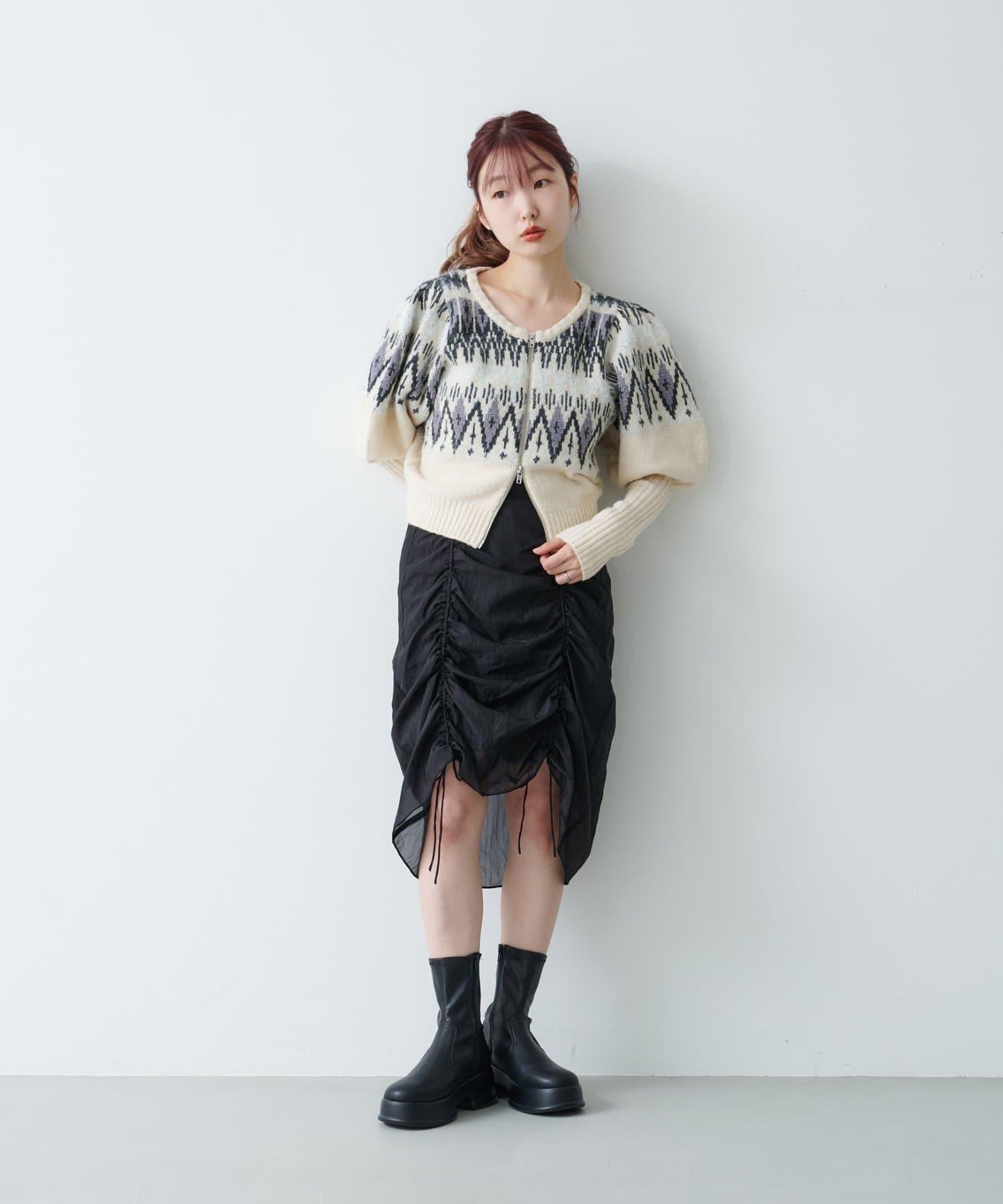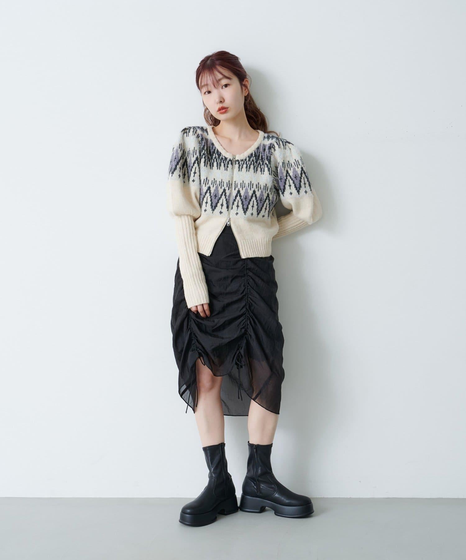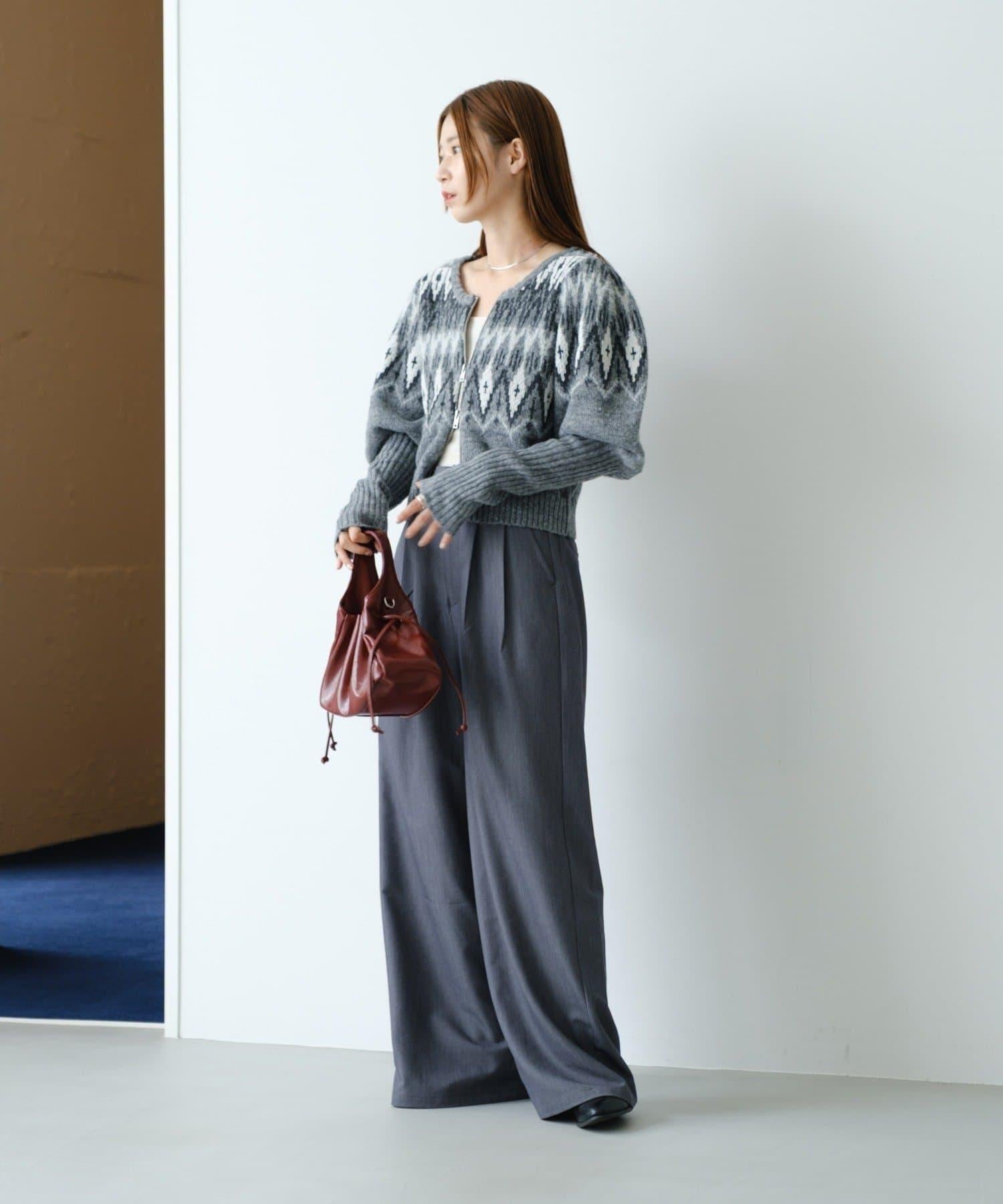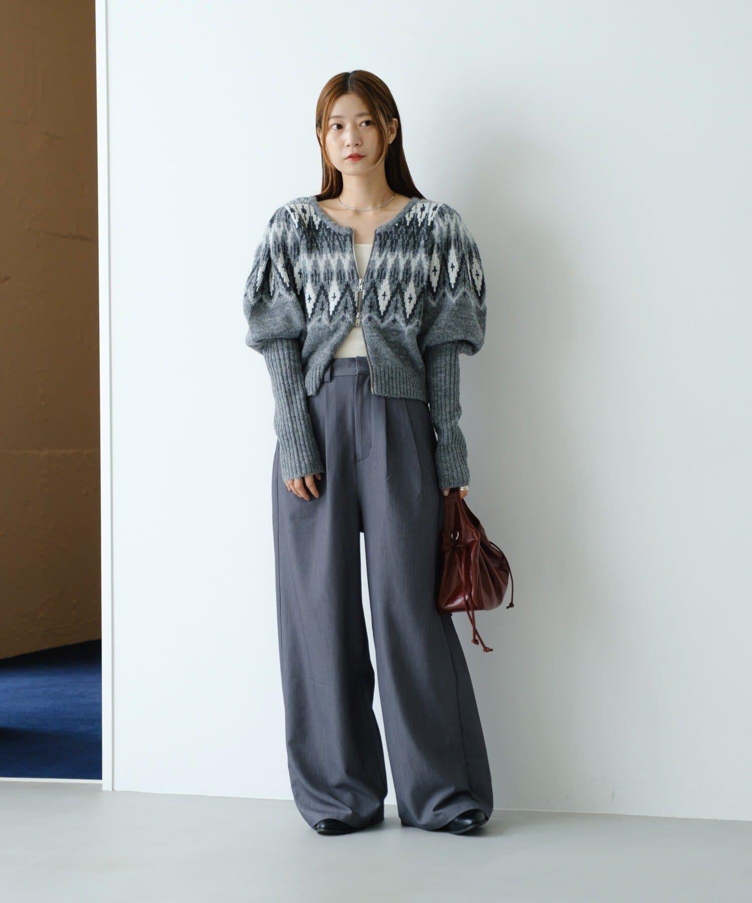 柔軟針織拉鍊開衫,帶有冬季北歐圖案。