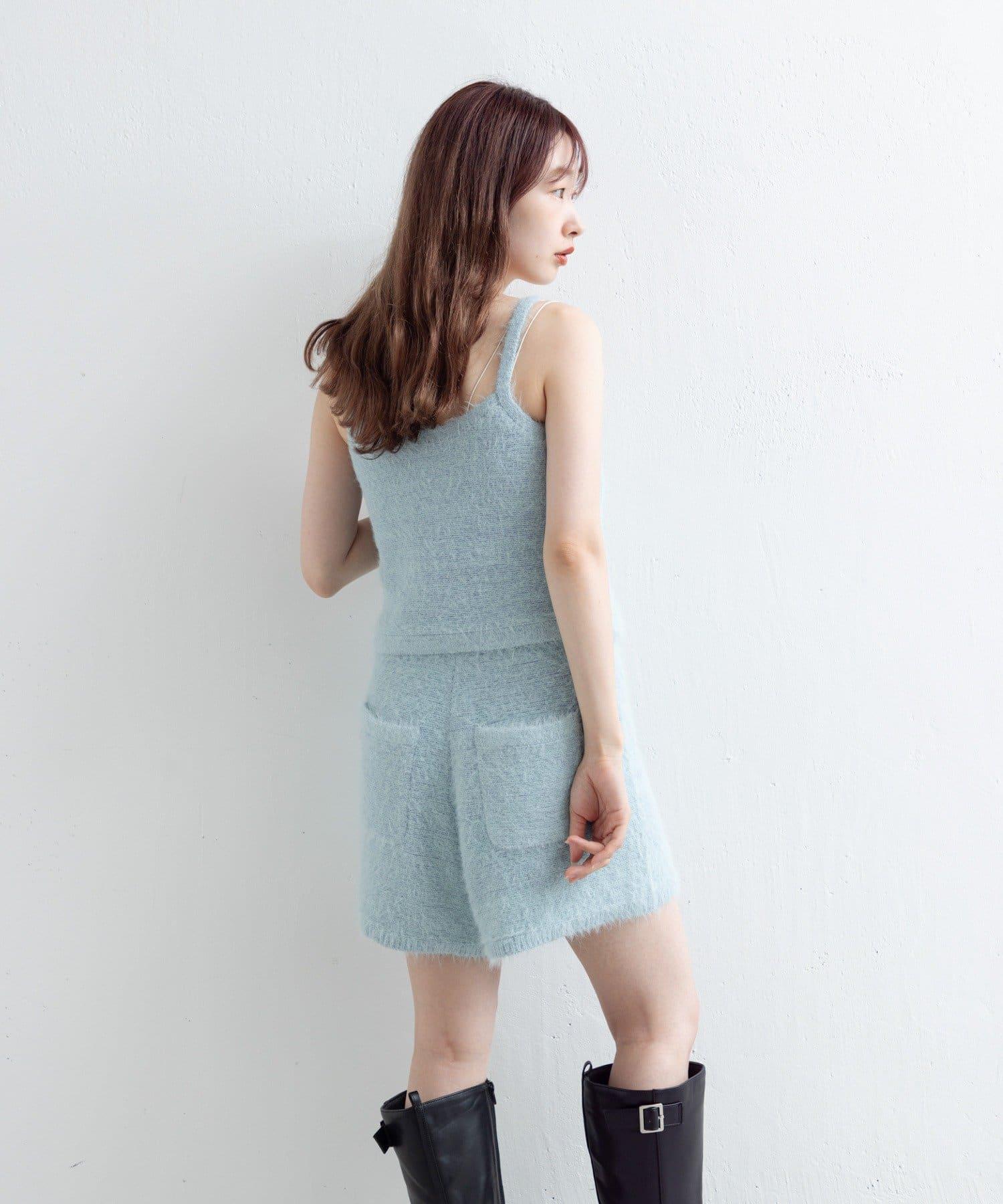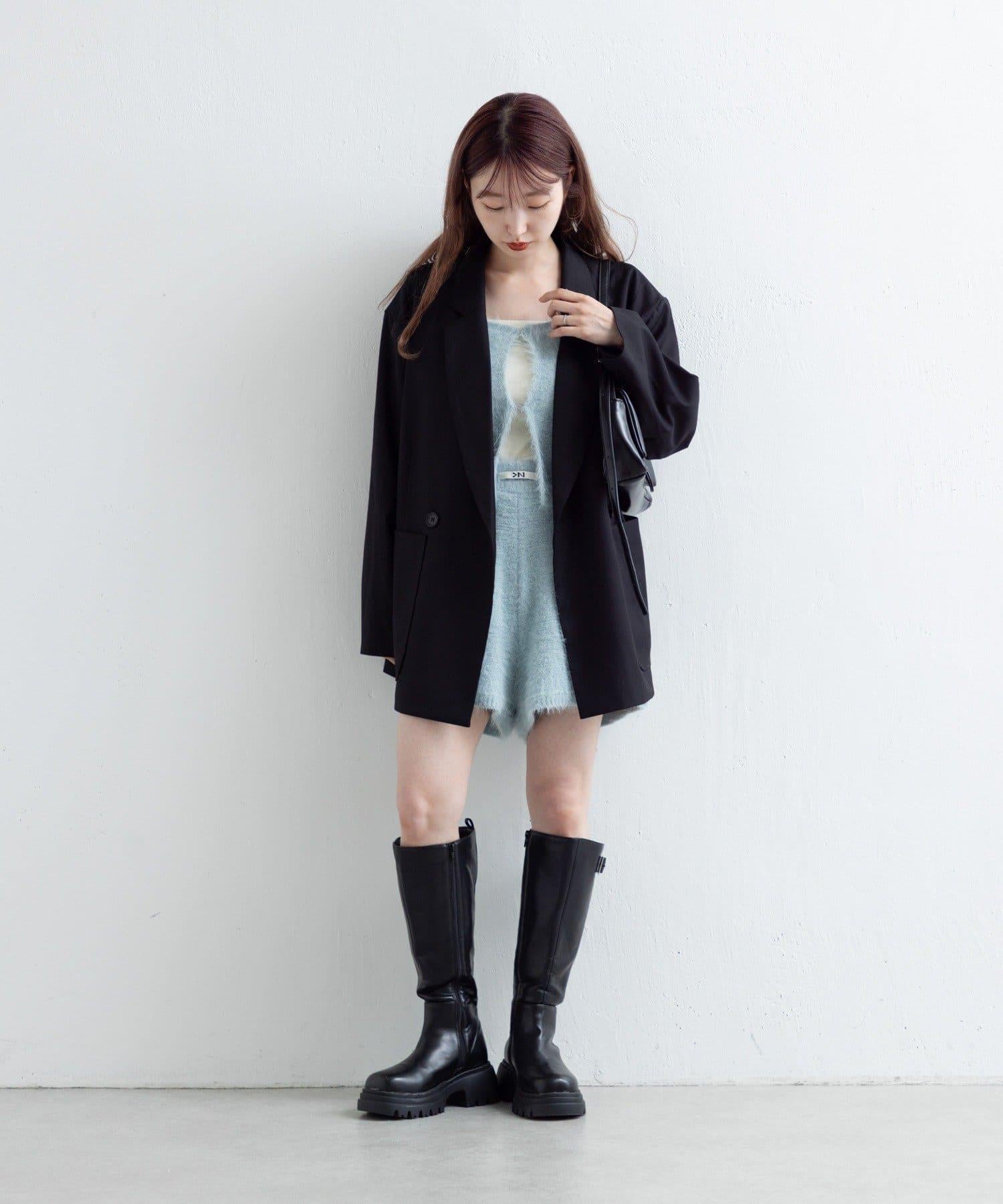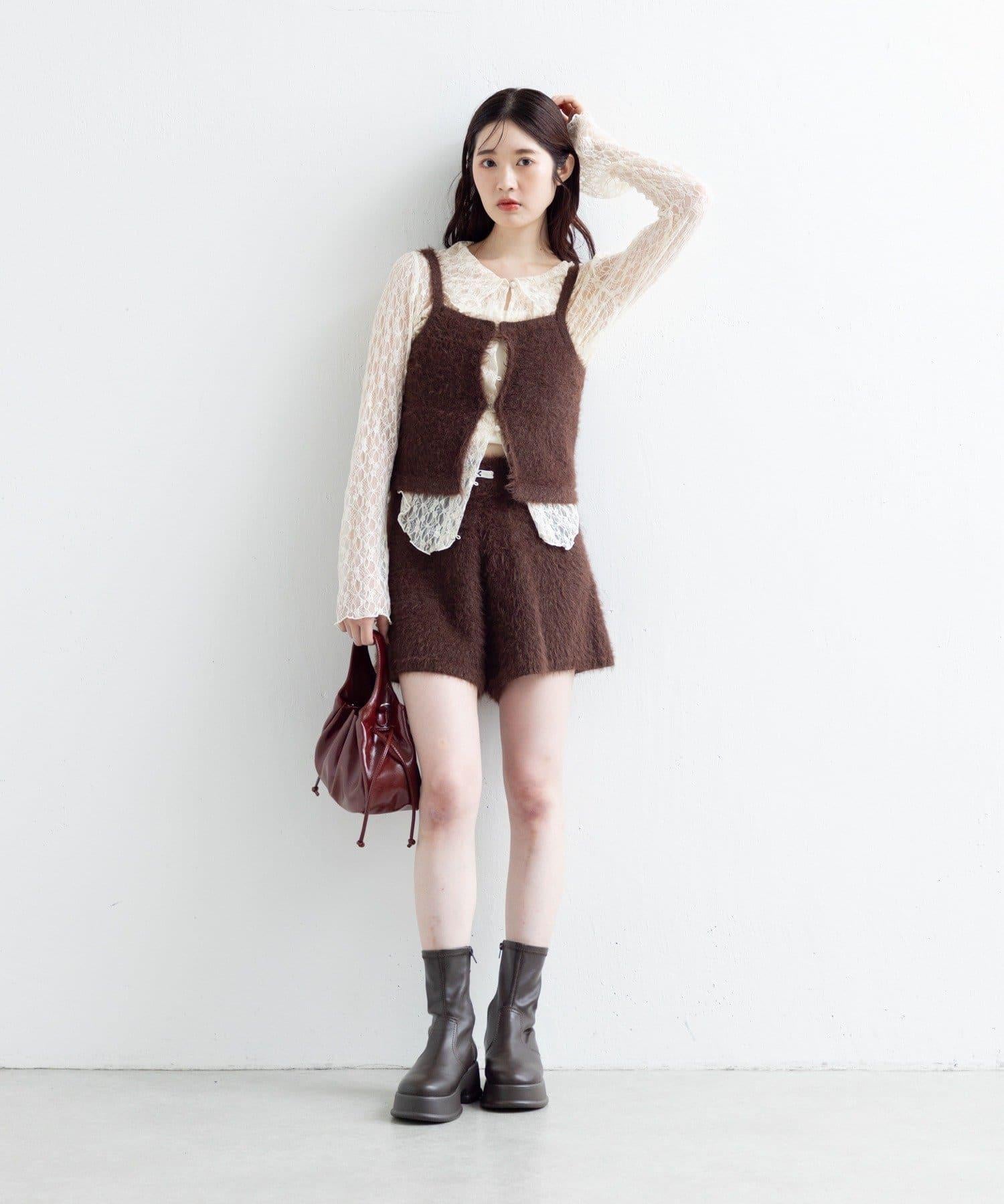這款套裝款式搭配同材質的針織上衣,營造出整體感和季節氛圍。