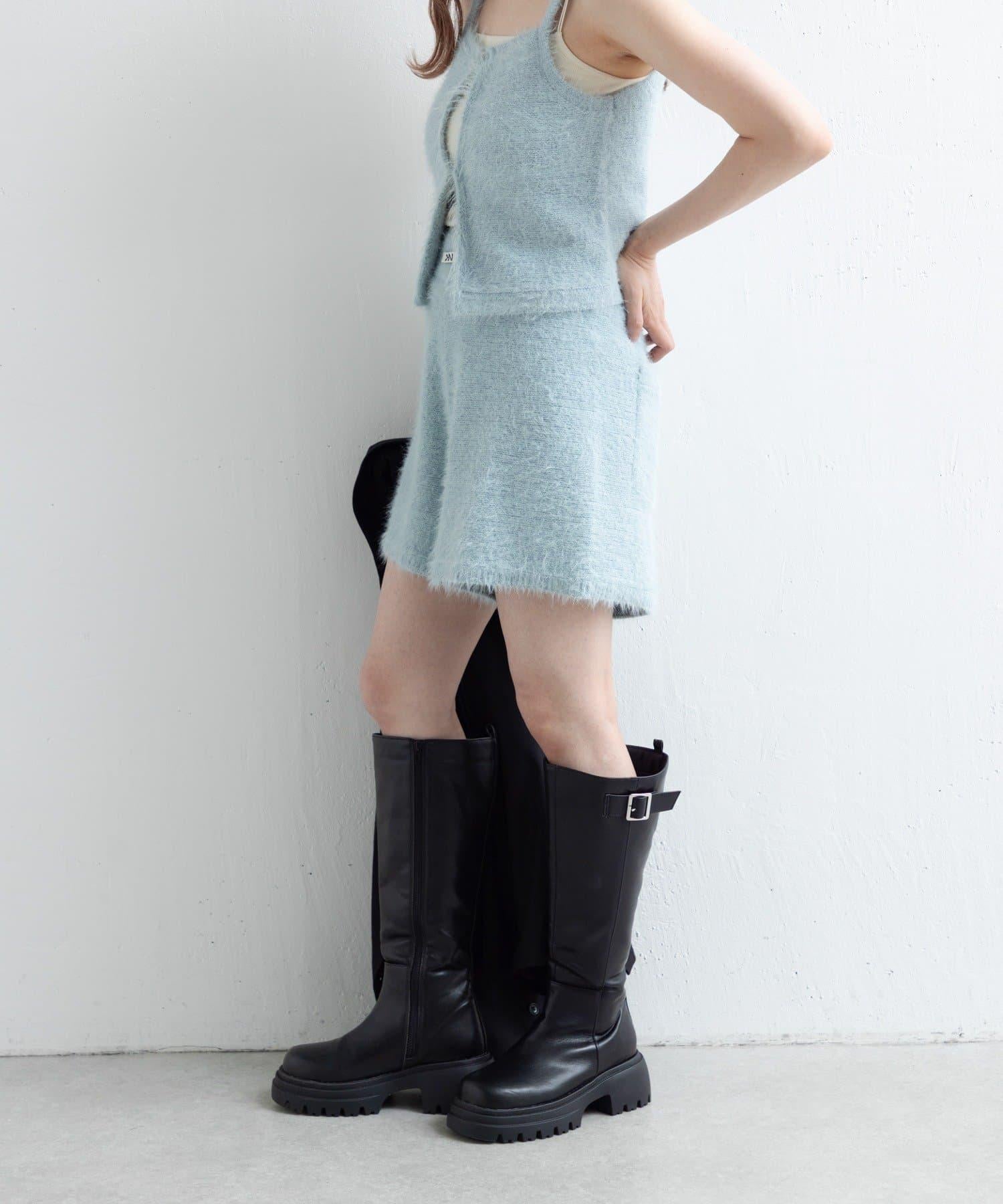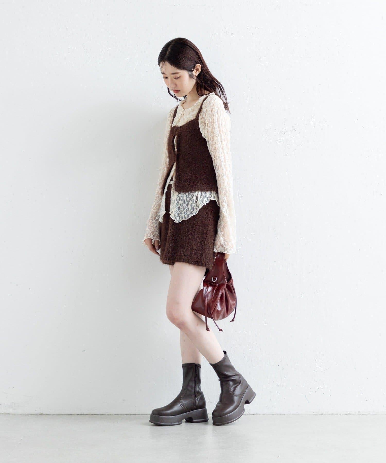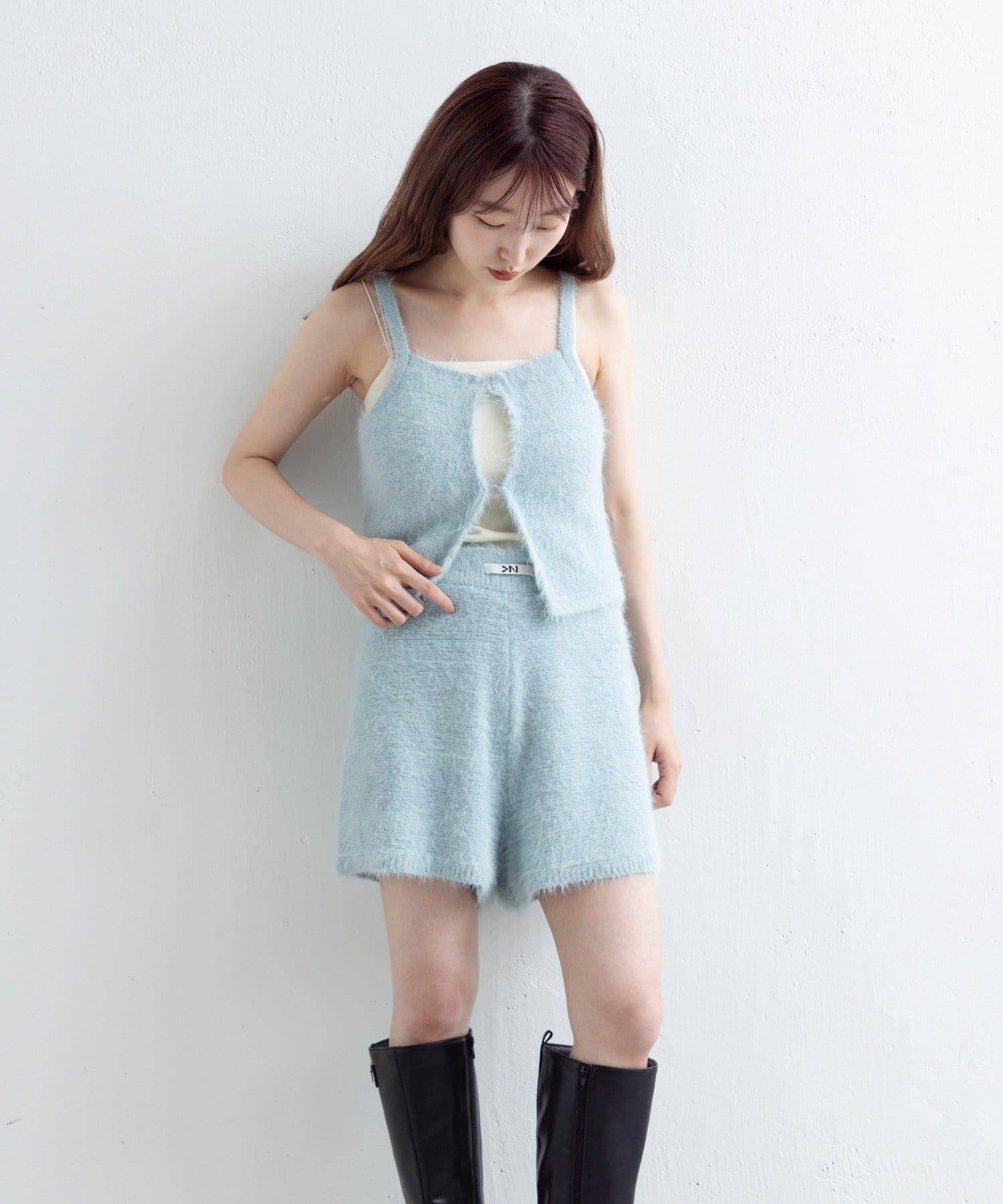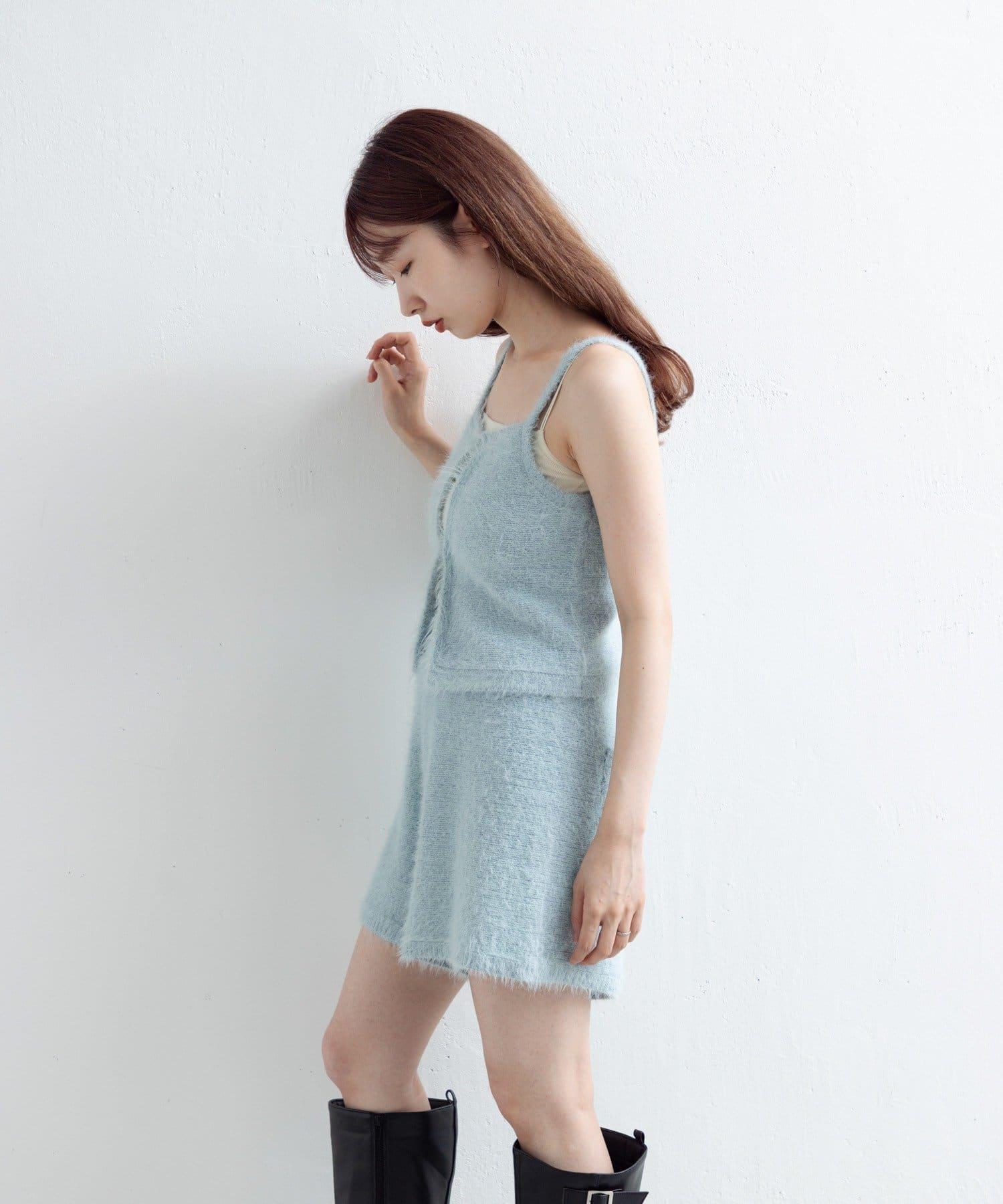 這款套裝款式搭配同材質的針織上衣,營造出整體感和季節氛圍。