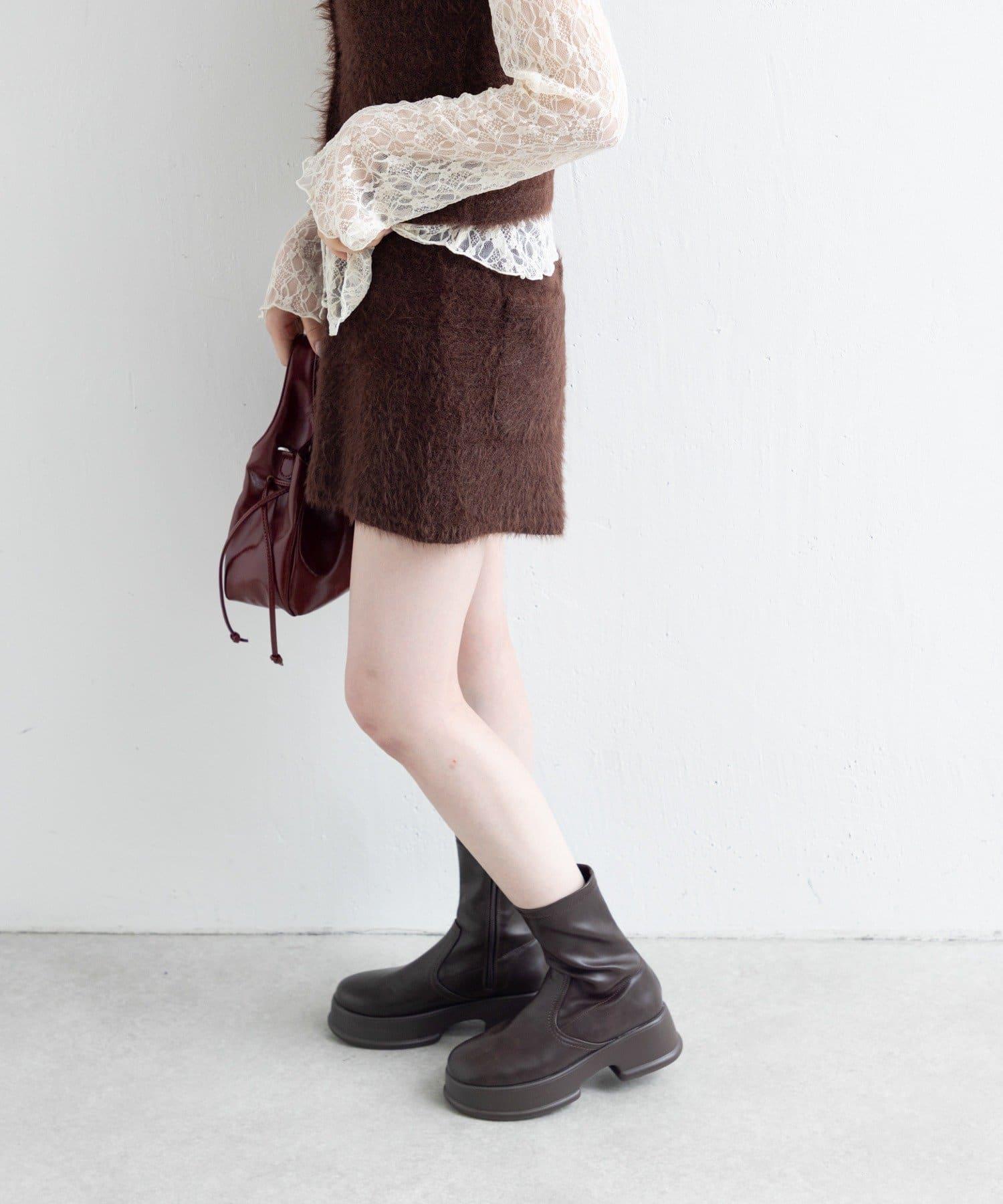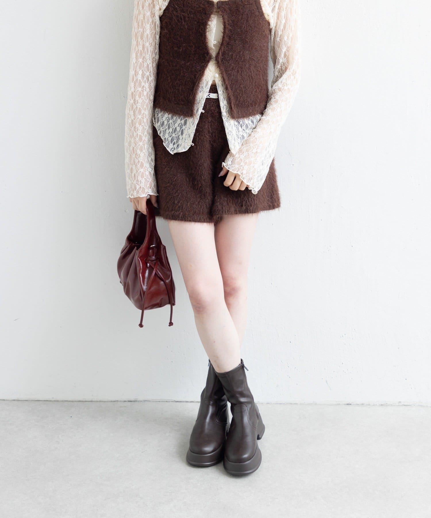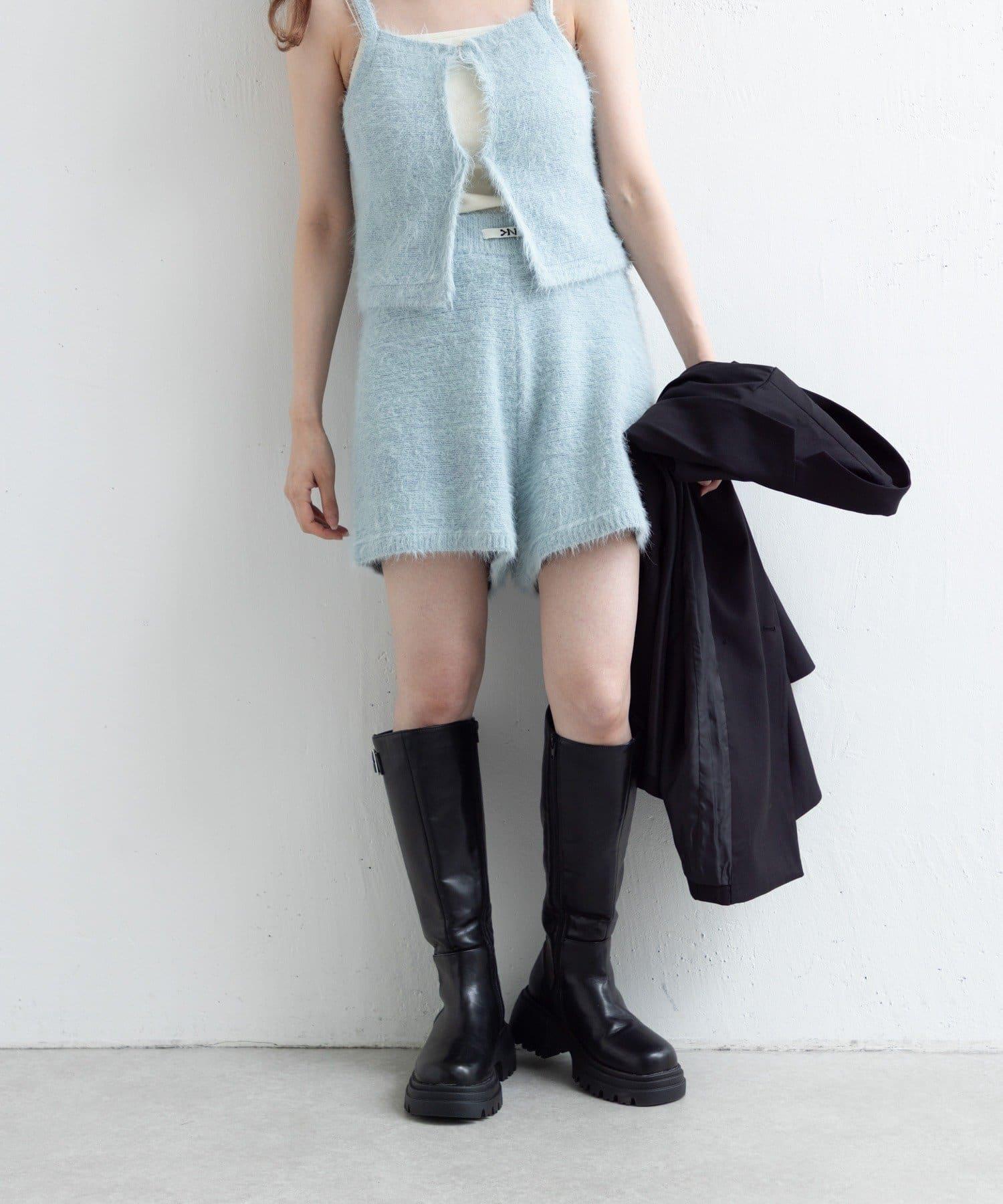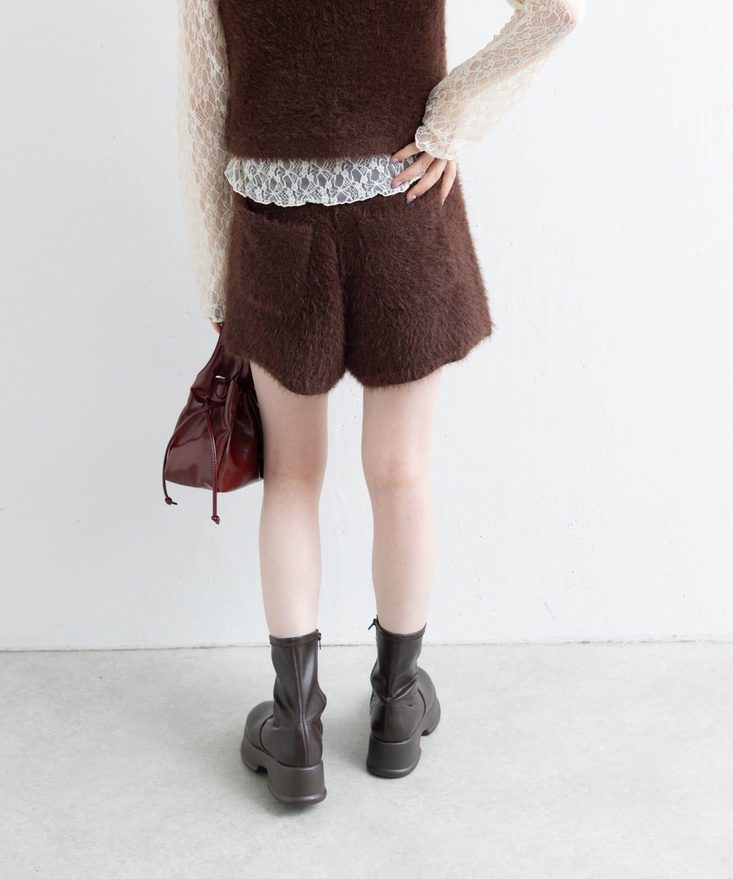 毛茸茸的針織長褲,毛皮柔軟蓬鬆。