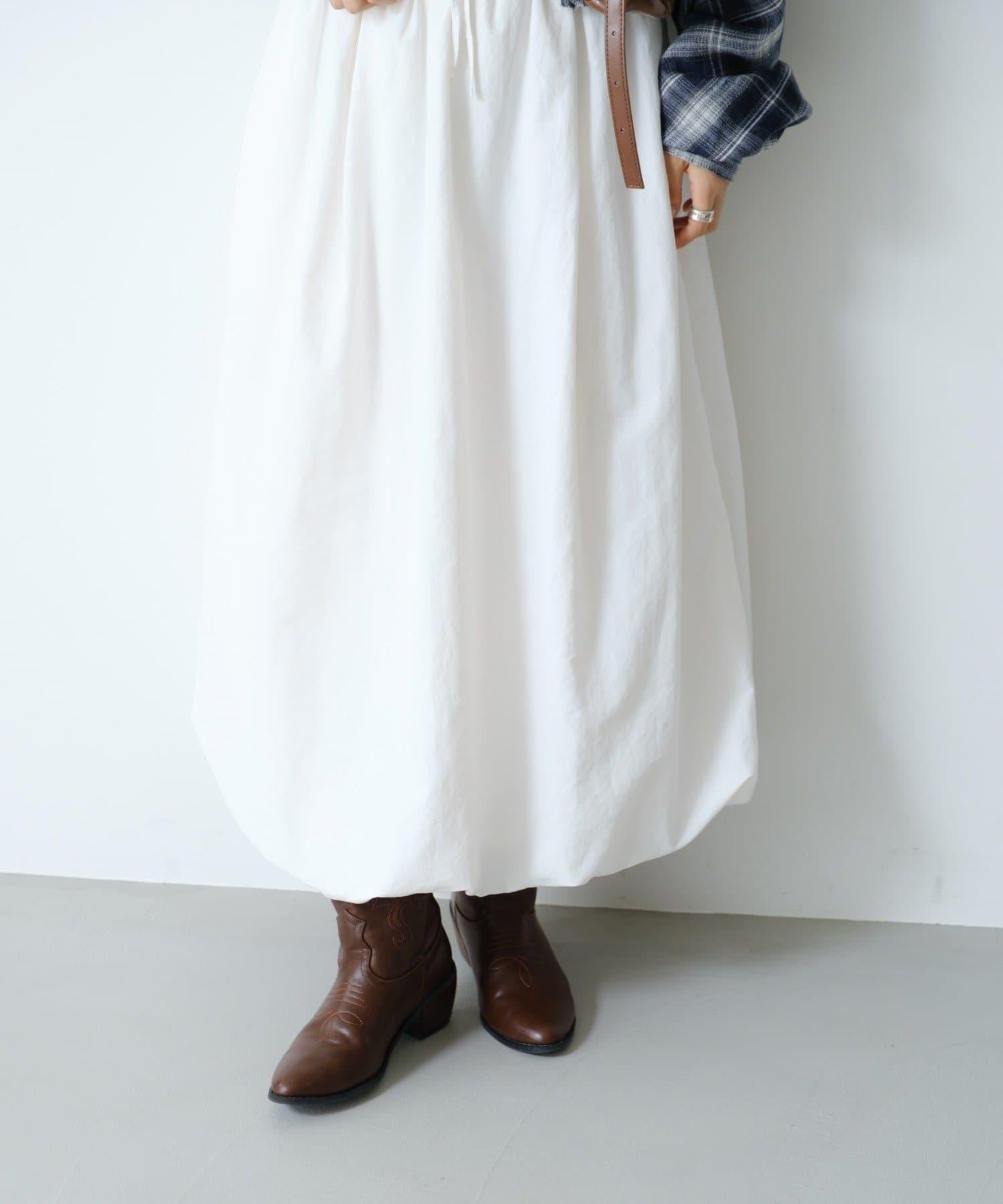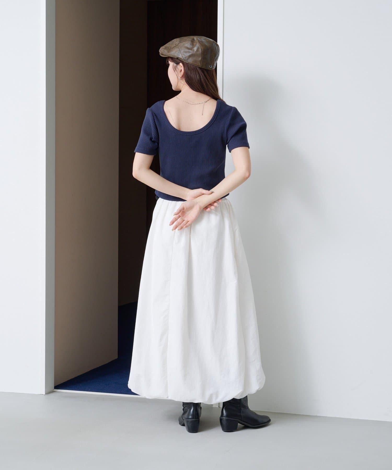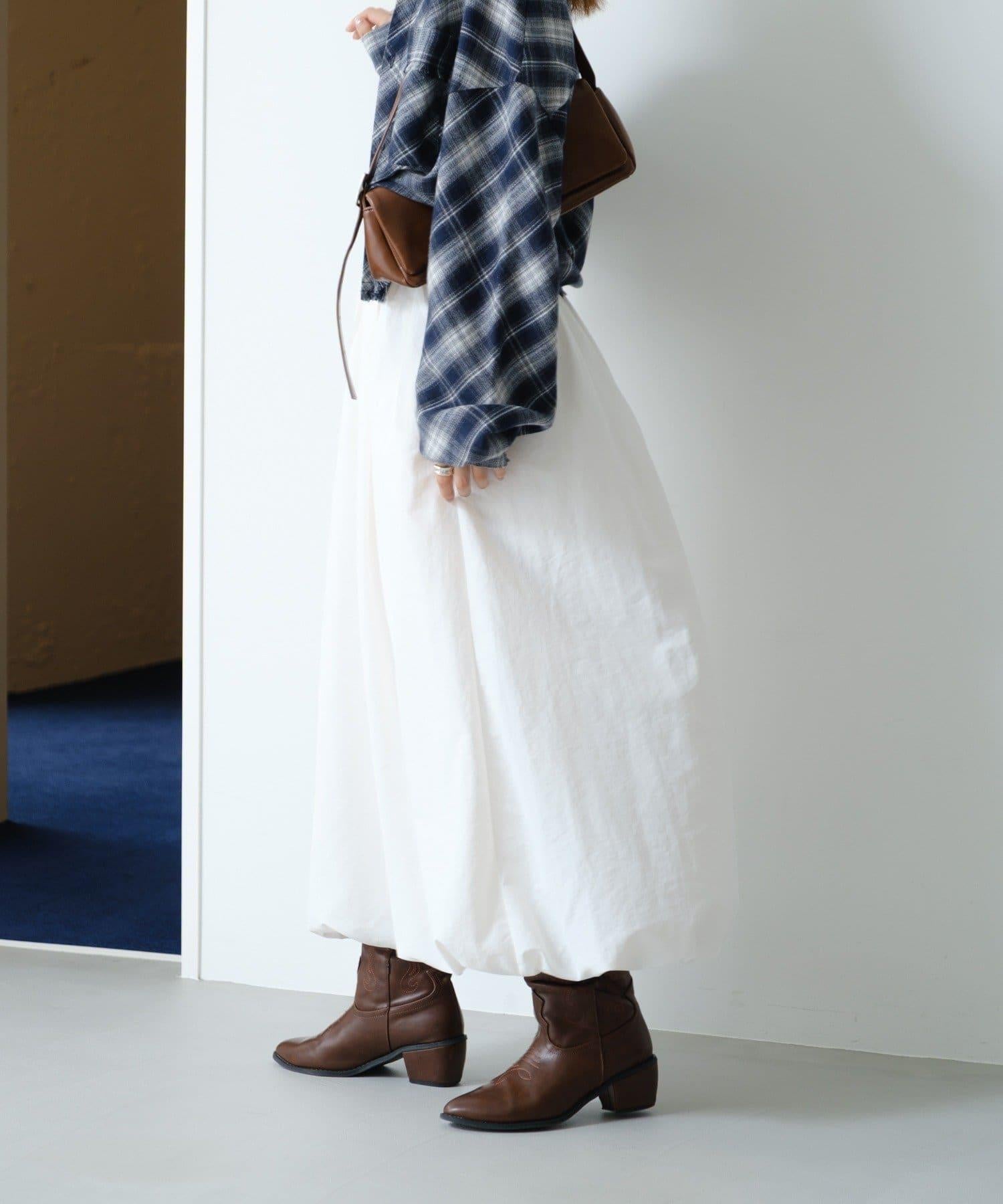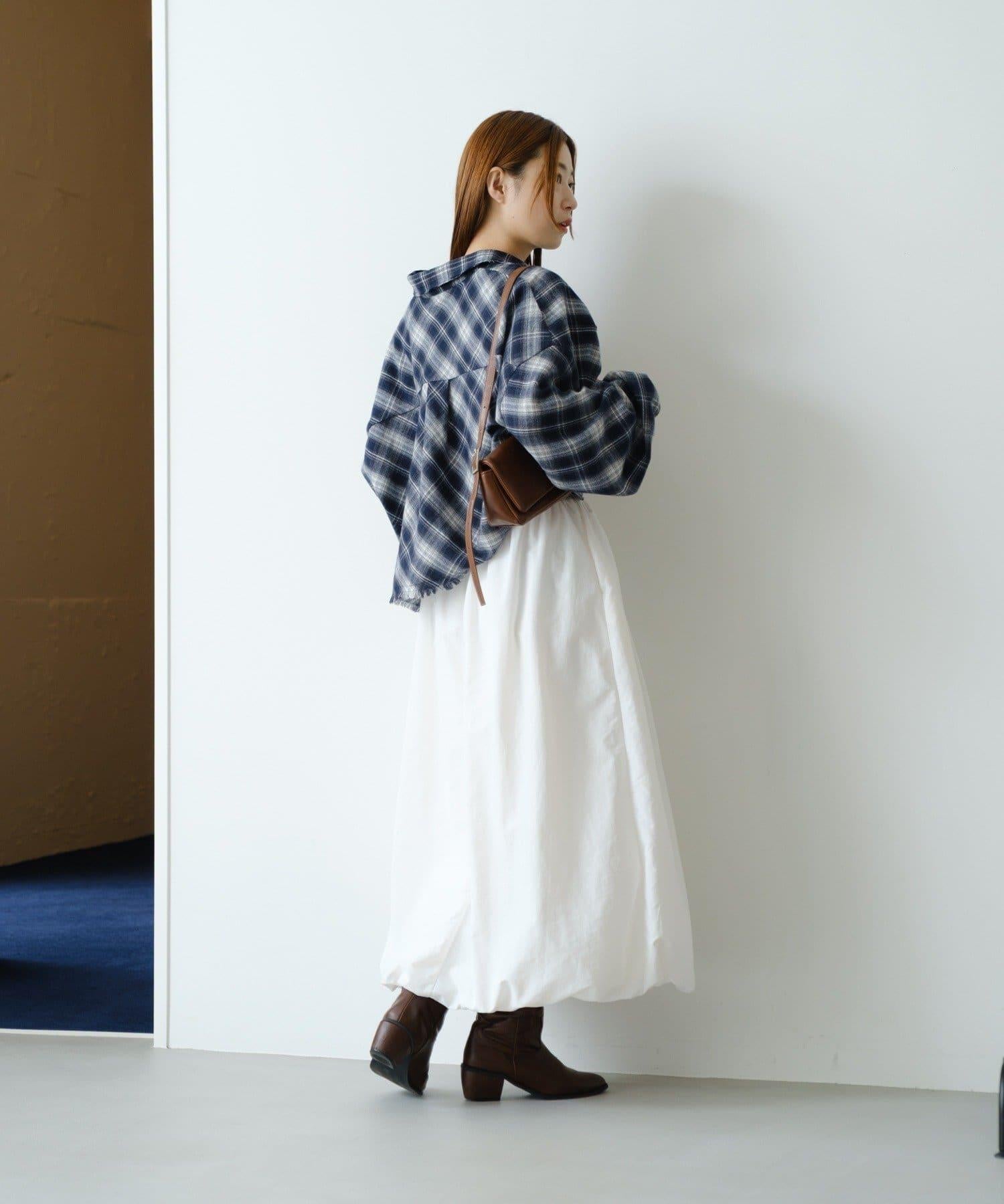 蓬鬆的白色氣球裙搭配緊身羅紋剪裁,縫製出利落的輪廓。腳踩運動鞋增添輕盈感,鴨舌帽和手提包營造粗獷氛圍。