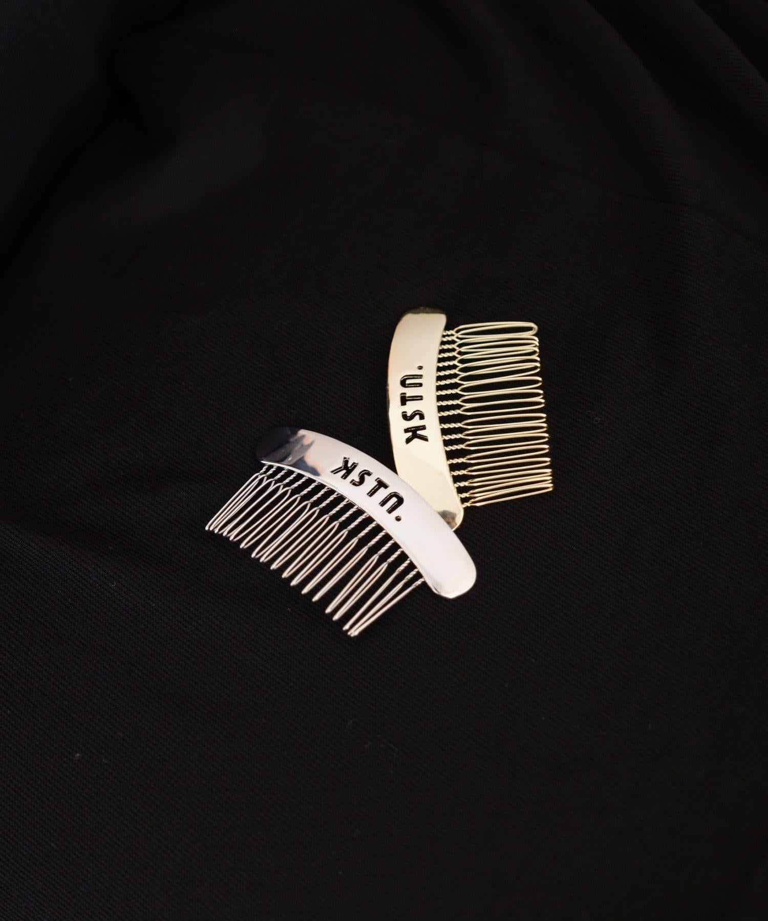 時尚的徽標設計,配以醒目的梳型金屬髮卡。