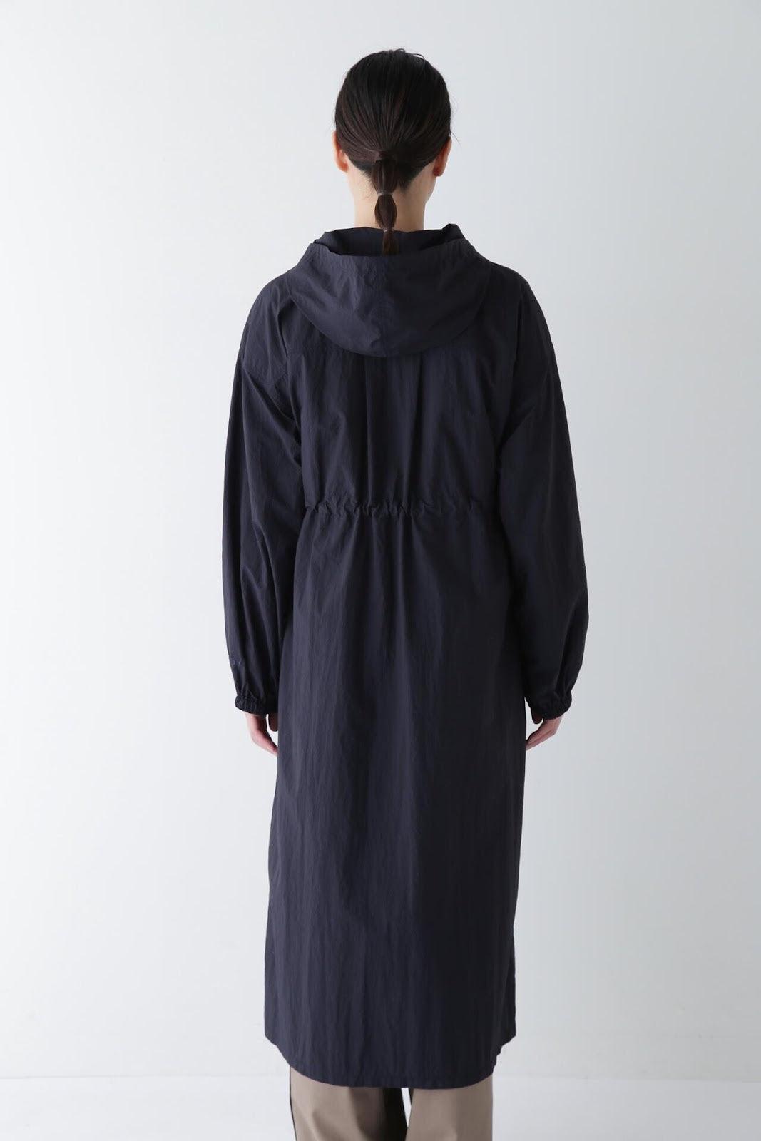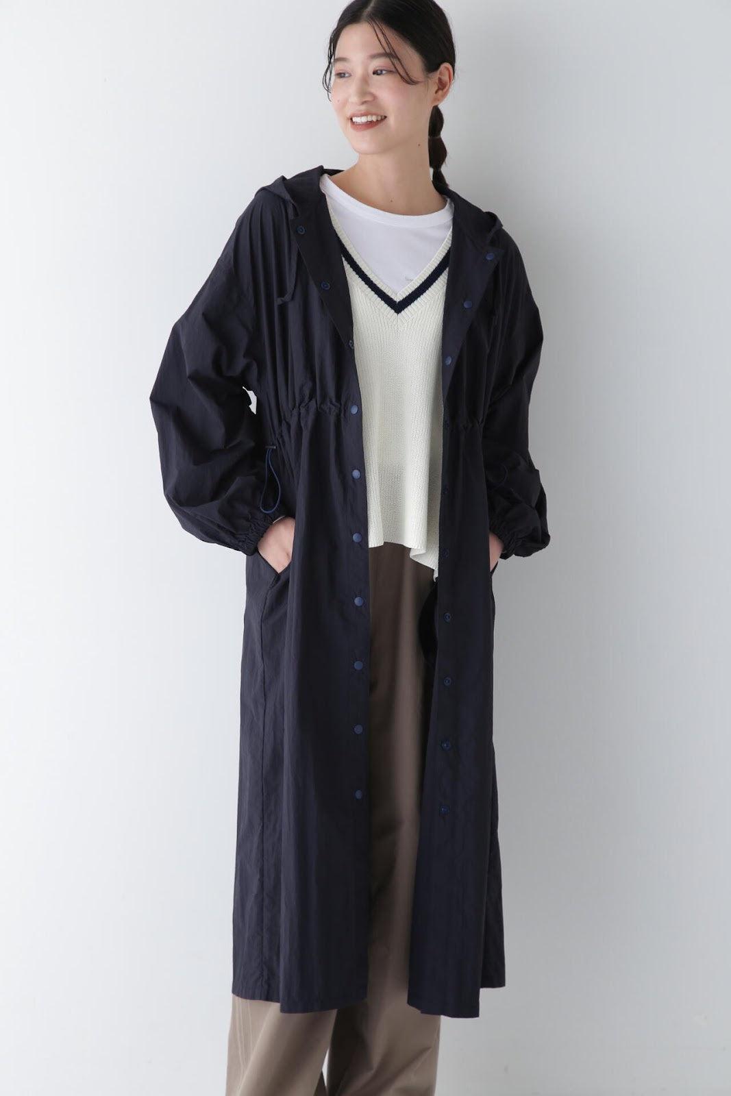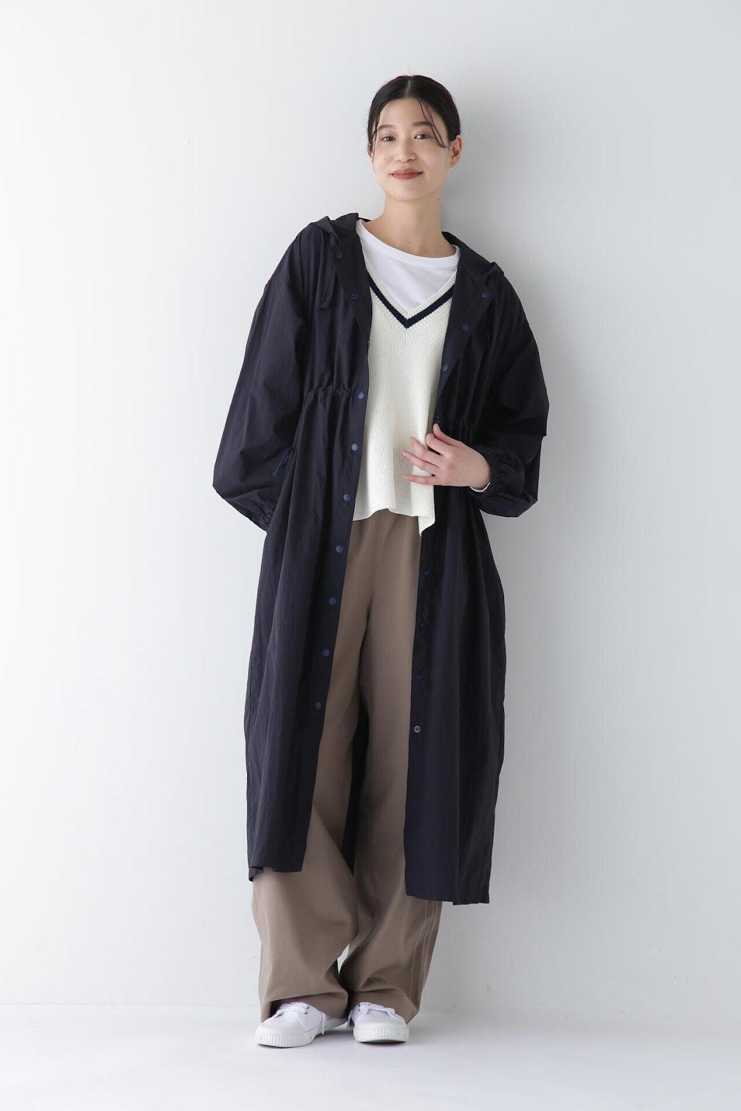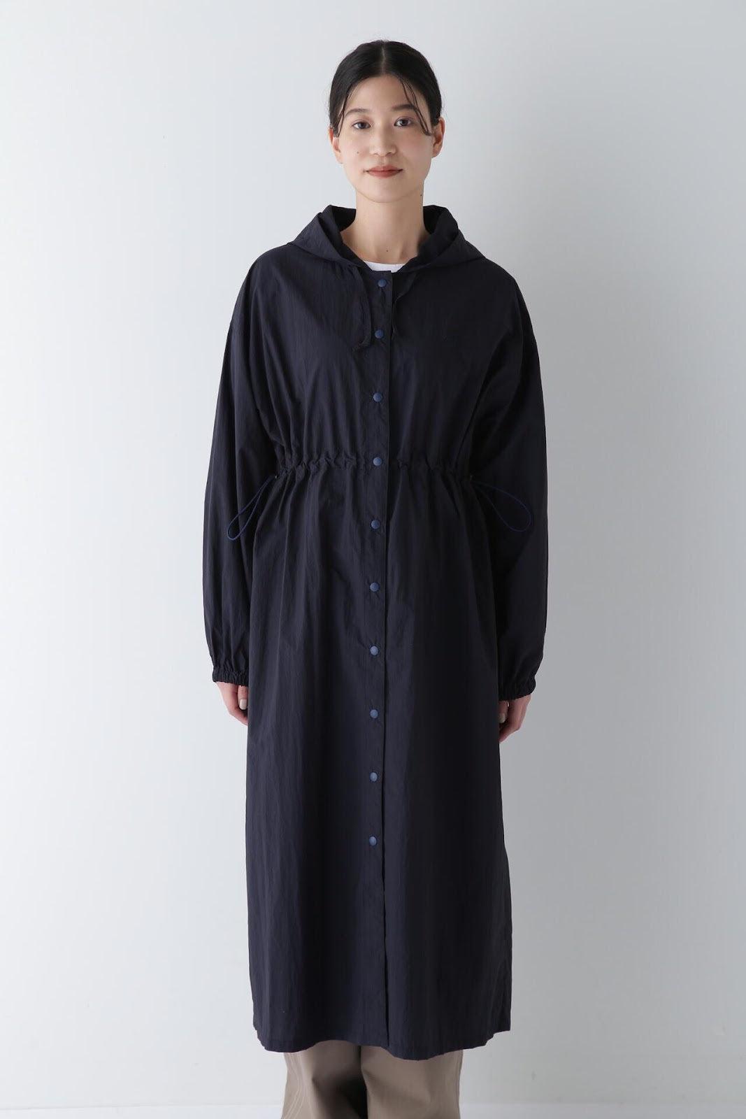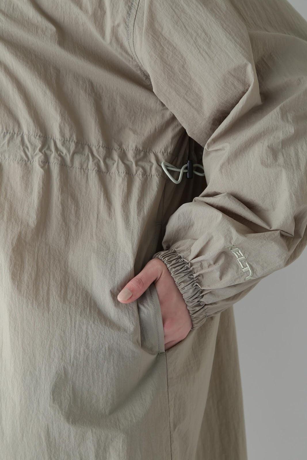KELTY x HUMAN WOMAN 合作定製連帽連身衣 [設計要點] 這款連帽連身衣是與 KELTY 合作推出的。這款連帽連身衣原本設計為短款襯衫式連帽外套,現在特別定製了長款。您還可以享受略微寬鬆的廓形和腰部開襟的廓形變化。顏色和刺繡顏色為特別定製。面料採用輕薄、防水、透明的墊圈材料。推薦搭配:可作為連衣裙或梭織外套穿著。由於其透明性,還建議下穿褲子或與花紋面料疊穿。