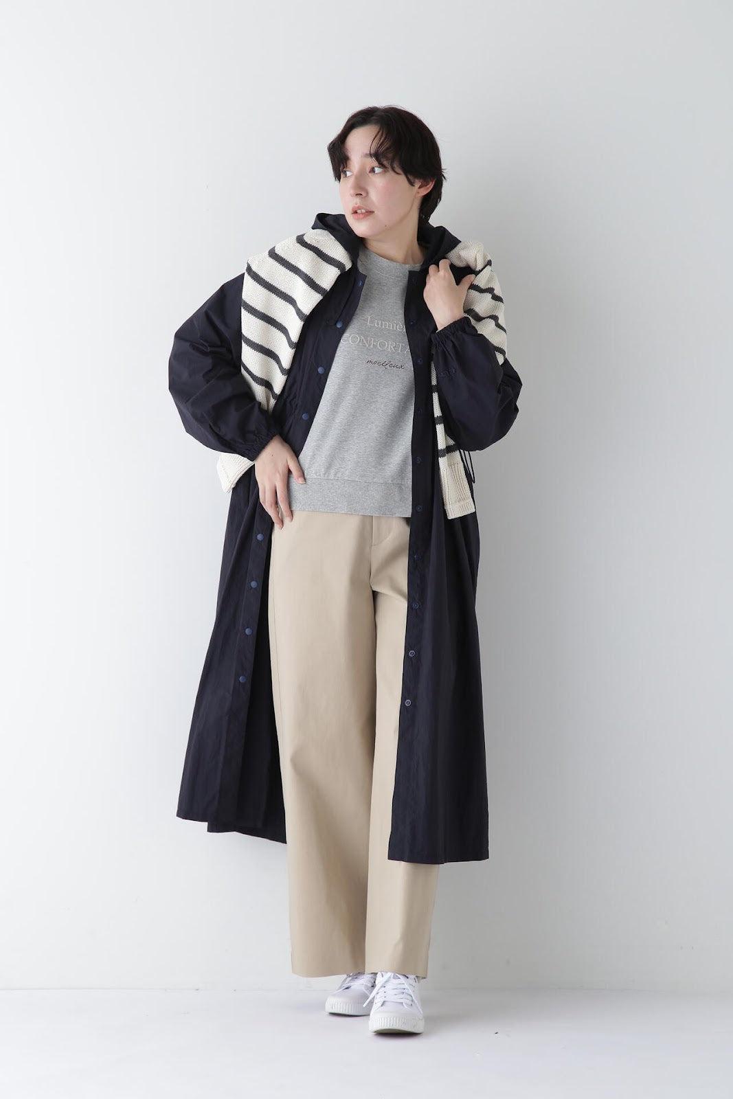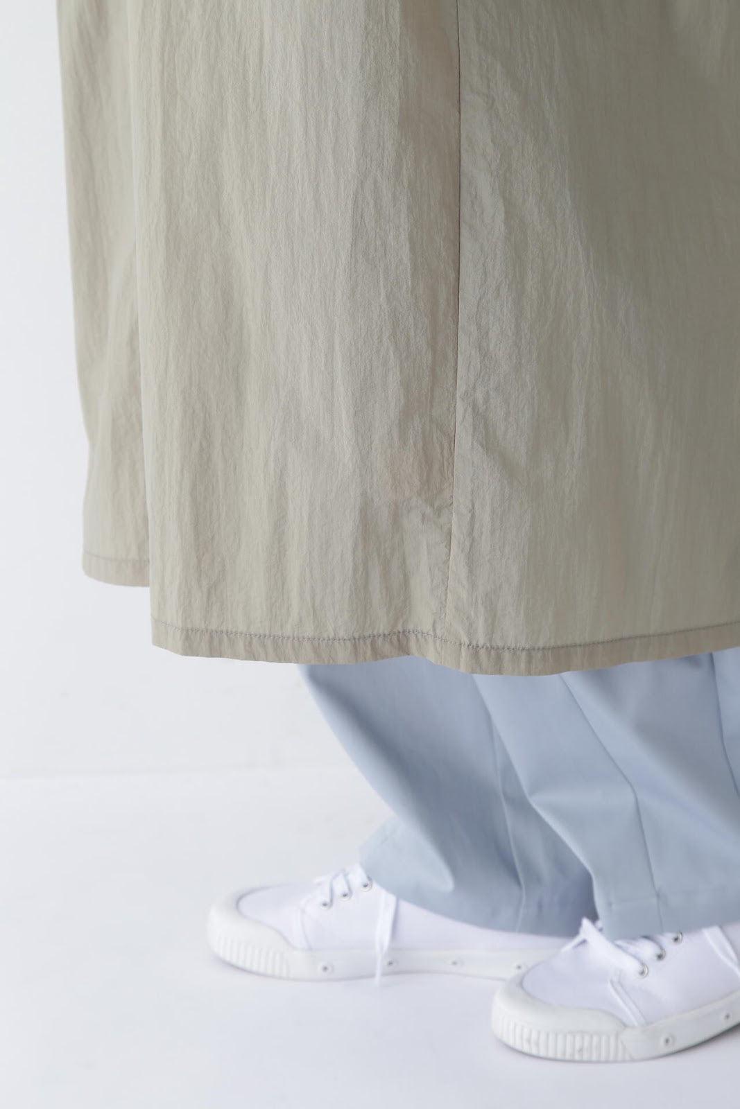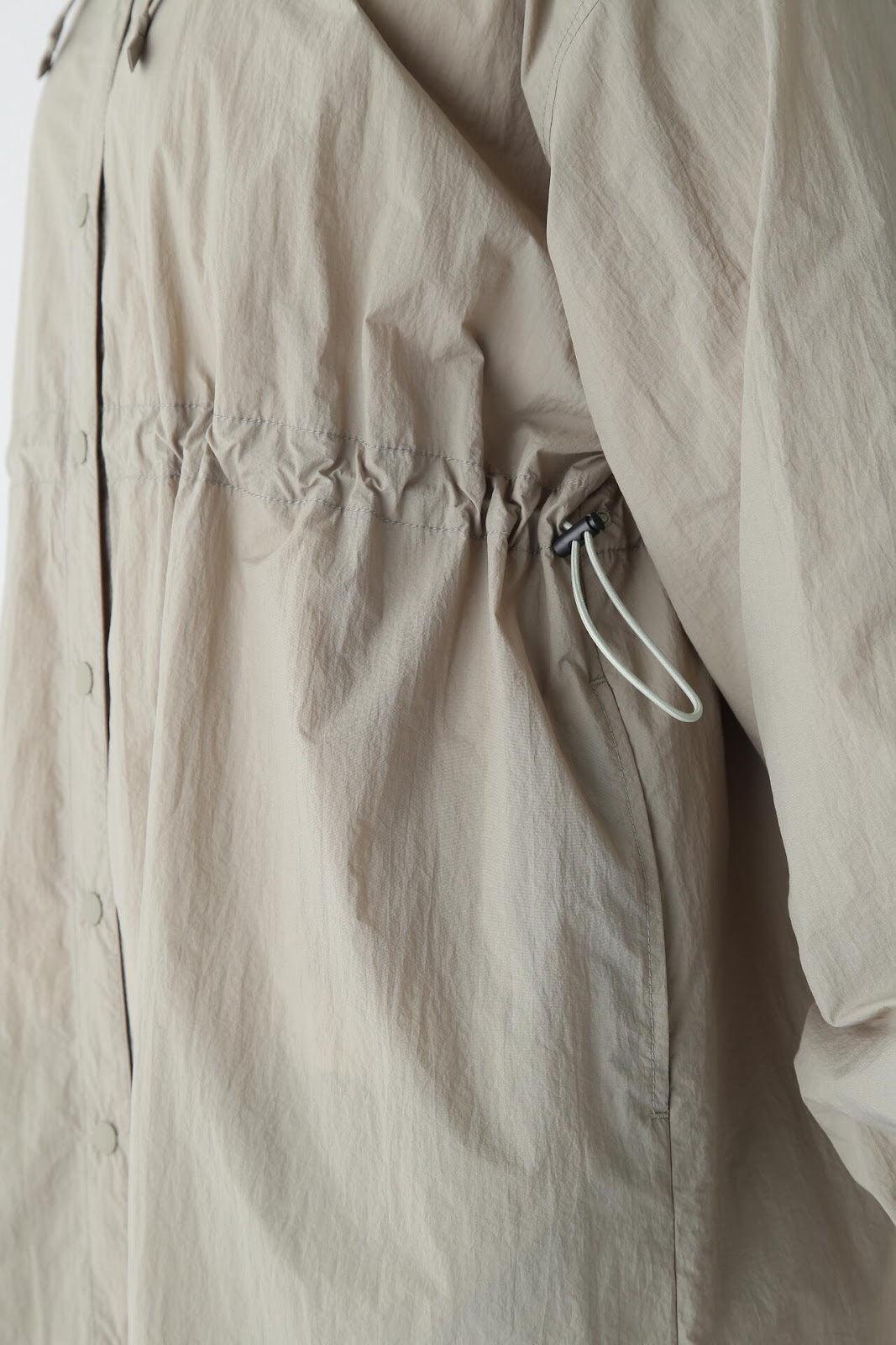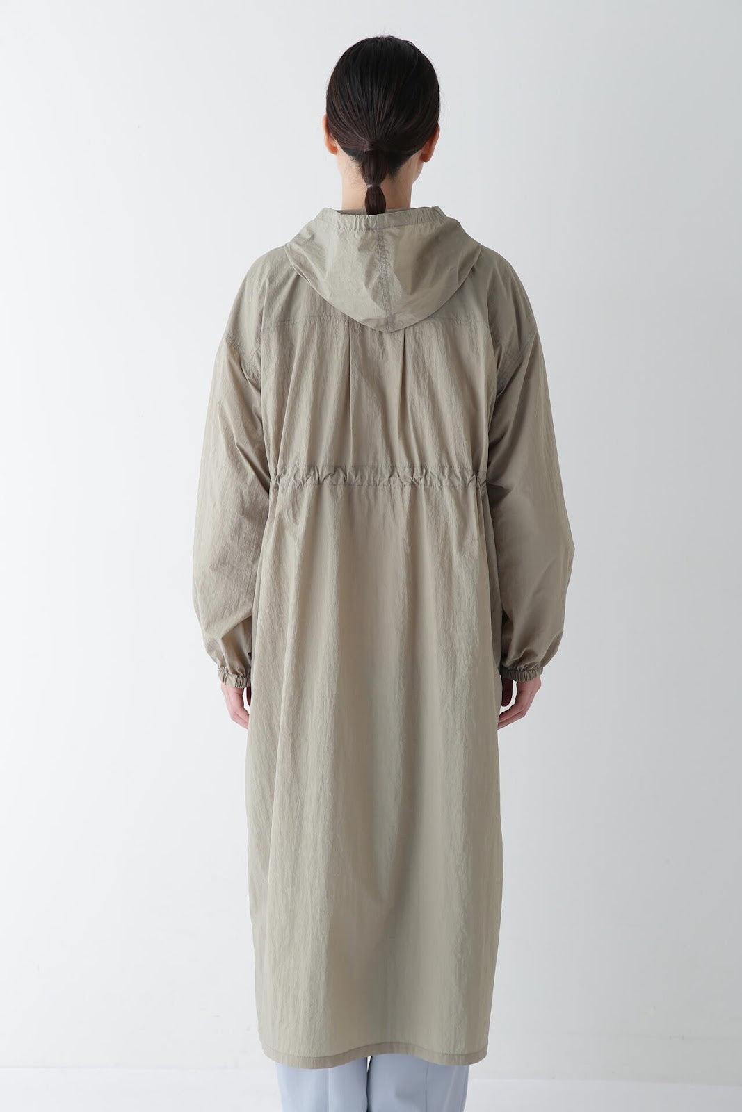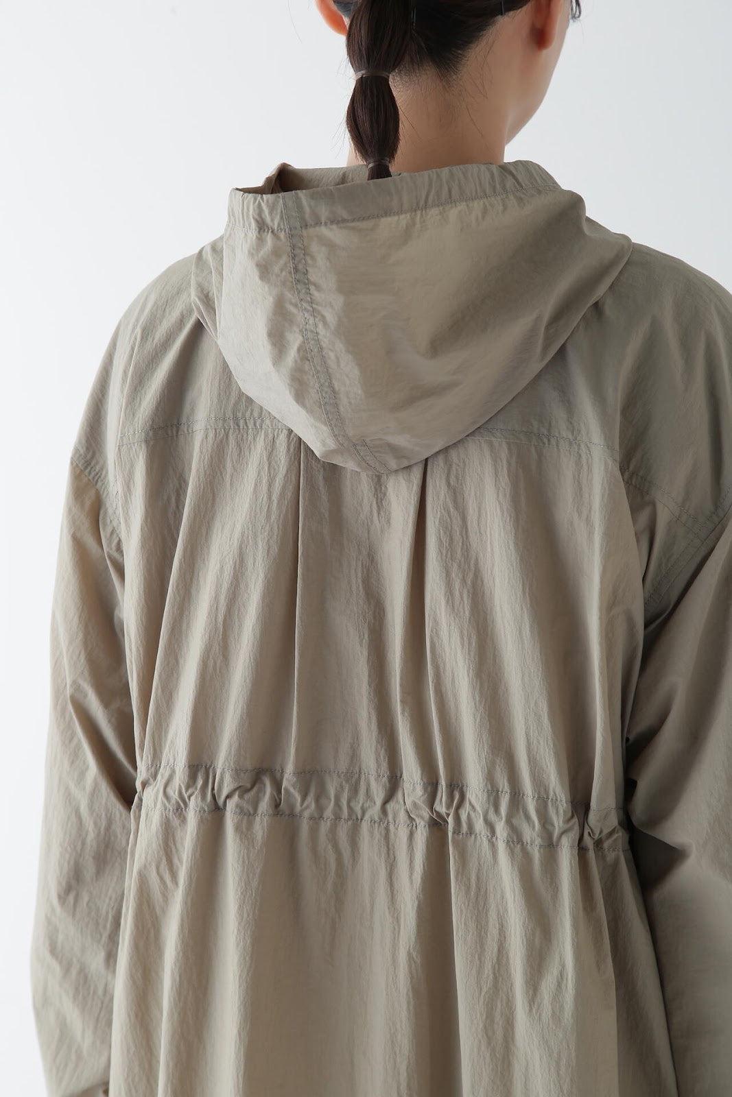 KELTY x HUMAN WOMAN 合作定製連帽連身衣 [設計要點] 這款連帽連身衣是與 KELTY 合作推出的。這款連帽連身衣原本設計為短款襯衫式連帽外套,現在特別定製了長款。您還可以享受略微寬鬆的廓形和腰部開襟的廓形變化。顏色和刺繡顏色為特別定製。面料採用輕薄、防水、透明的墊圈材料。推薦搭配:可作為連衣裙或梭織外套穿著。由於其透明性,還建議下穿褲子或與花紋面料疊穿。