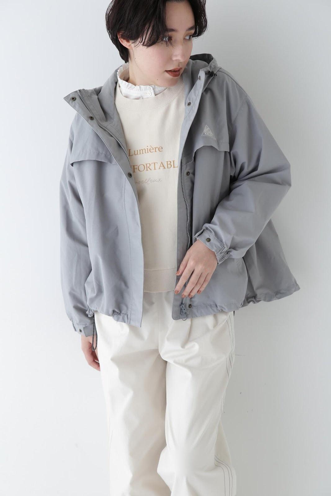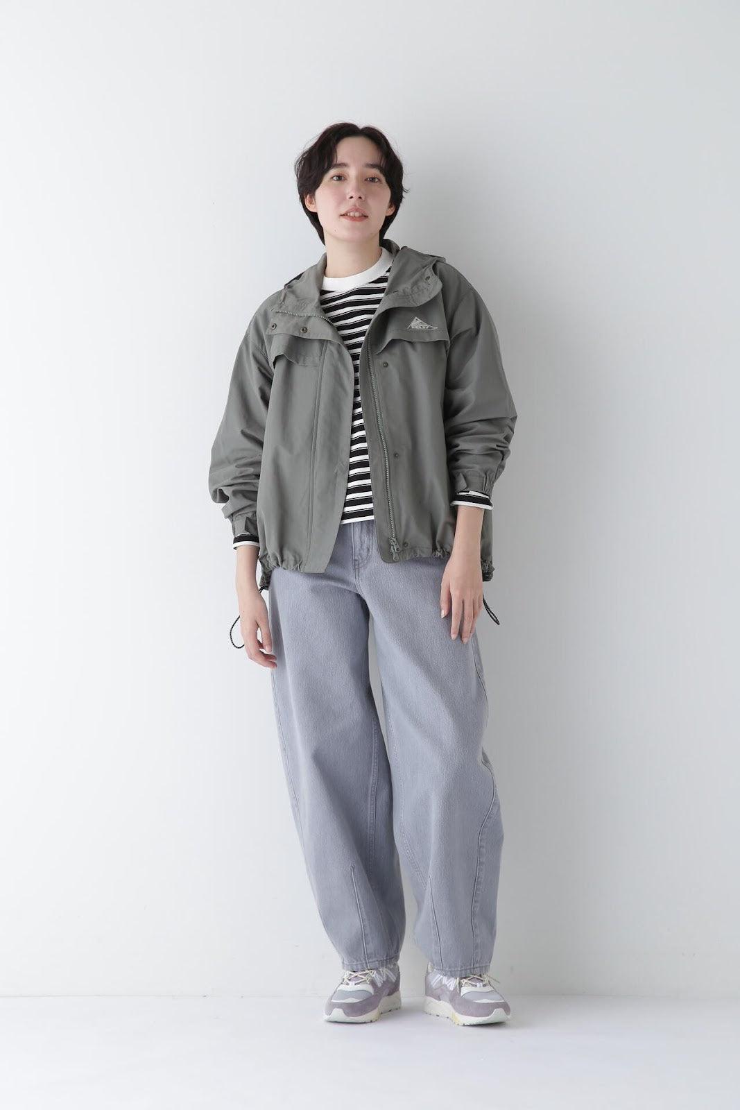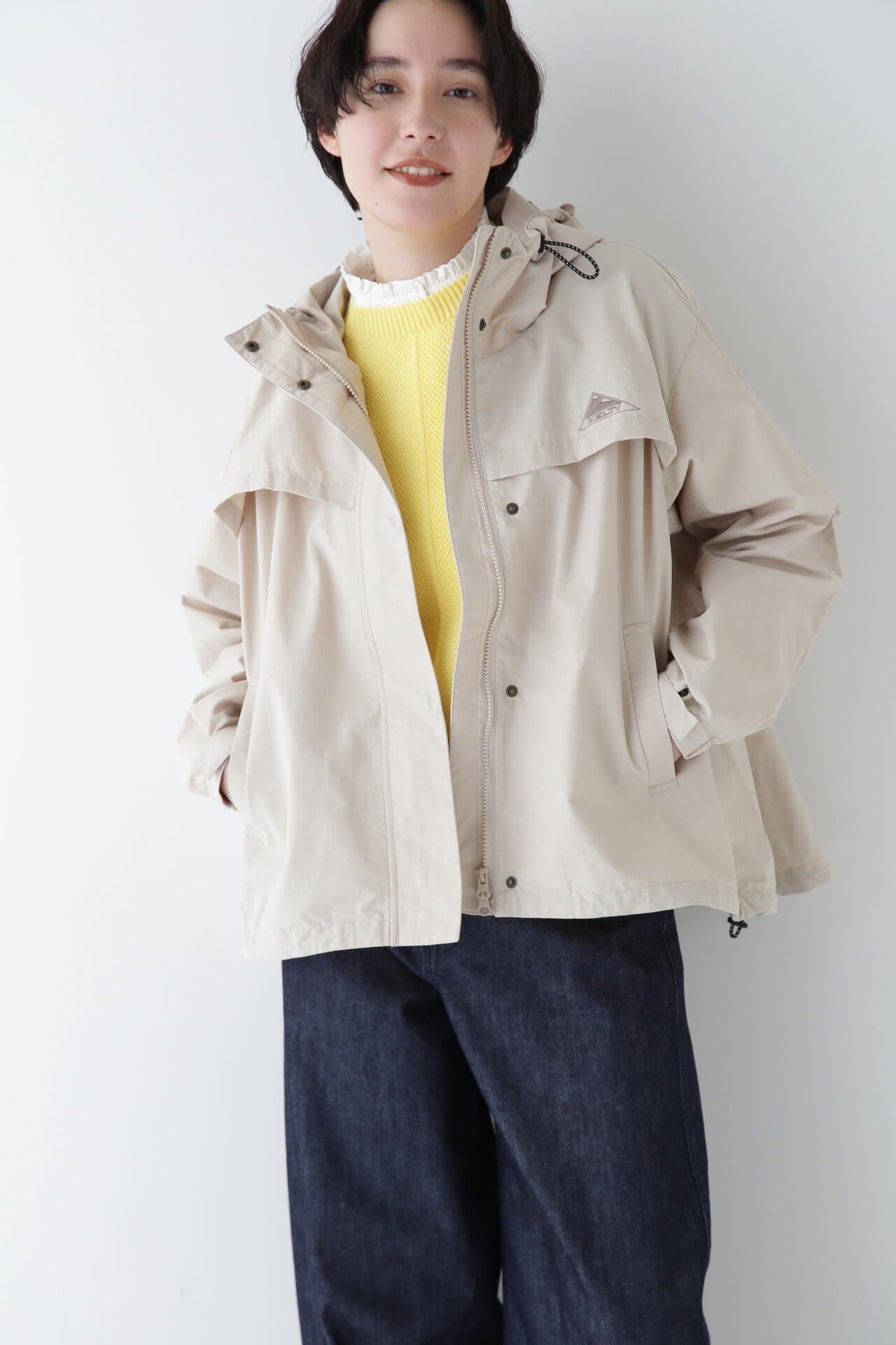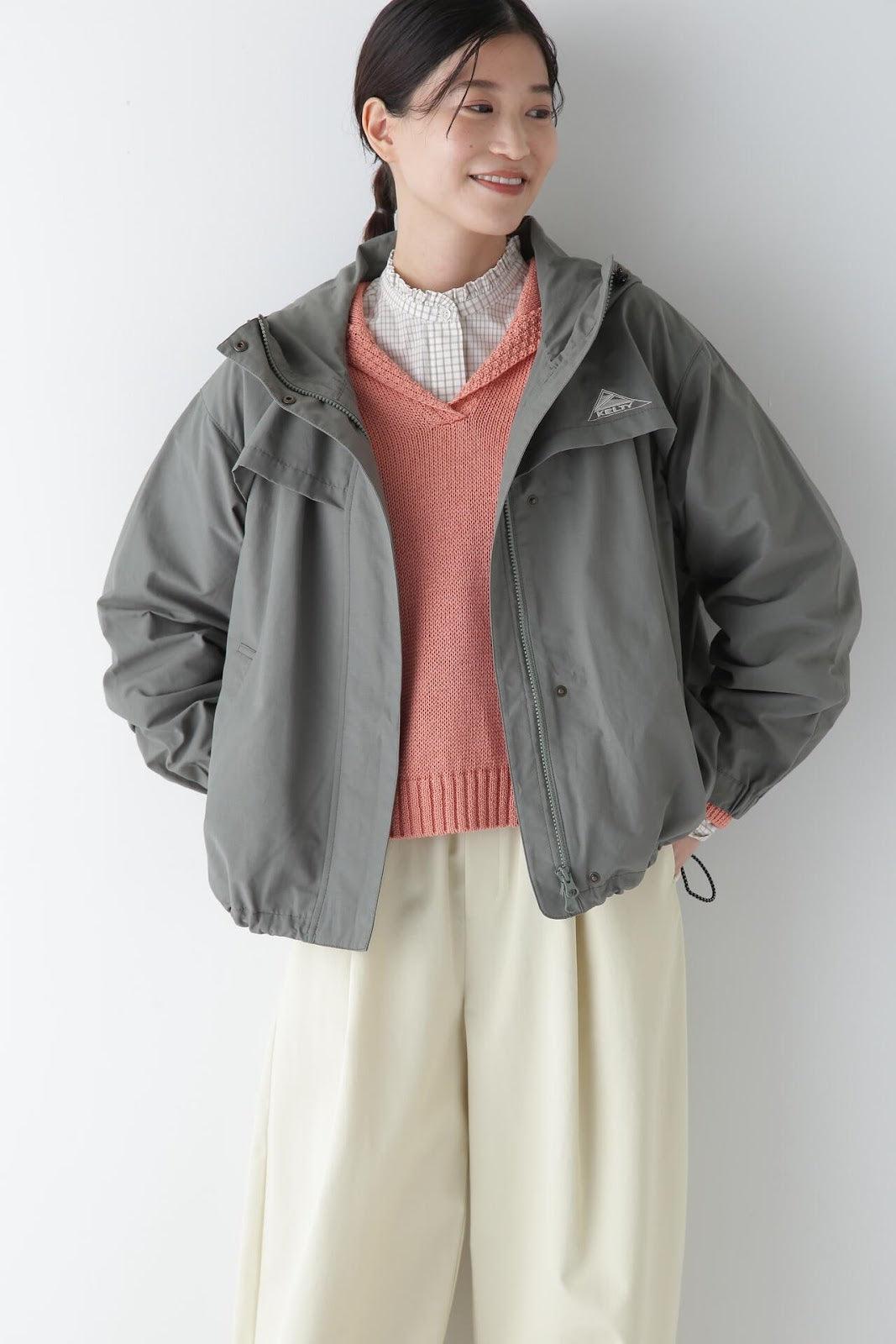 與 "KELTY×human woman "合作的特訂連帽上衣 [設計特點] 這是與 "KELTY "合作的連帽上衣。KELTY流行的Zapata夾克的兜帽中間改為可拉開拉鍊的設計。後軛和袖口的平衡也做了與品牌相匹配的改動,例如採用了隱藏式圓點規格。背部的體積在瀏覽時顯得十分可愛。面料採用具有防水功能的防撕裂面料。推薦搭配] 可根據心情拉動下襬抽繩,享受廓形的變化。無論是戶外場景還是日常休閒風格,它都能很好地勝任。