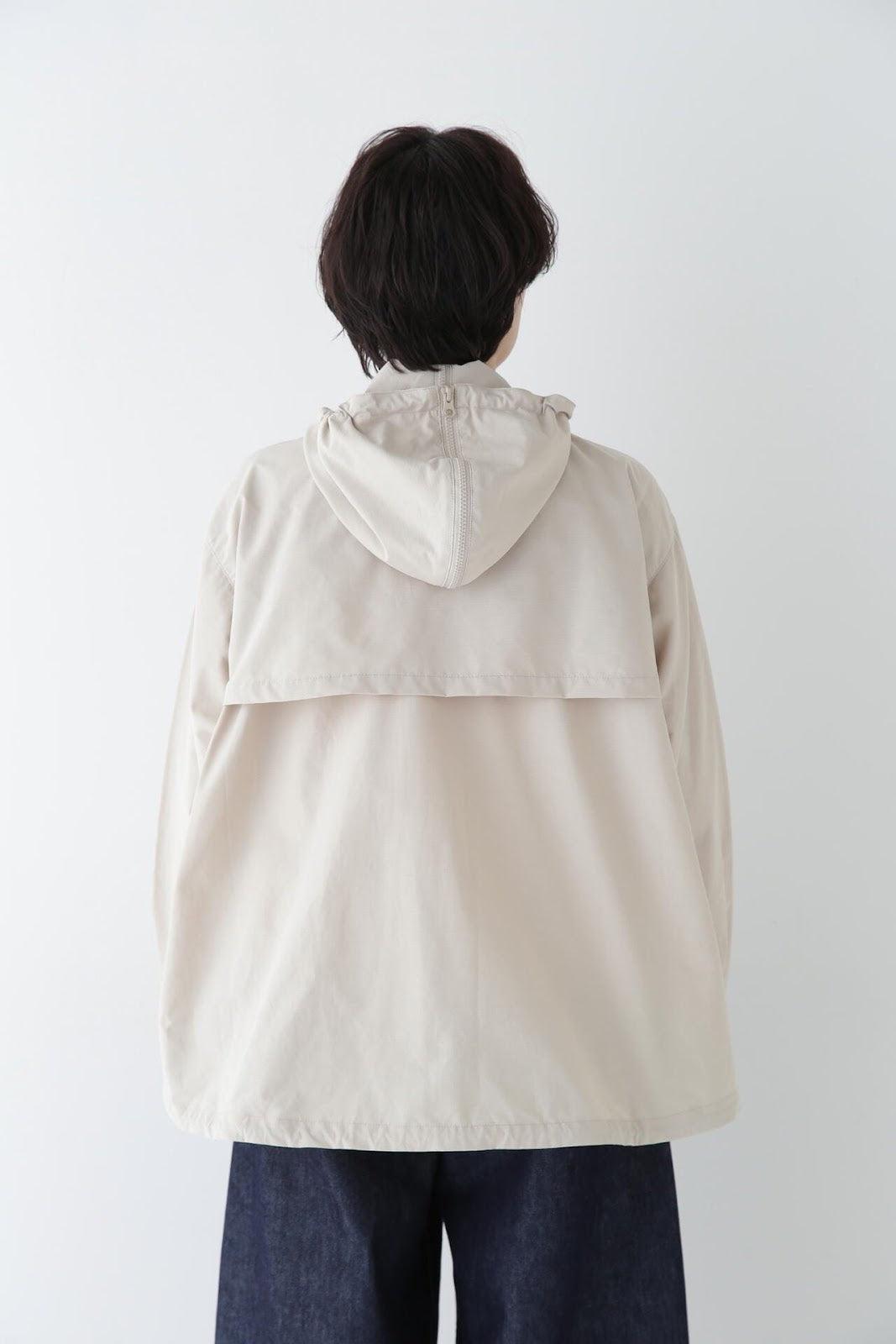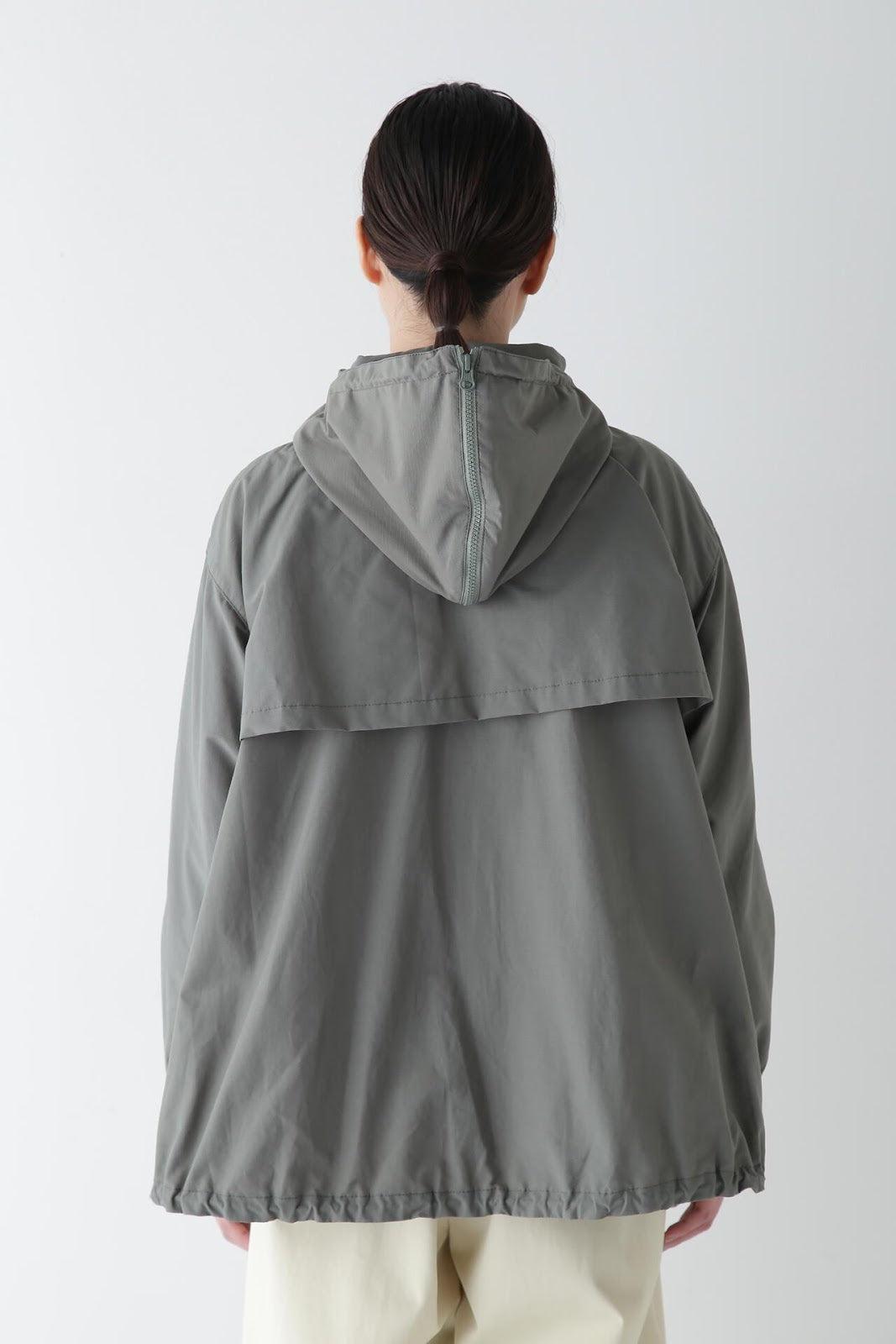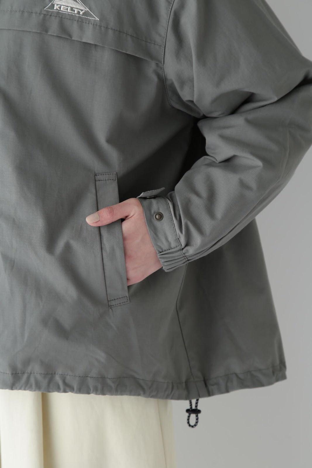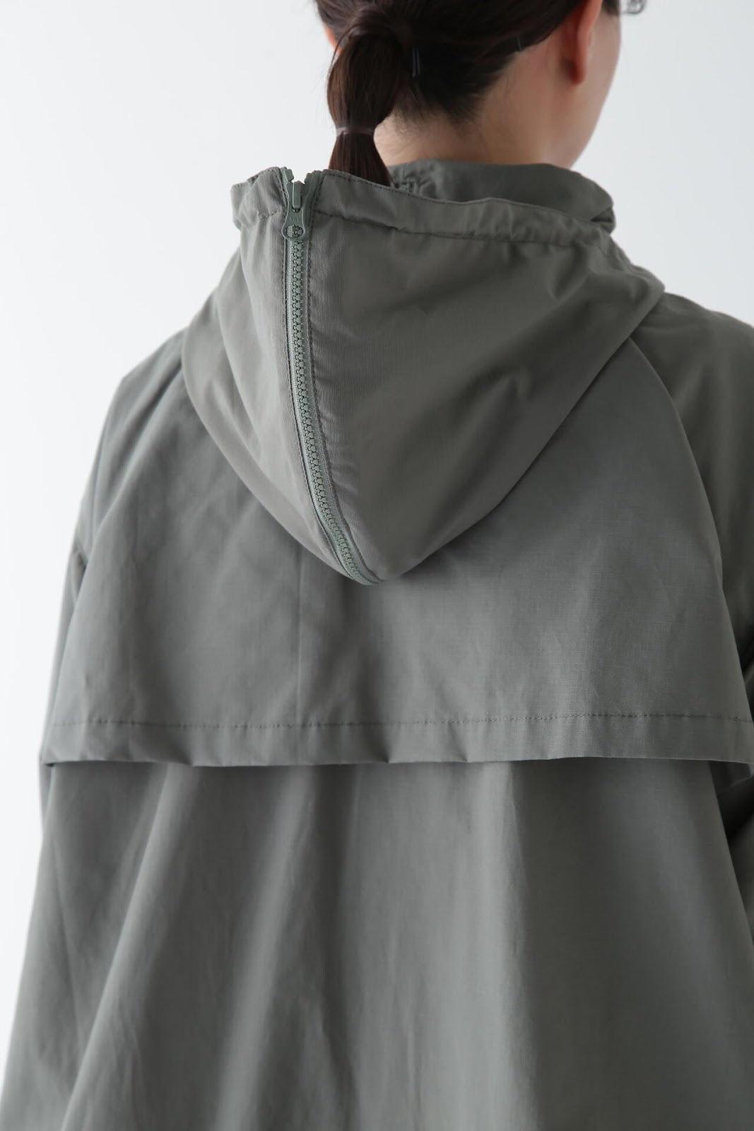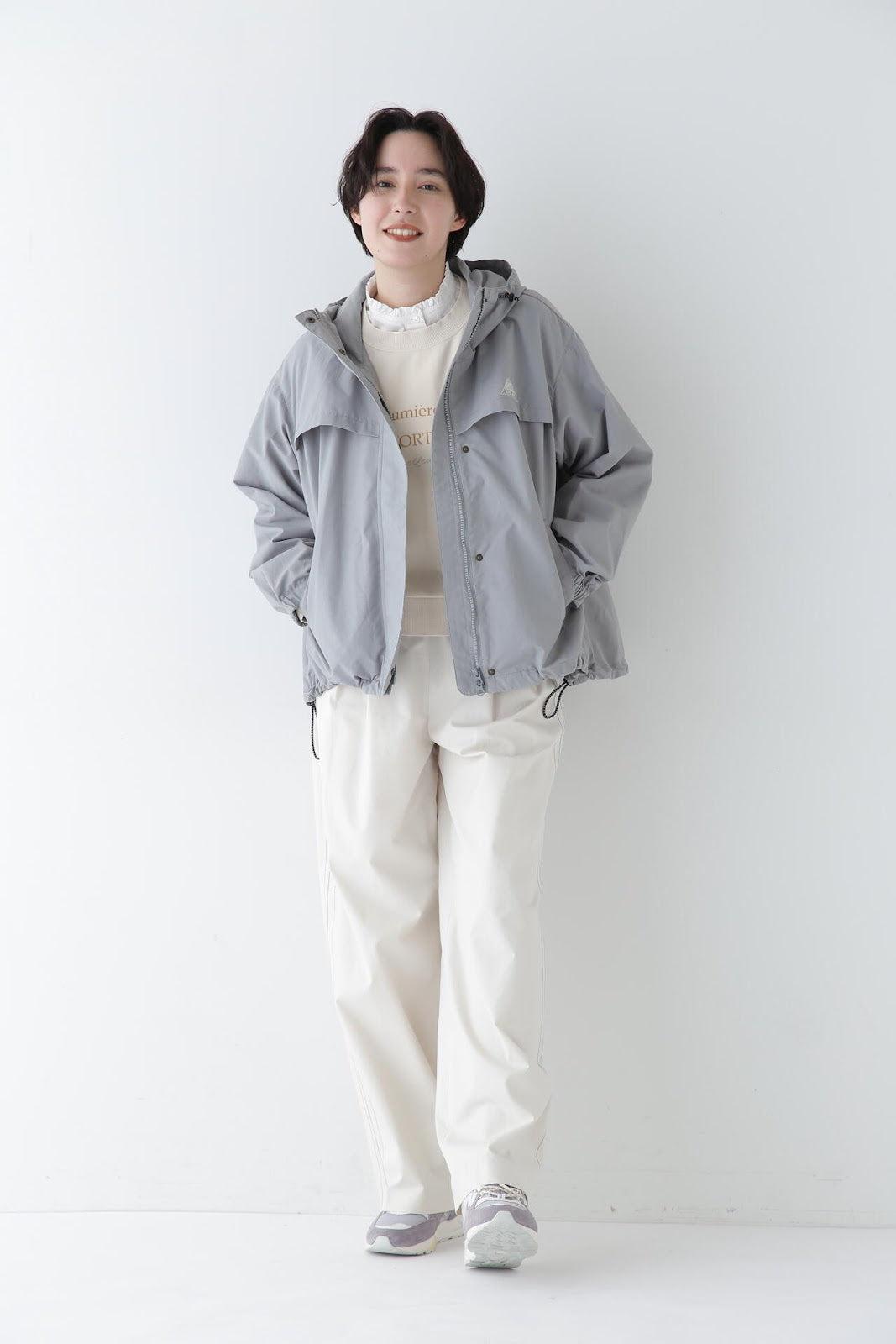 與 "KELTY×human woman "合作的特訂連帽上衣 [設計特點] 這是與 "KELTY "合作的連帽上衣。KELTY流行的Zapata夾克的兜帽中間改為可拉開拉鍊的設計。後軛和袖口的平衡也做了與品牌相匹配的改動,例如採用了隱藏式圓點規格。背部的體積在瀏覽時顯得十分可愛。面料採用具有防水功能的防撕裂面料。推薦搭配] 可根據心情拉動下襬抽繩,享受廓形的變化。無論是戶外場景還是日常休閒風格,它都能很好地勝任。