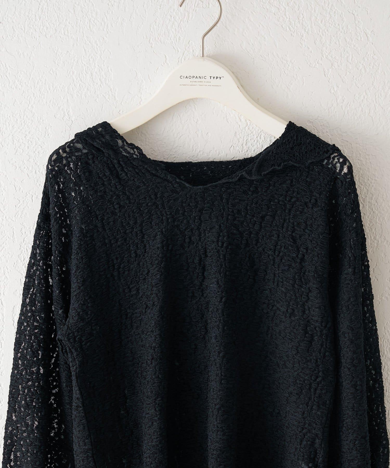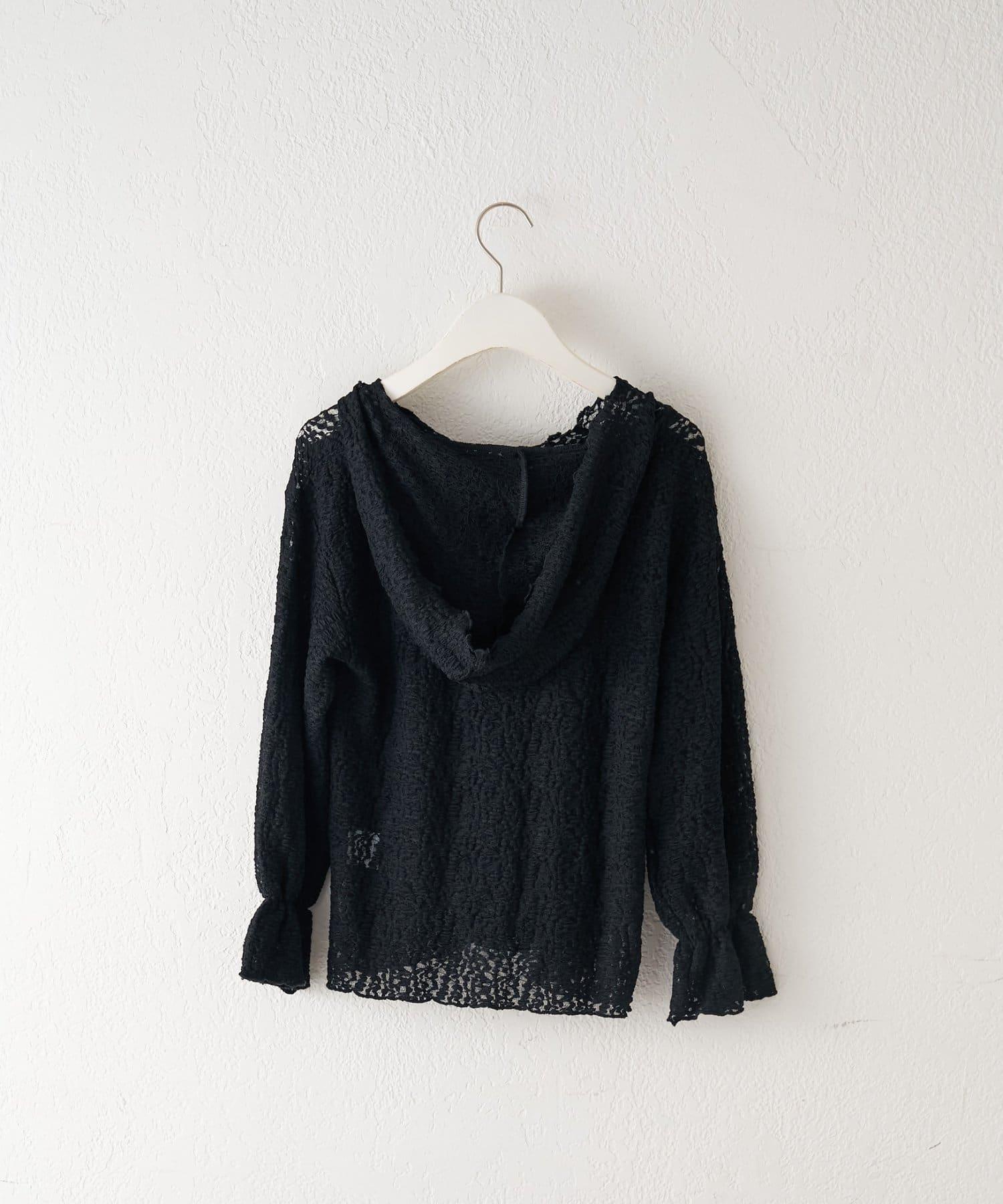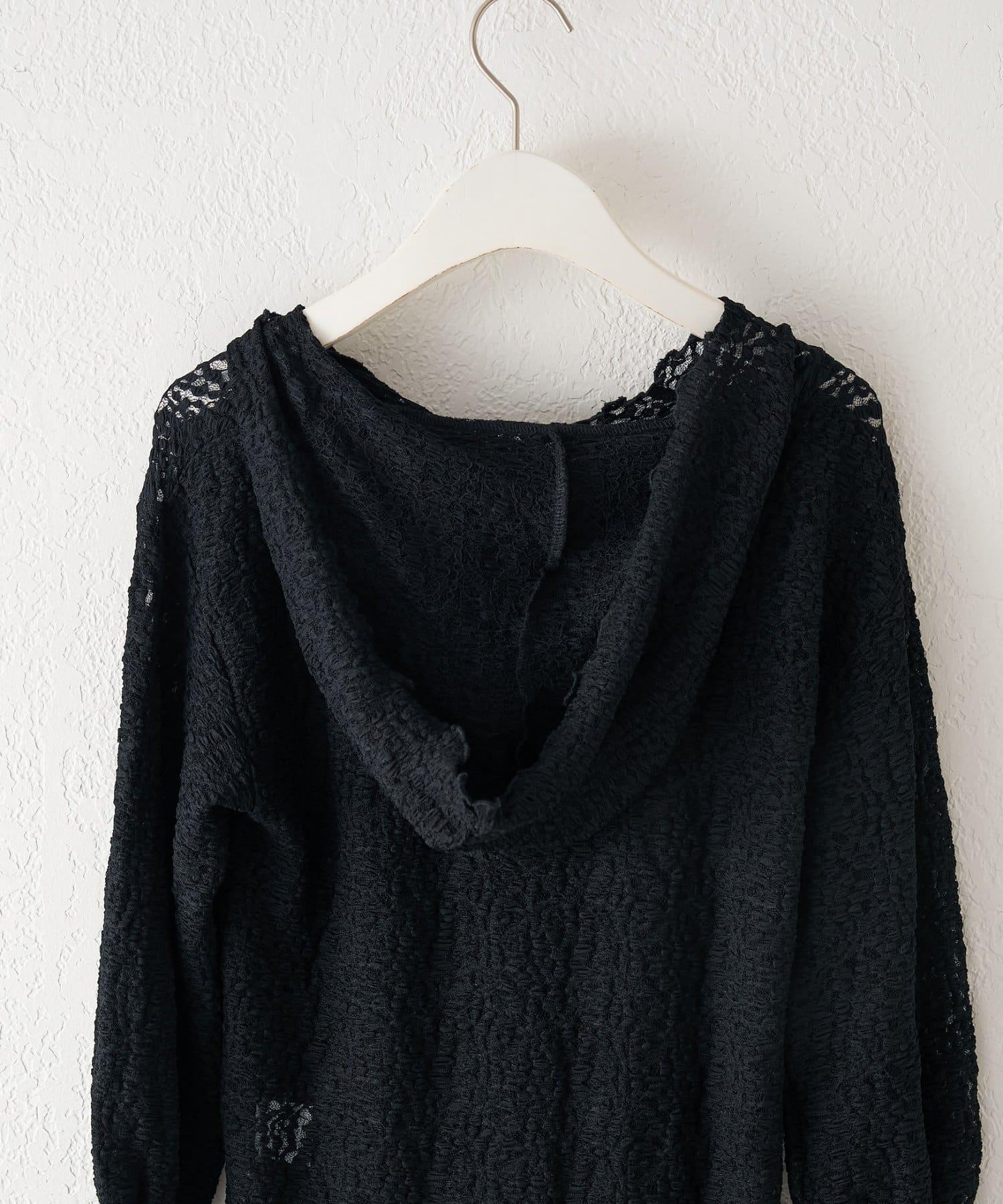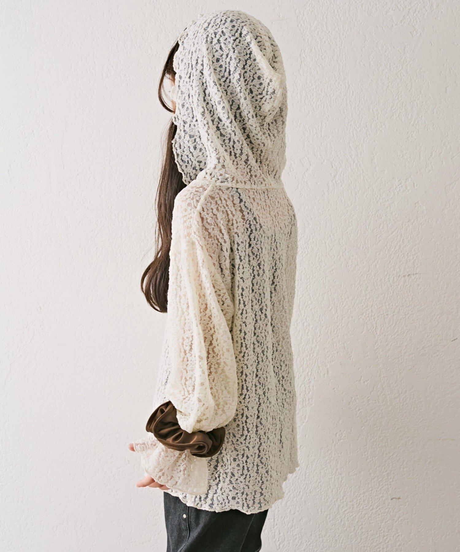 蕾絲面料讓這款 "彈力連帽衫 "看起來更時尚。