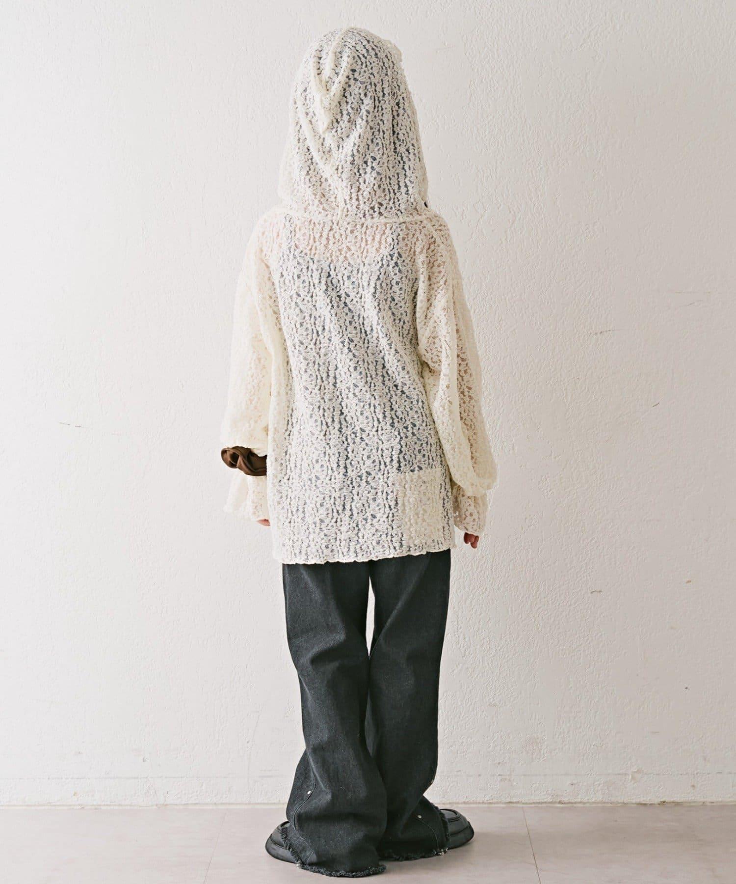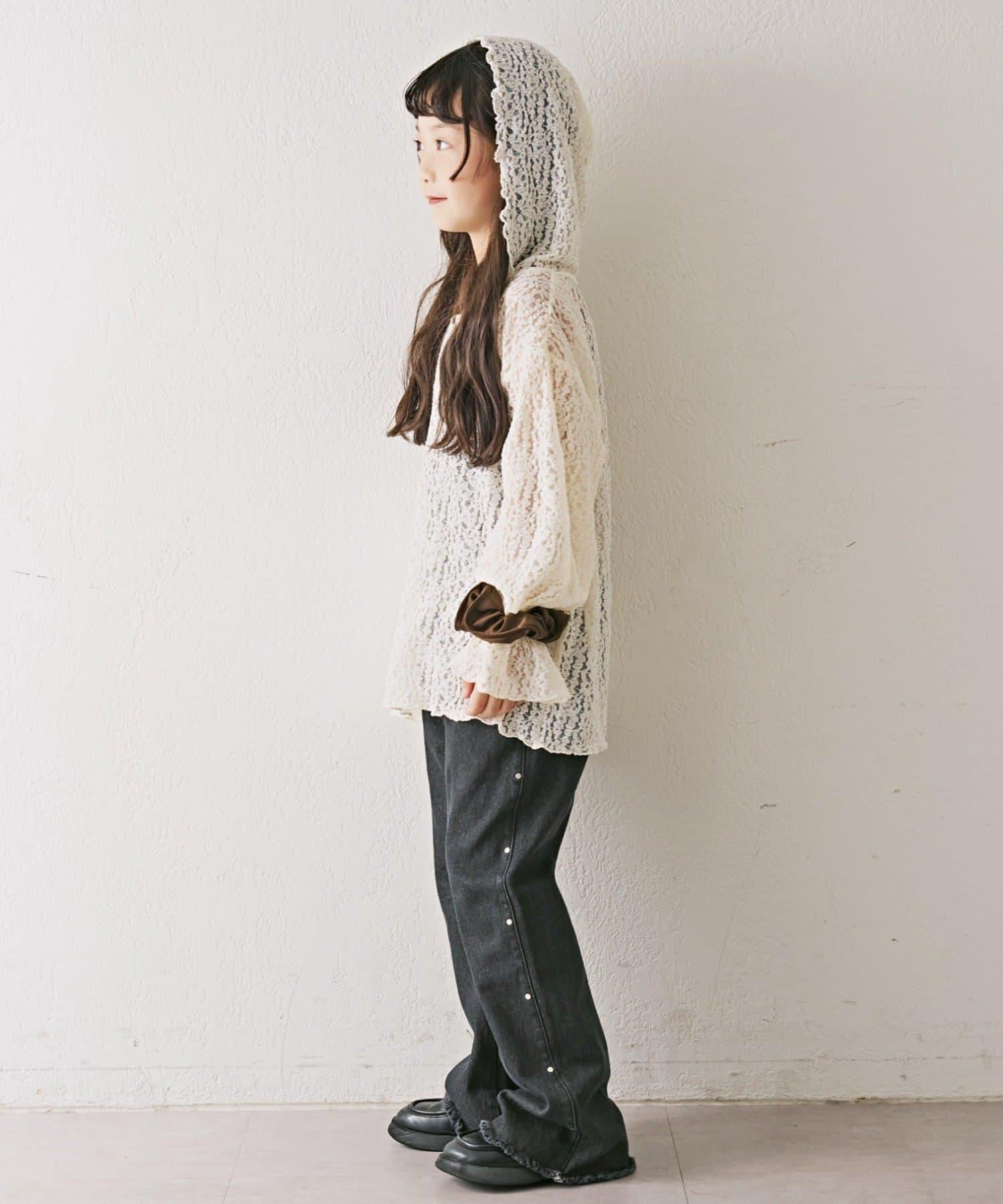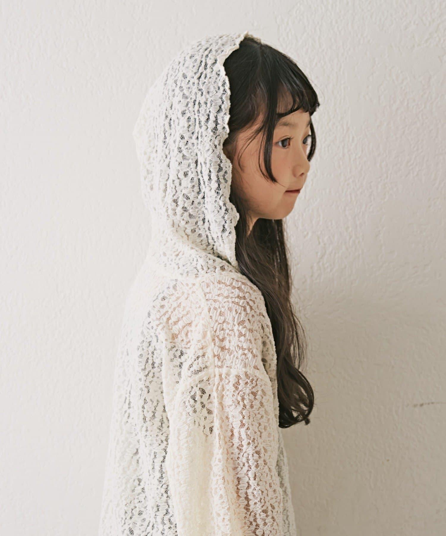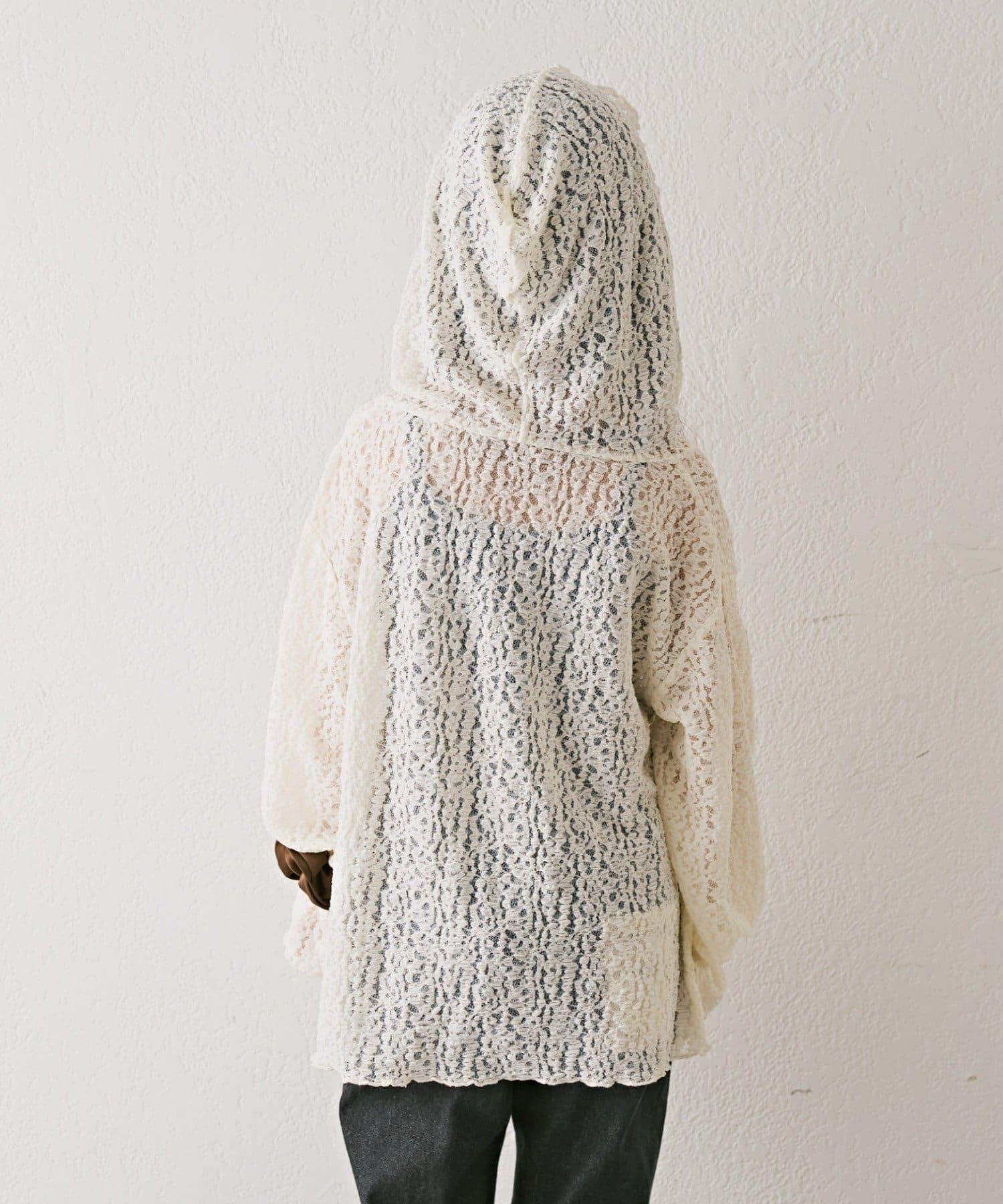 蕾絲面料讓這款 "彈力連帽衫 "看起來更時尚。