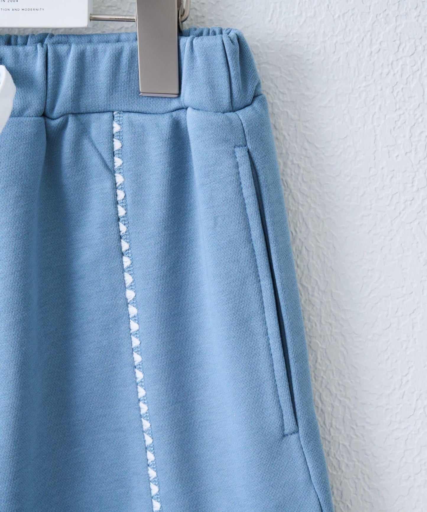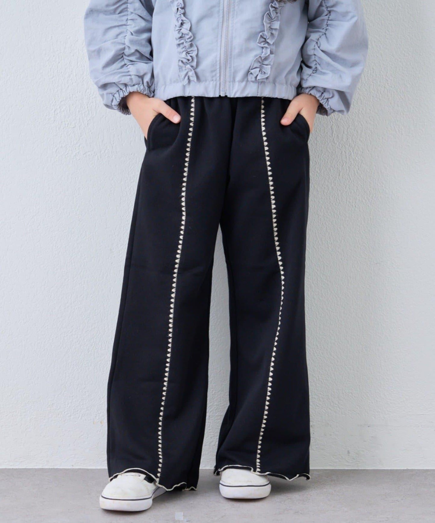 【KIDS】拼色蛤殼縫線微喇叭褲