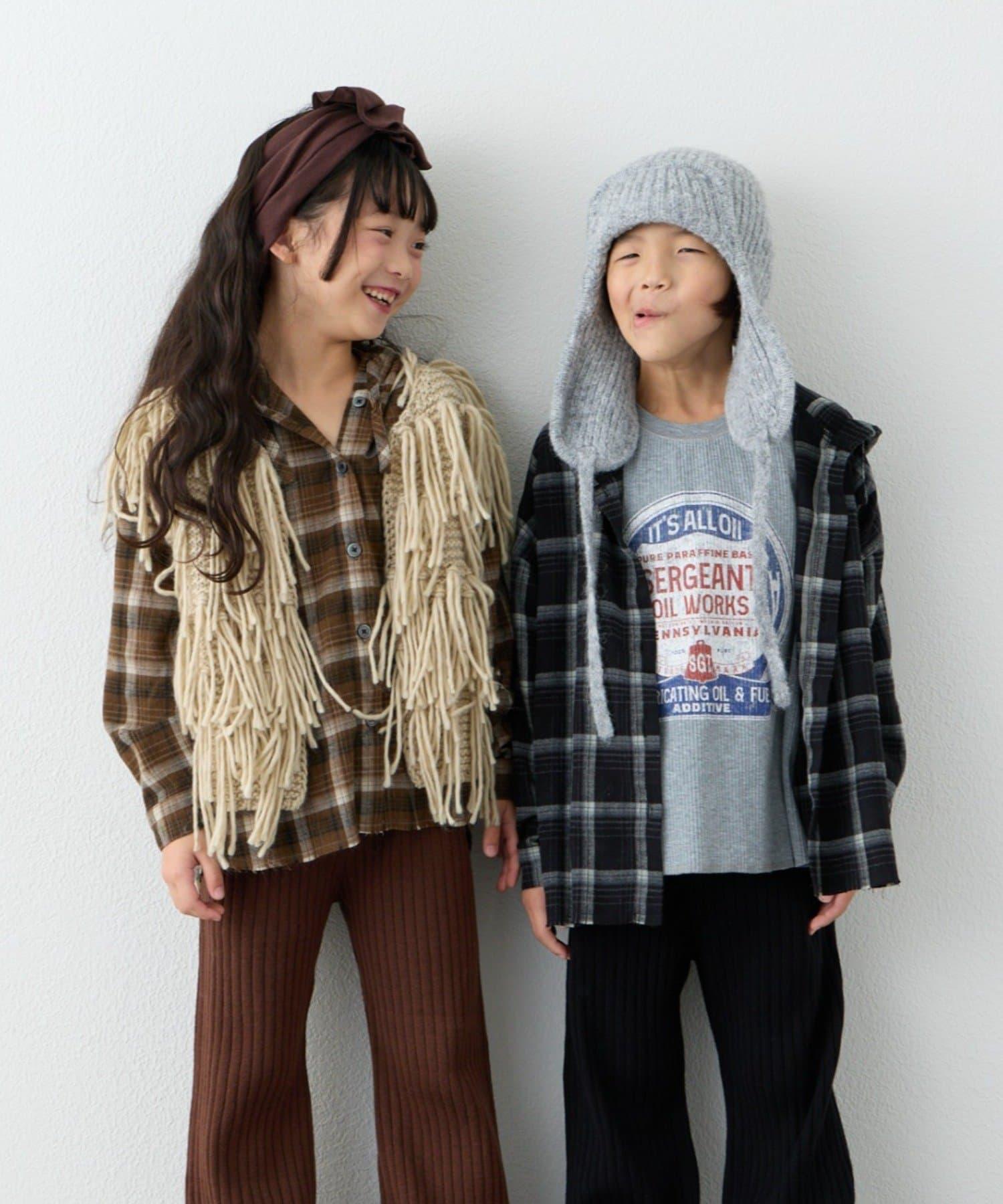 預約商品【KIDS】【有青少年尺碼】毛邊微絨格子連帽襯衫