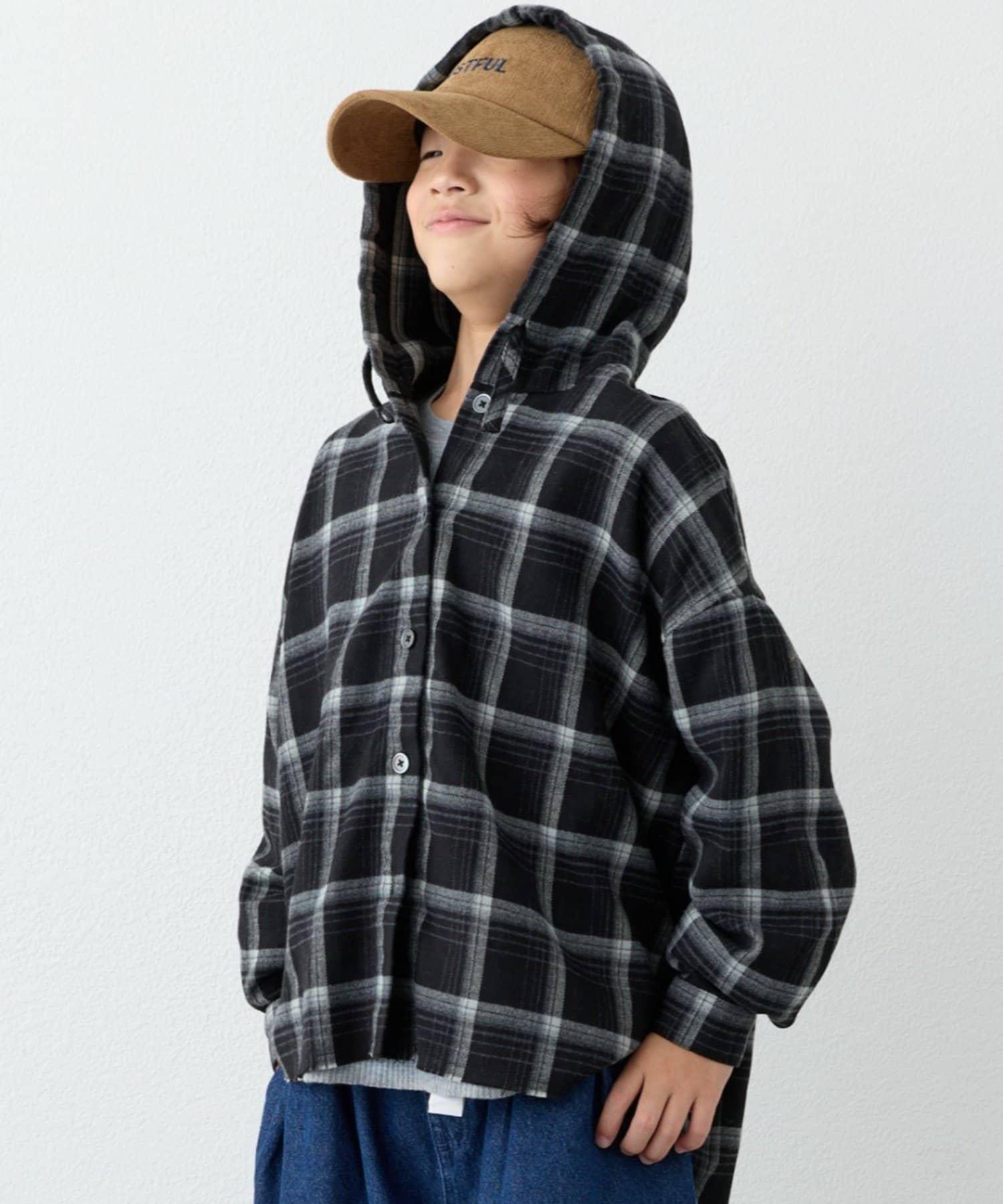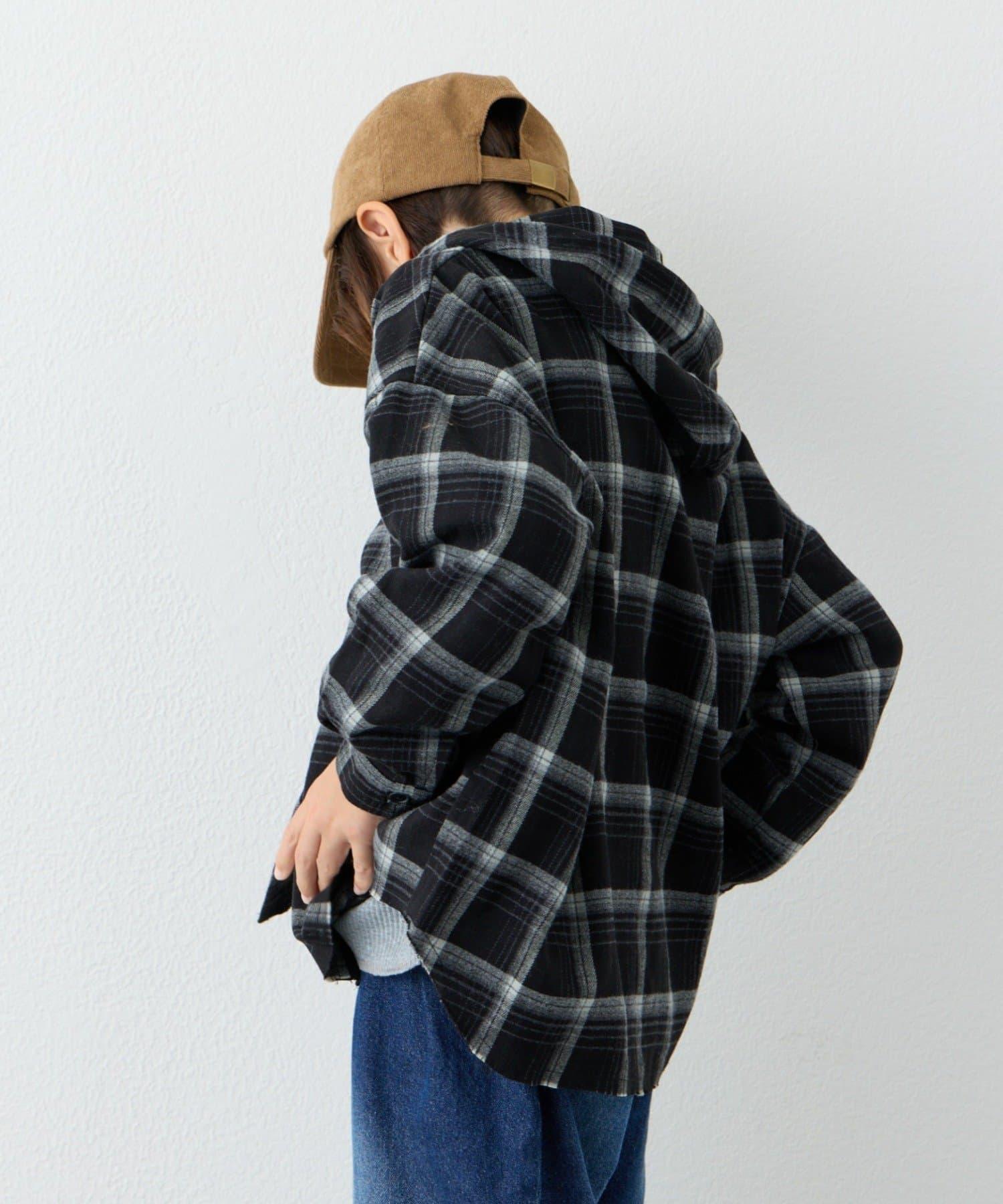 【KIDS】【有青少年尺碼】毛邊微絨格子連帽襯衫