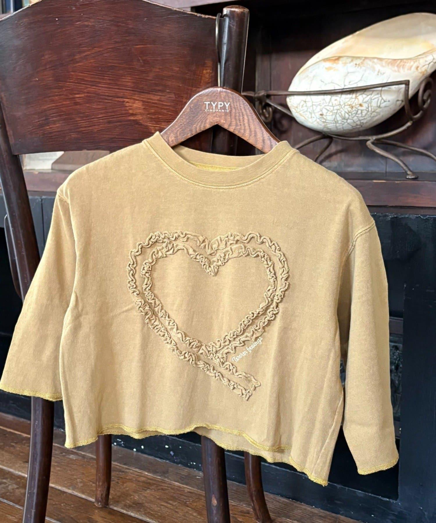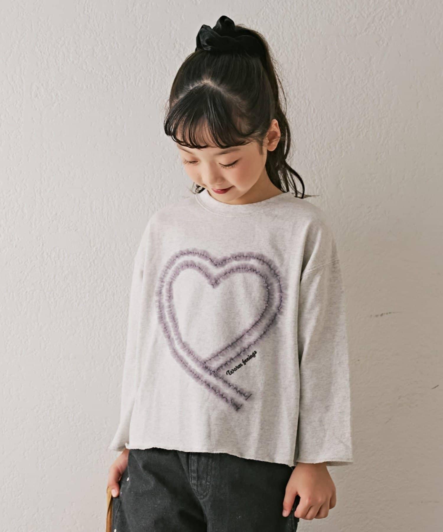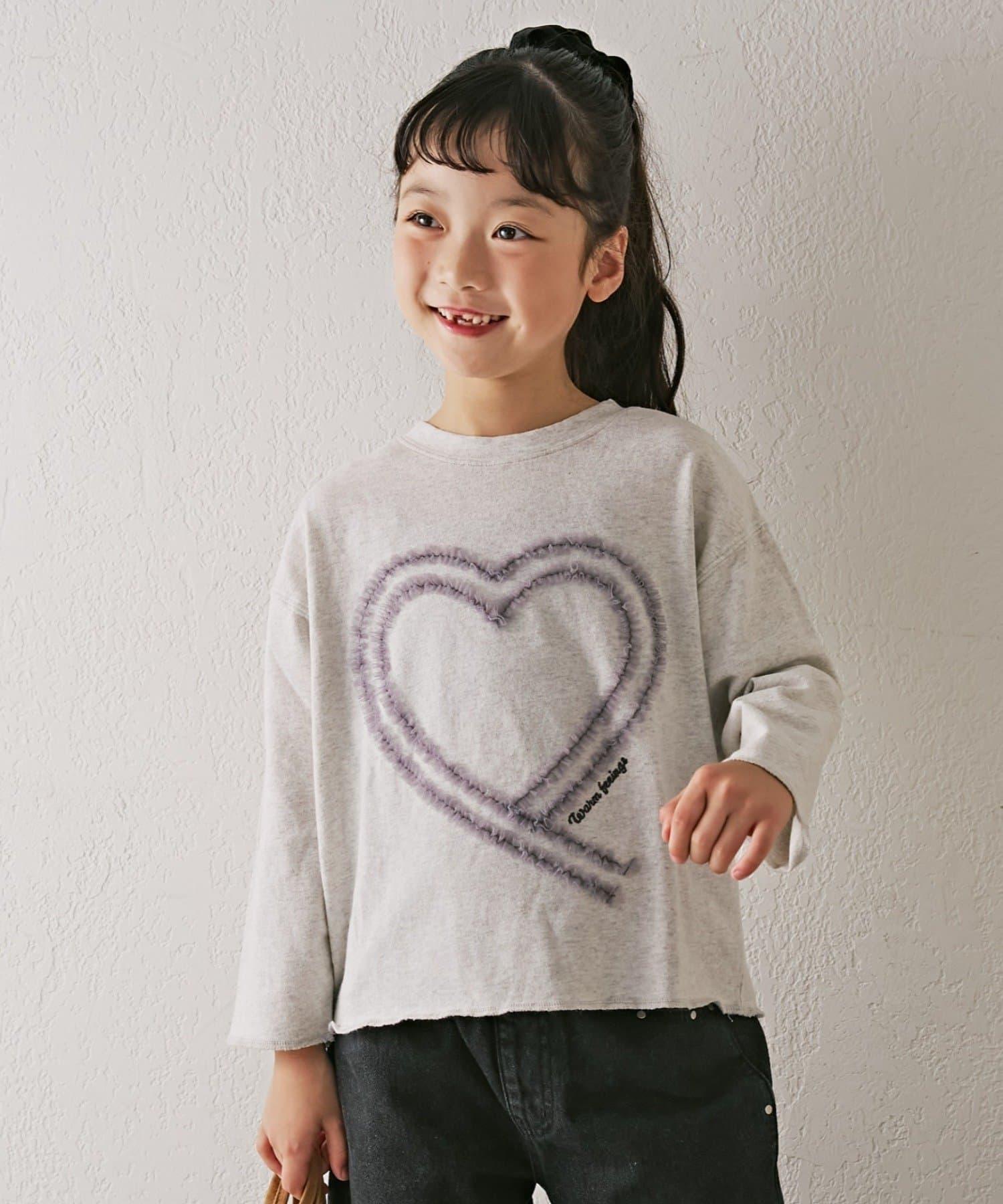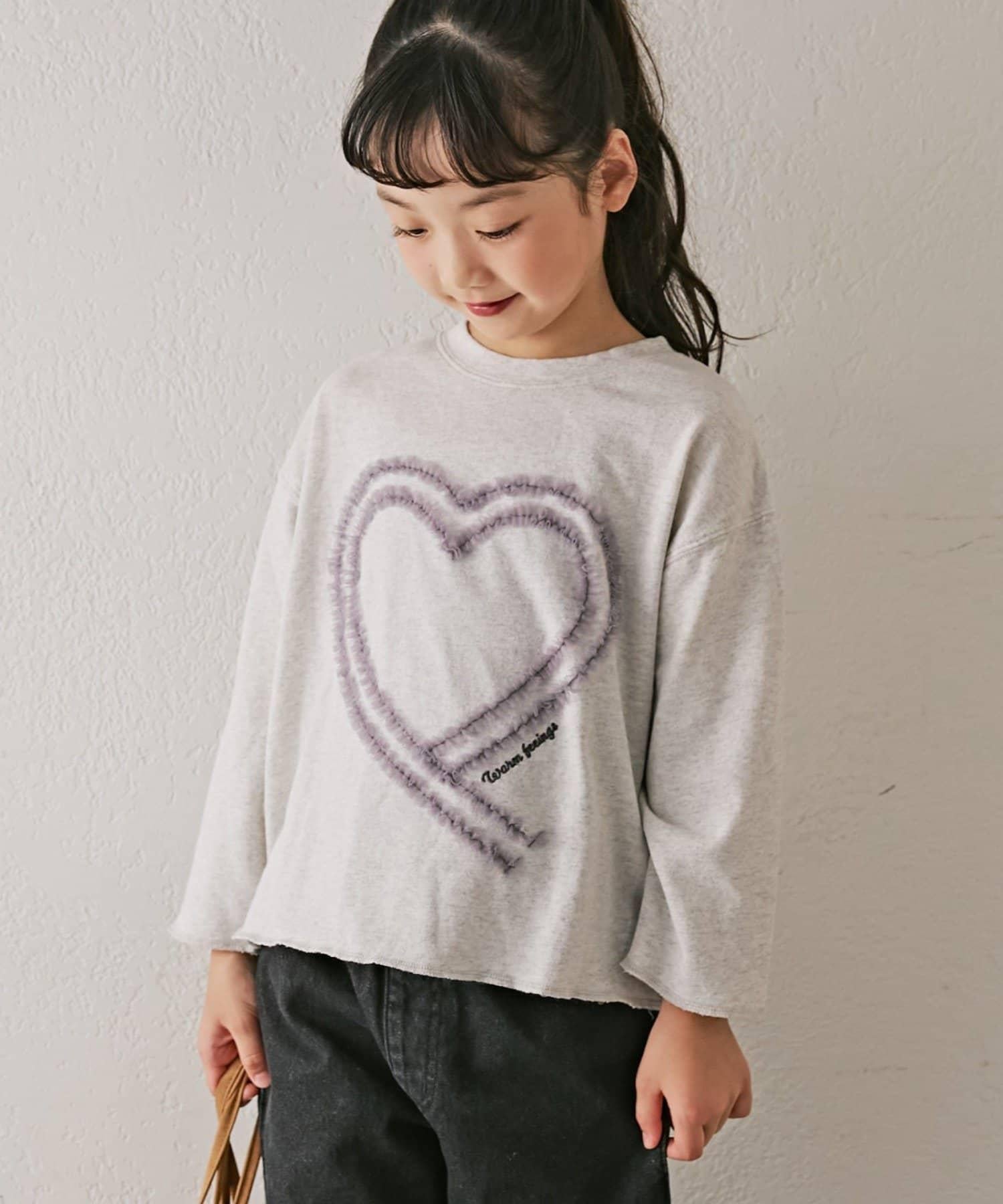 【KIDS】水洗工藝愛心圖案長袖T恤