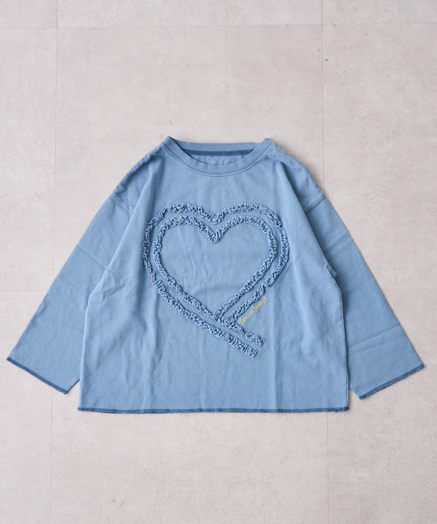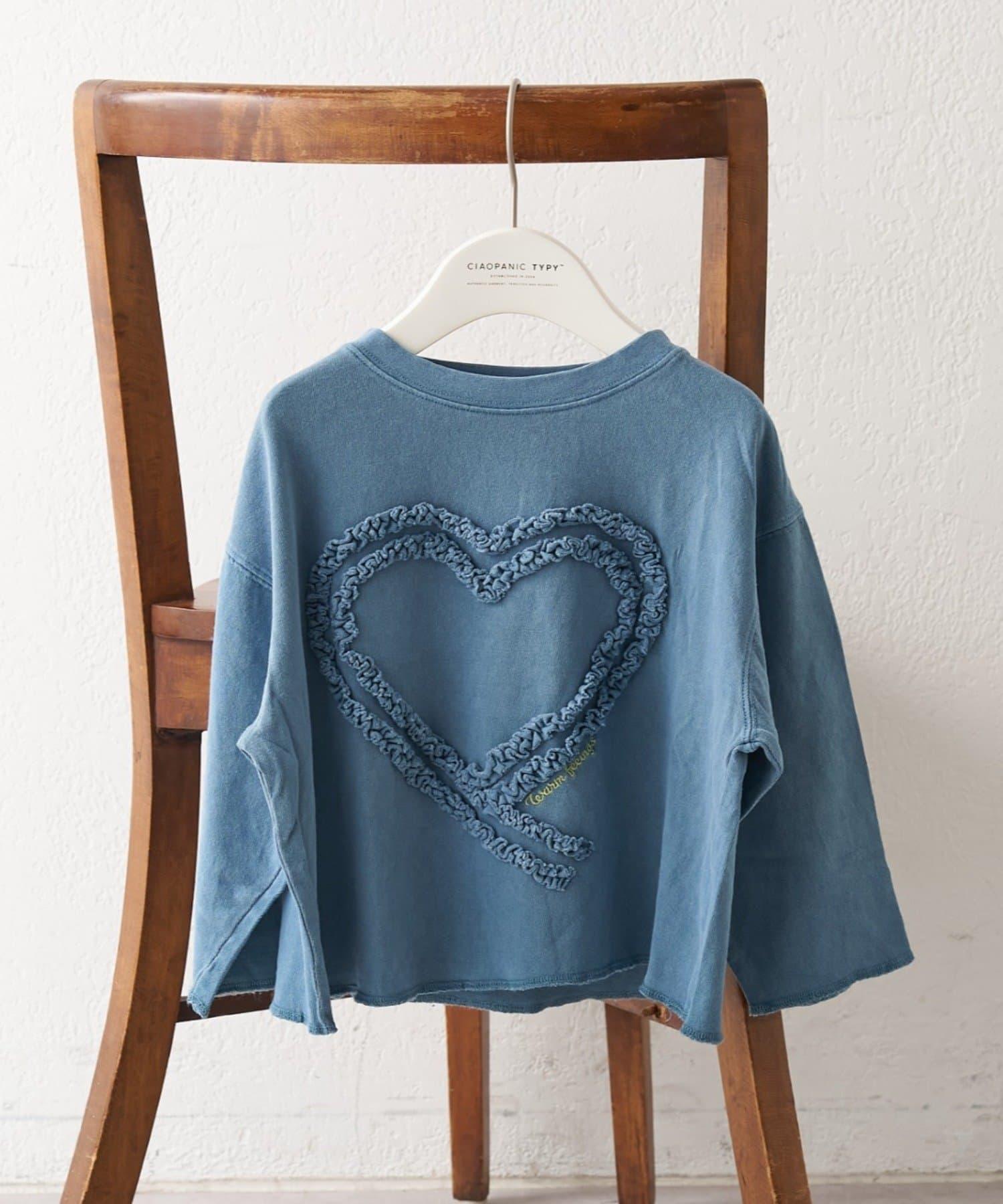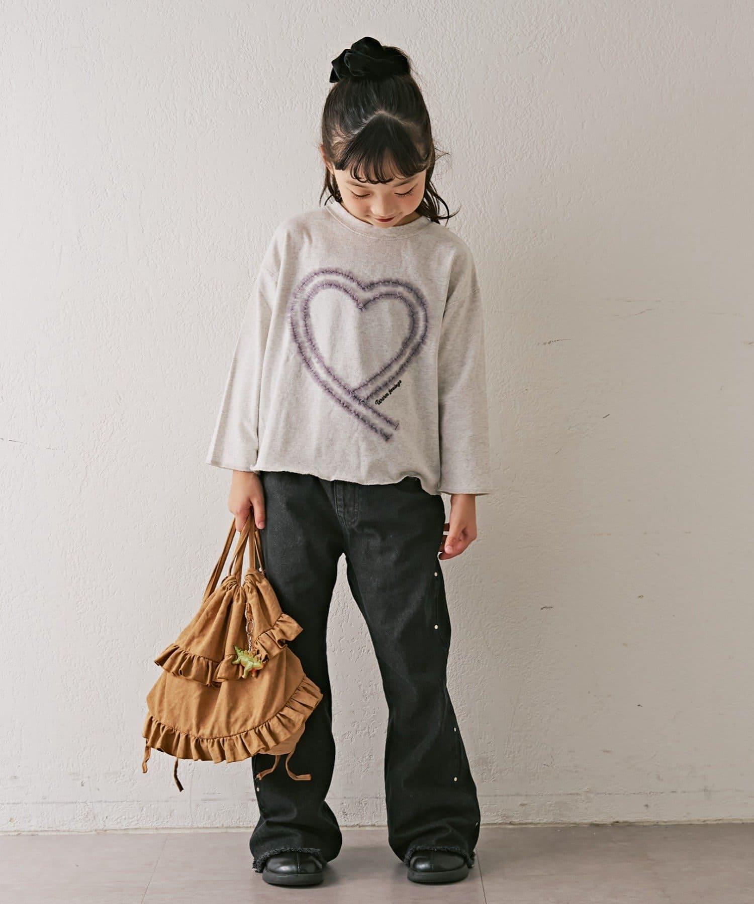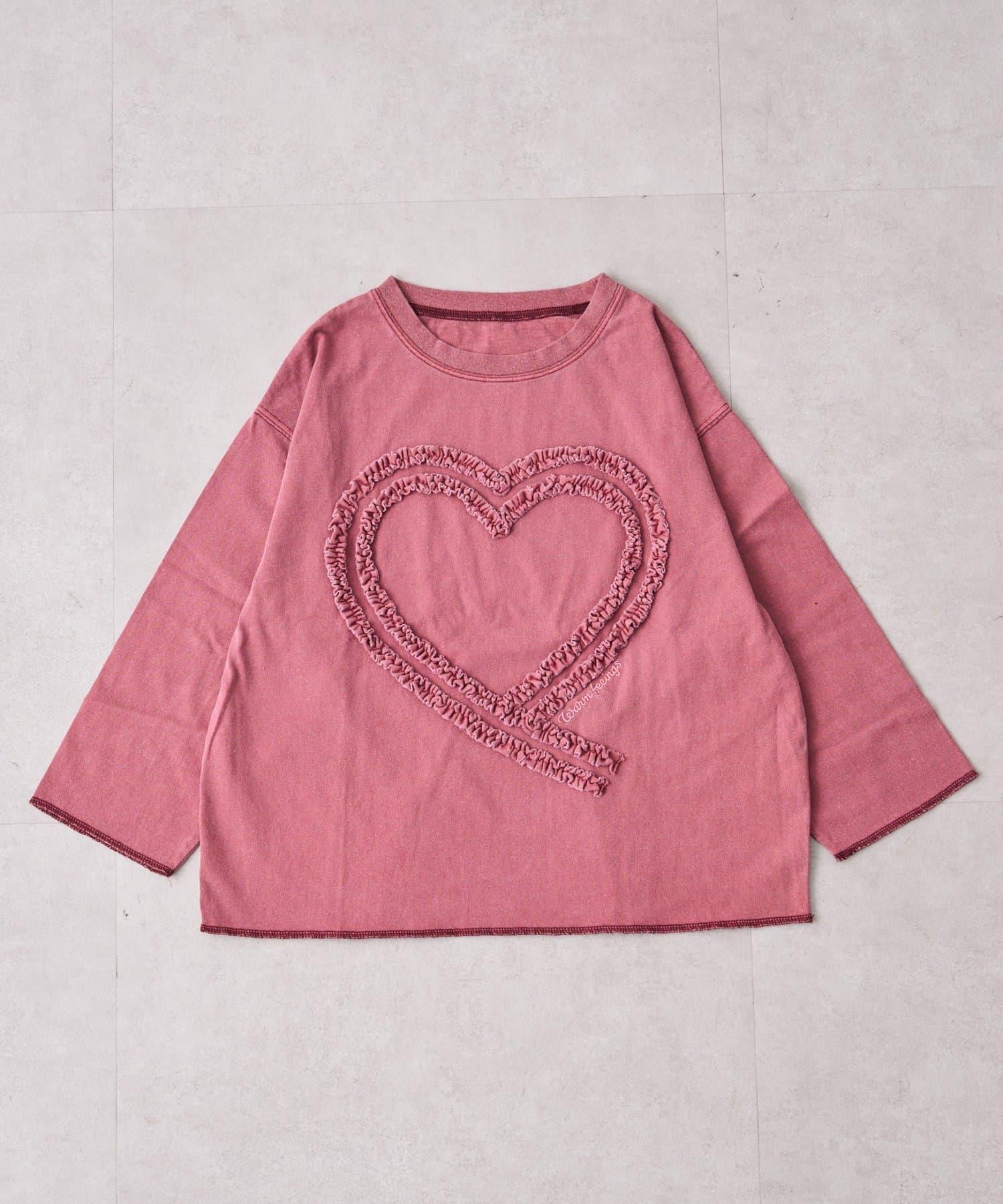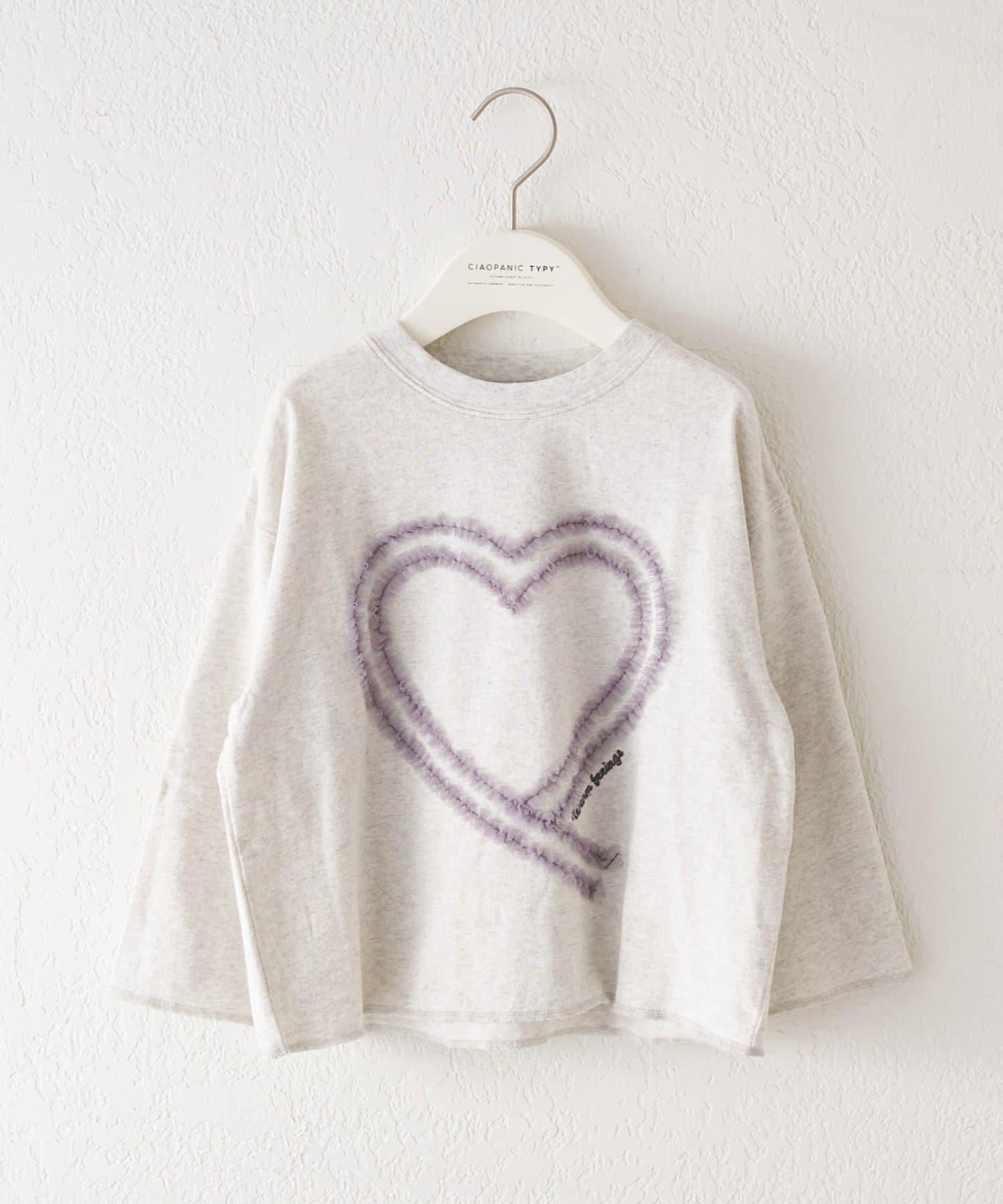 【KIDS】水洗工藝愛心圖案長袖T恤