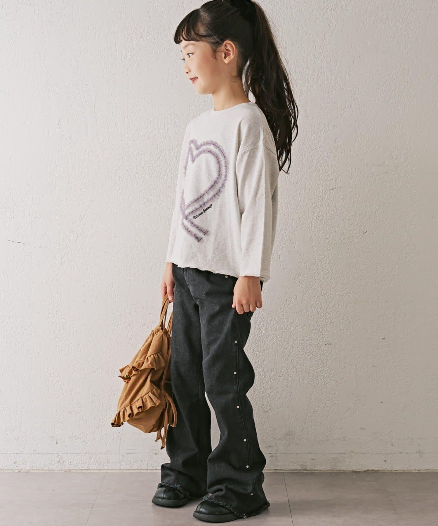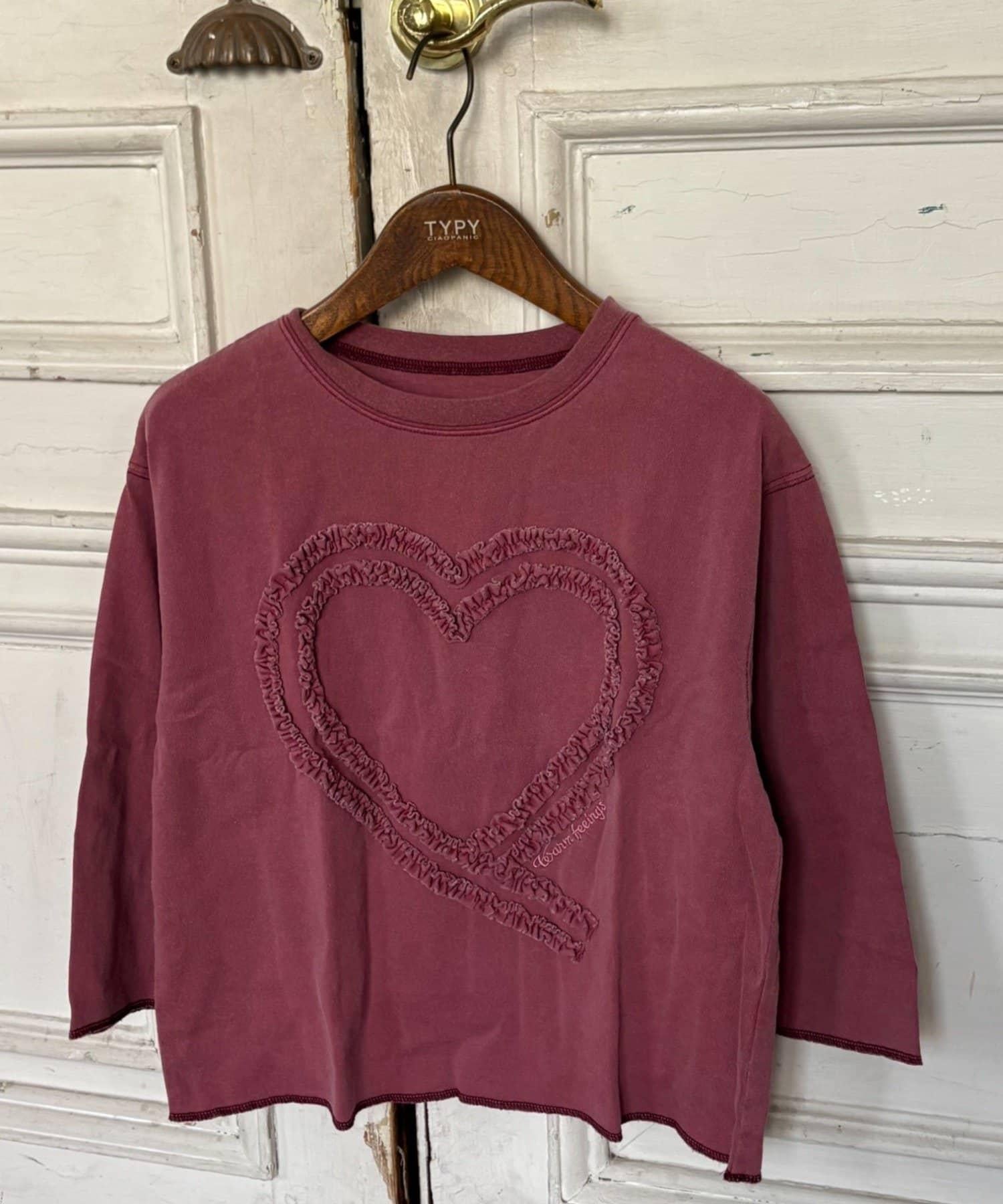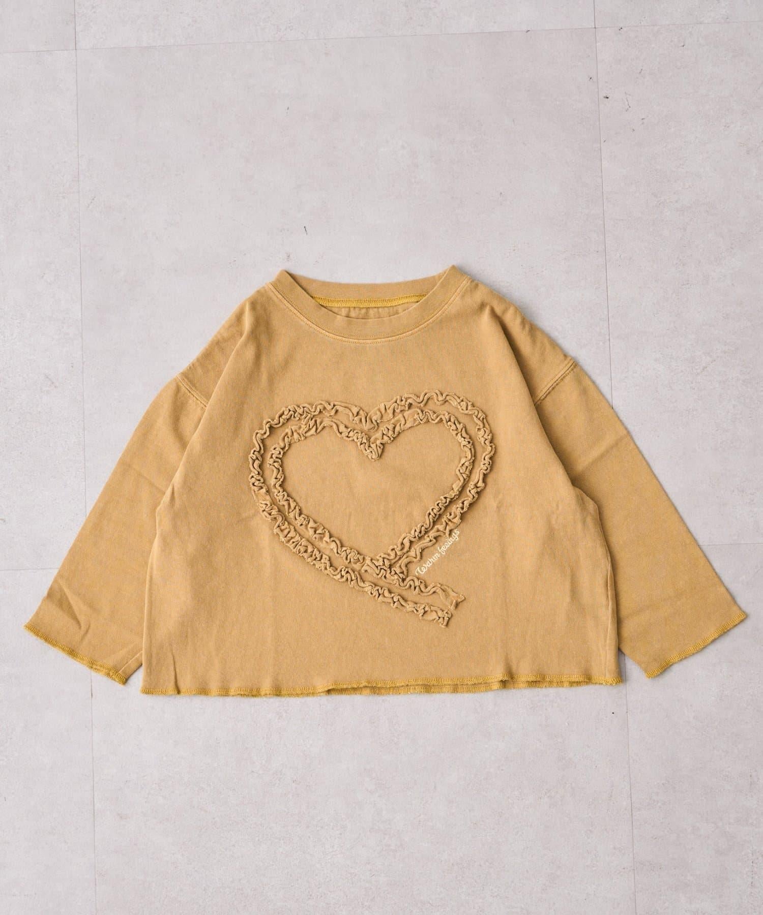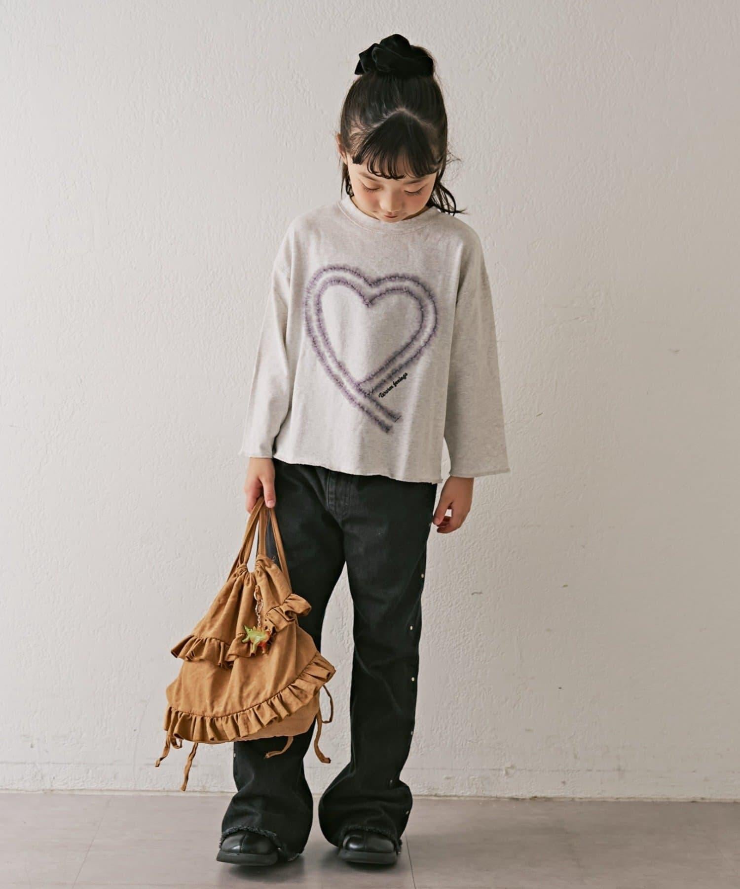 【KIDS】水洗工藝愛心圖案長袖T恤