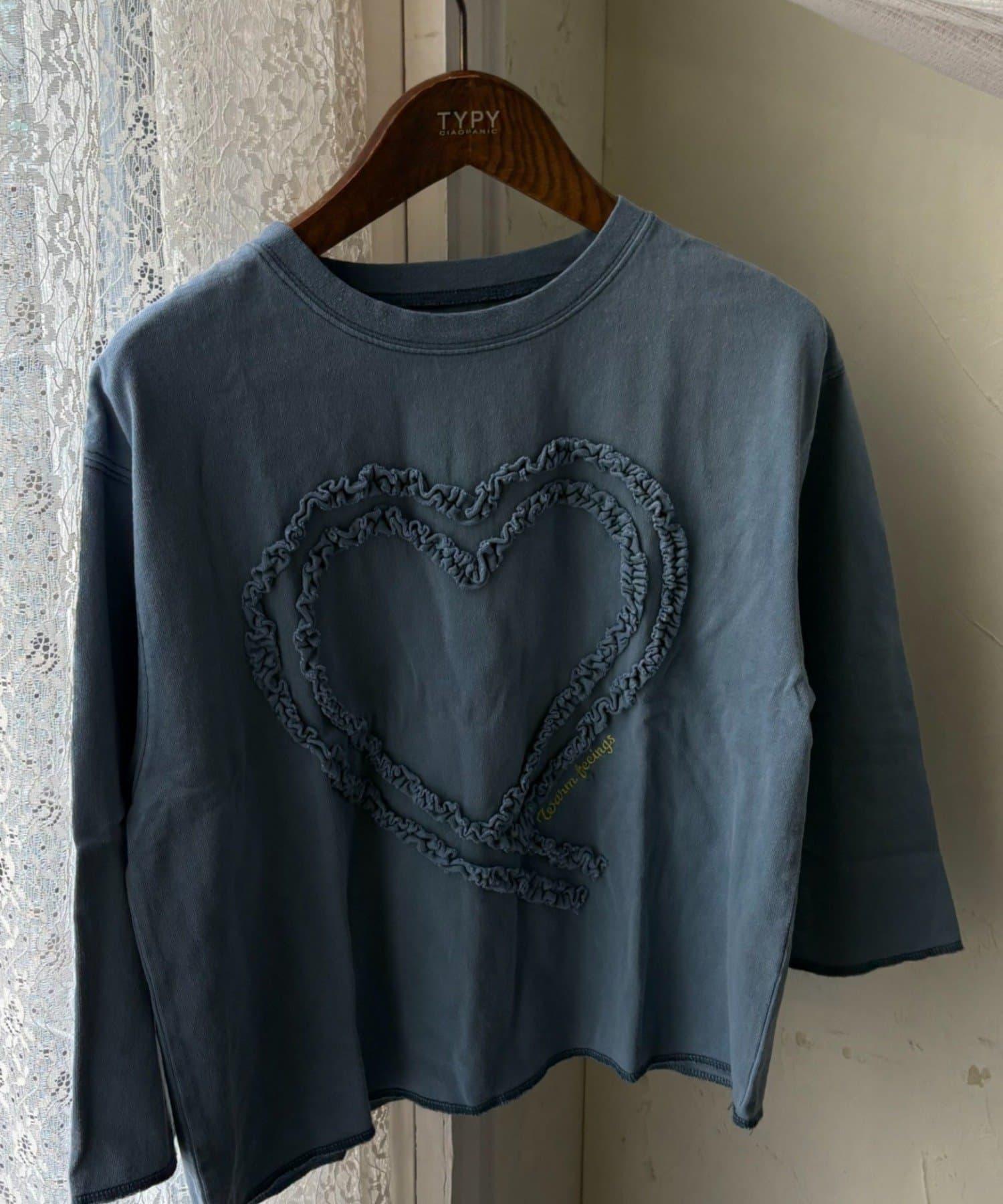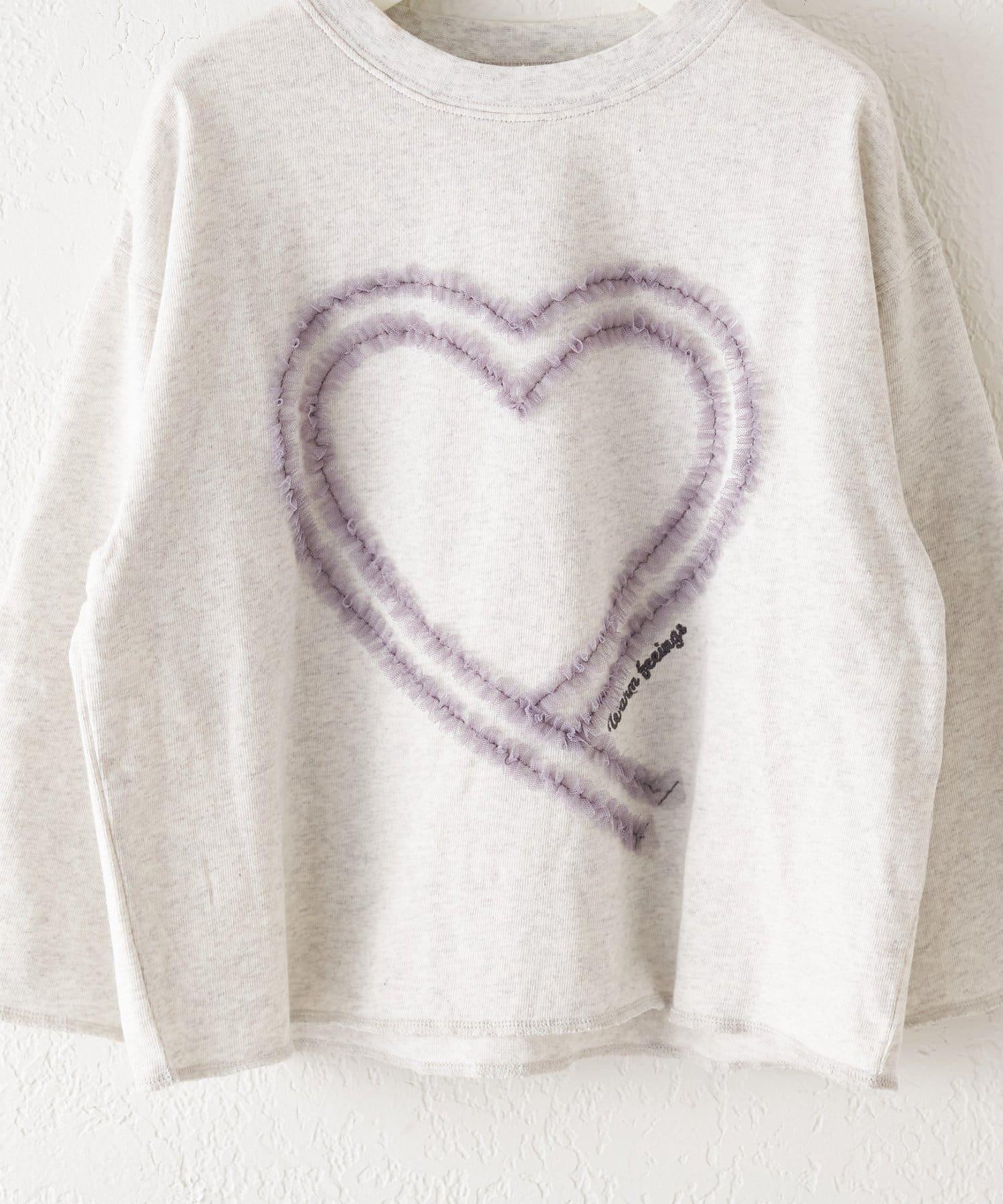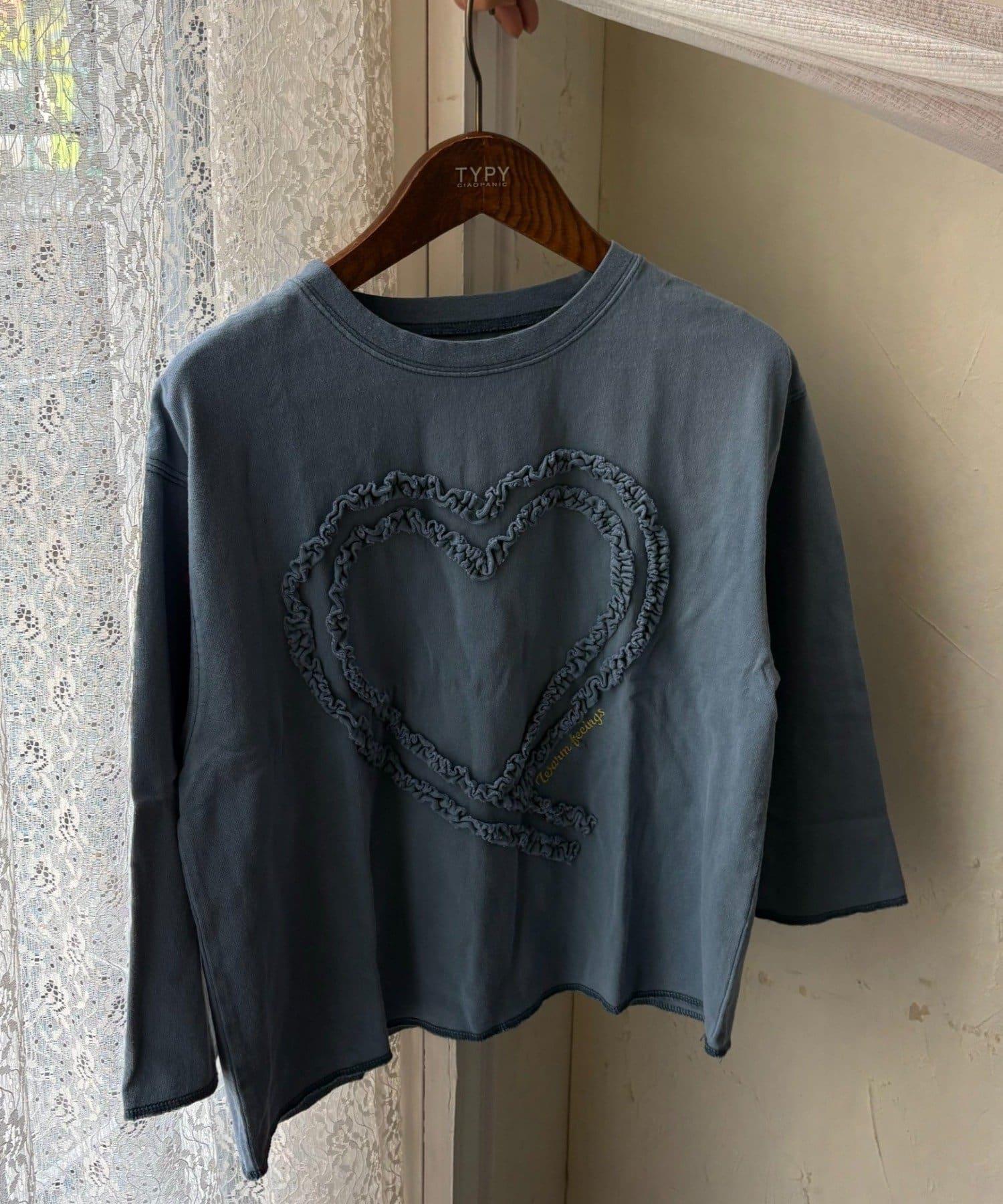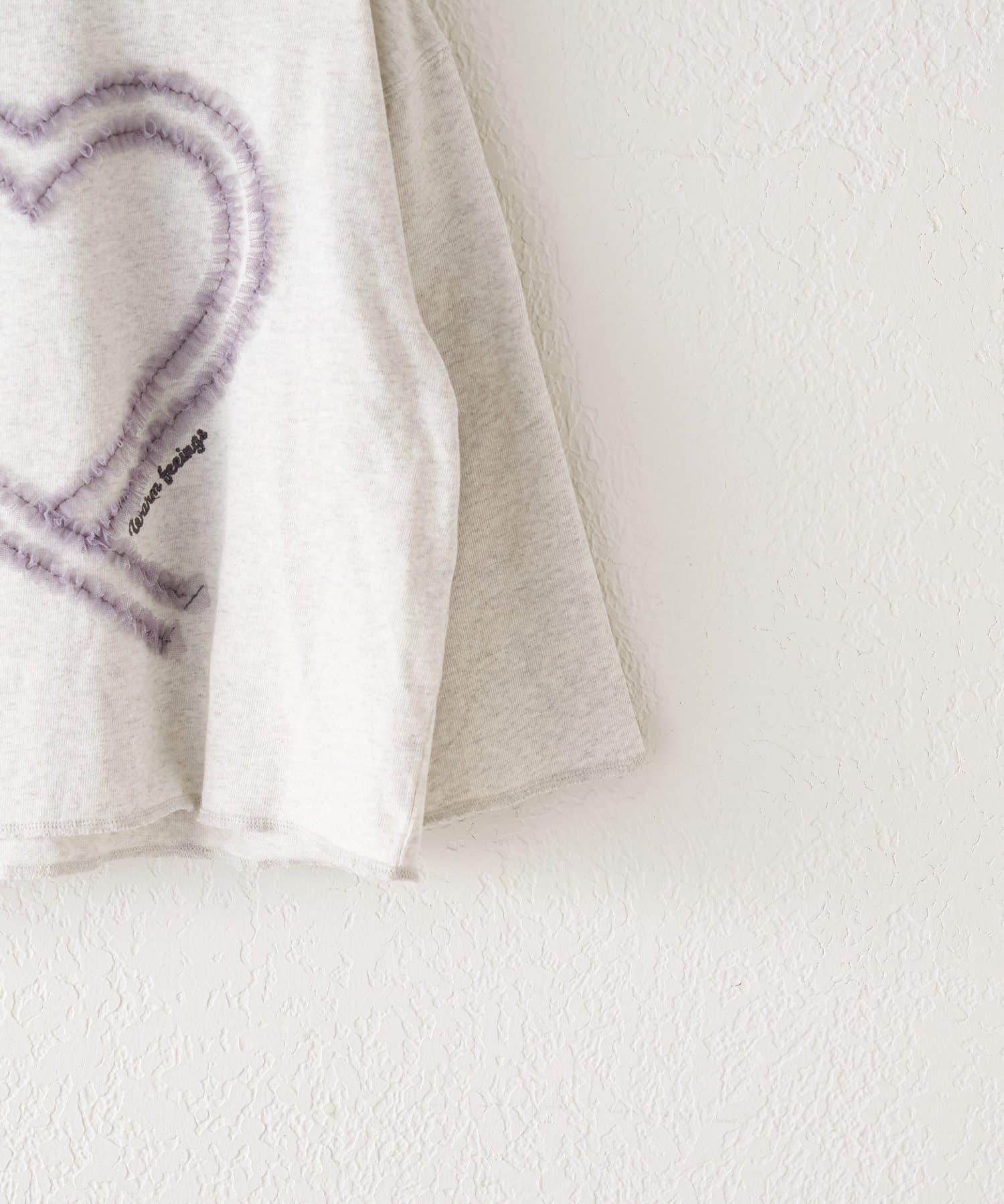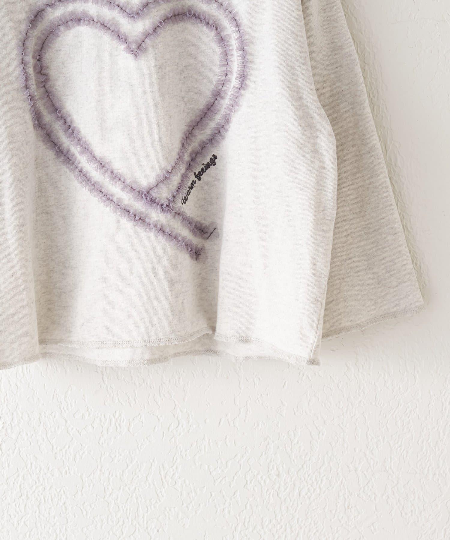 薄紗材質的心形圖案長款 T 恤,增添少女氣息。