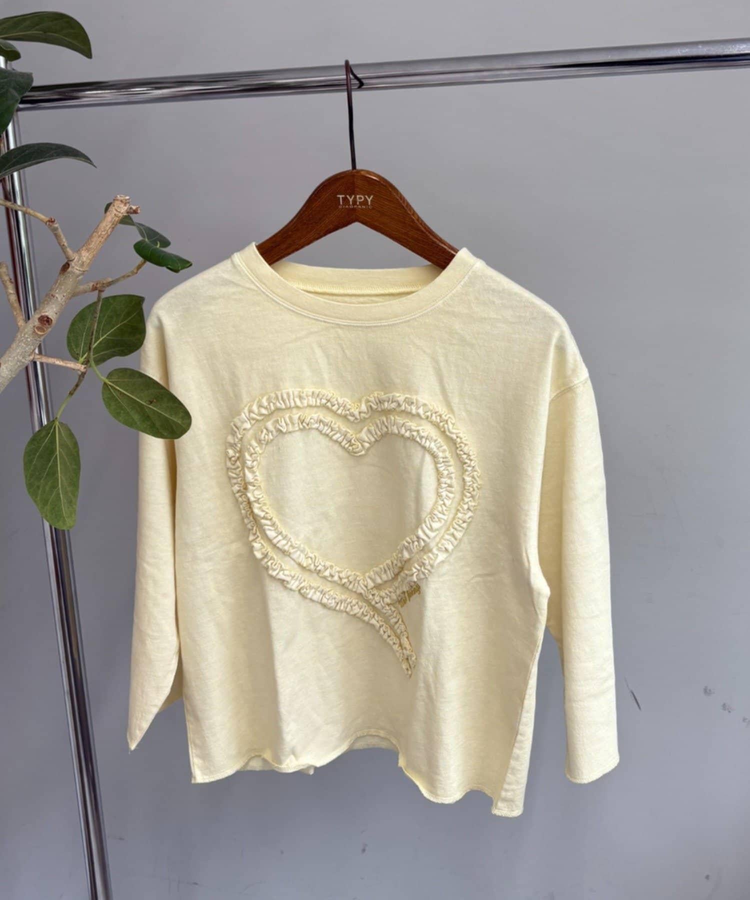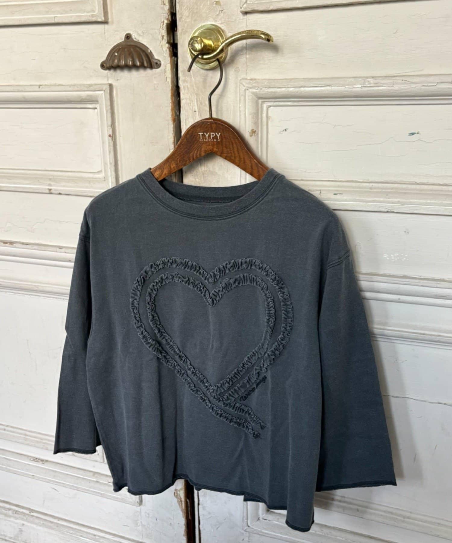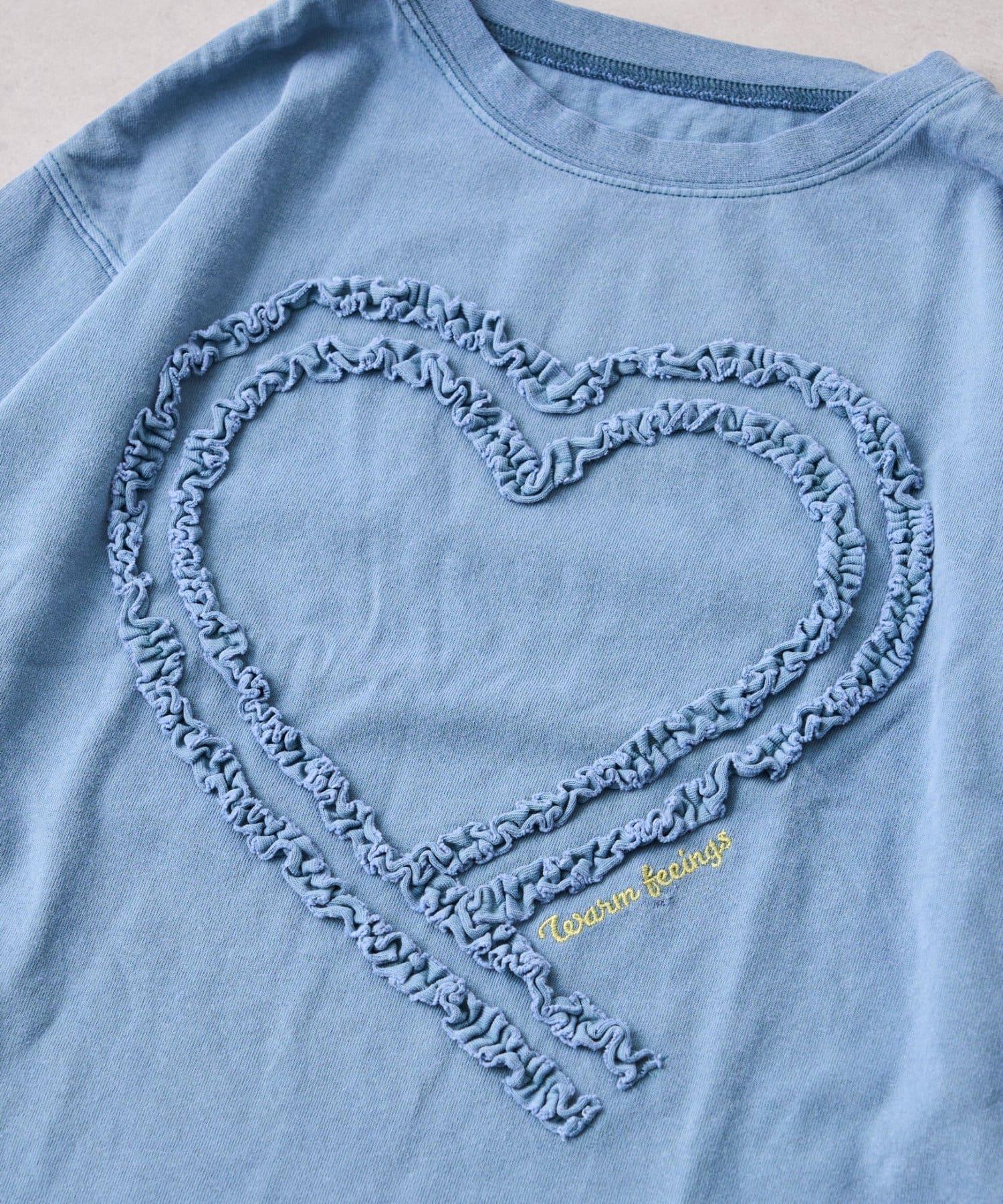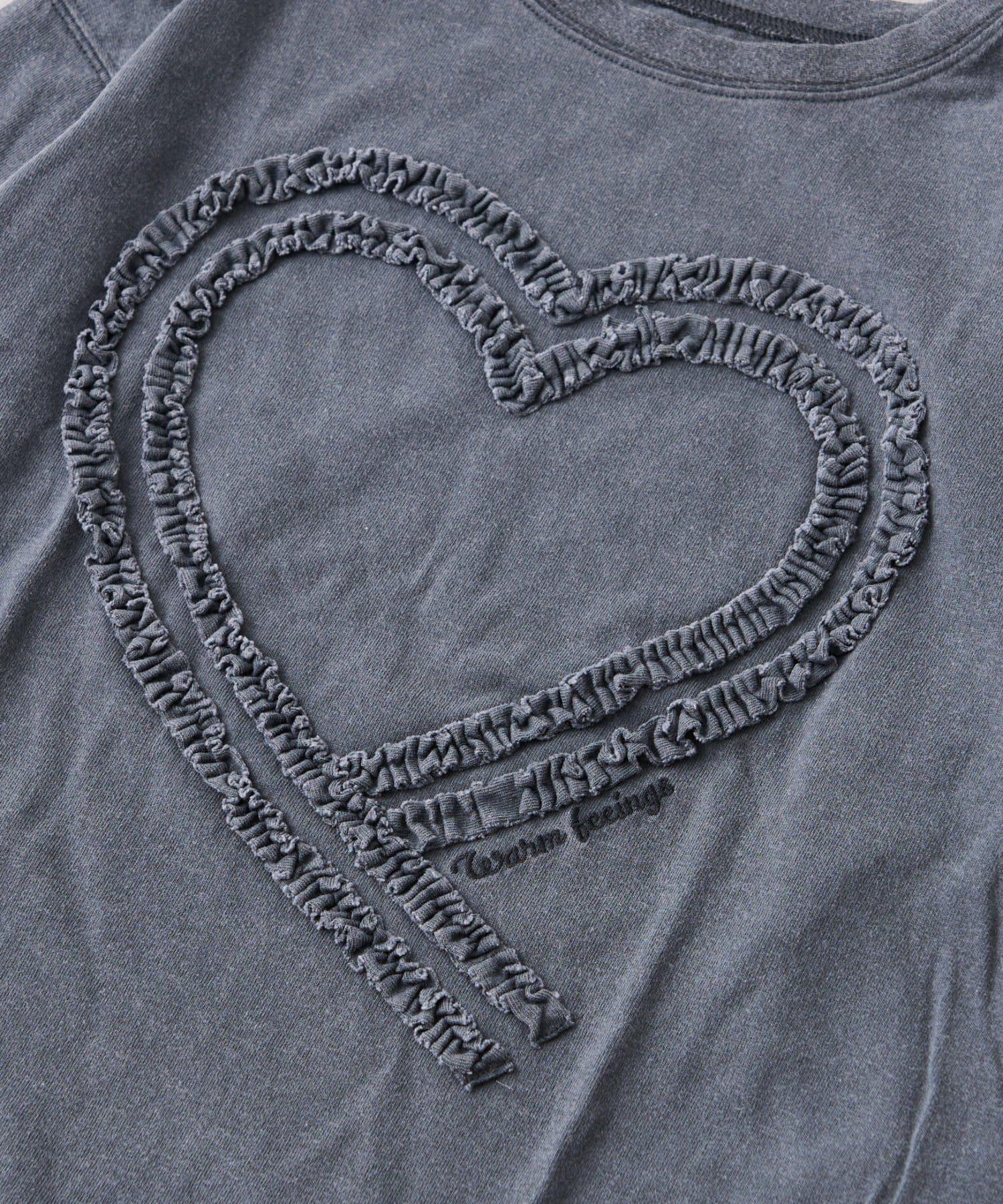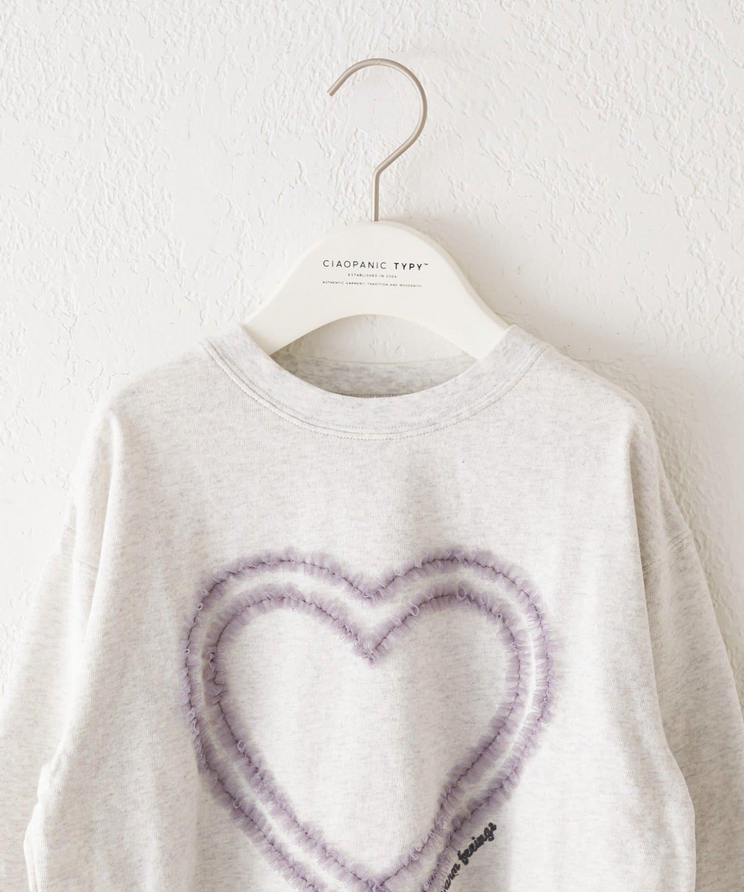 薄紗材質的心形圖案長款 T 恤,增添少女氣息。