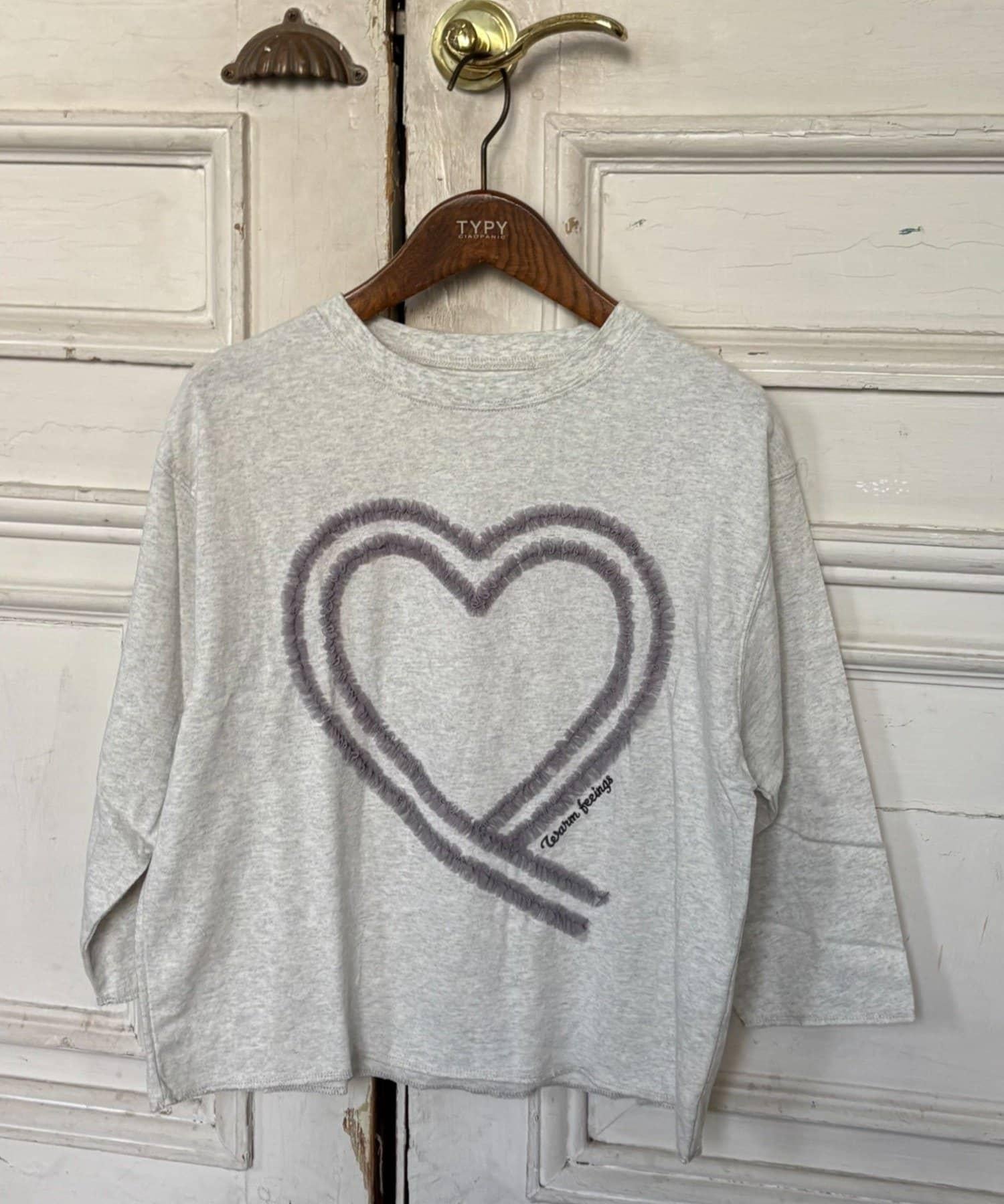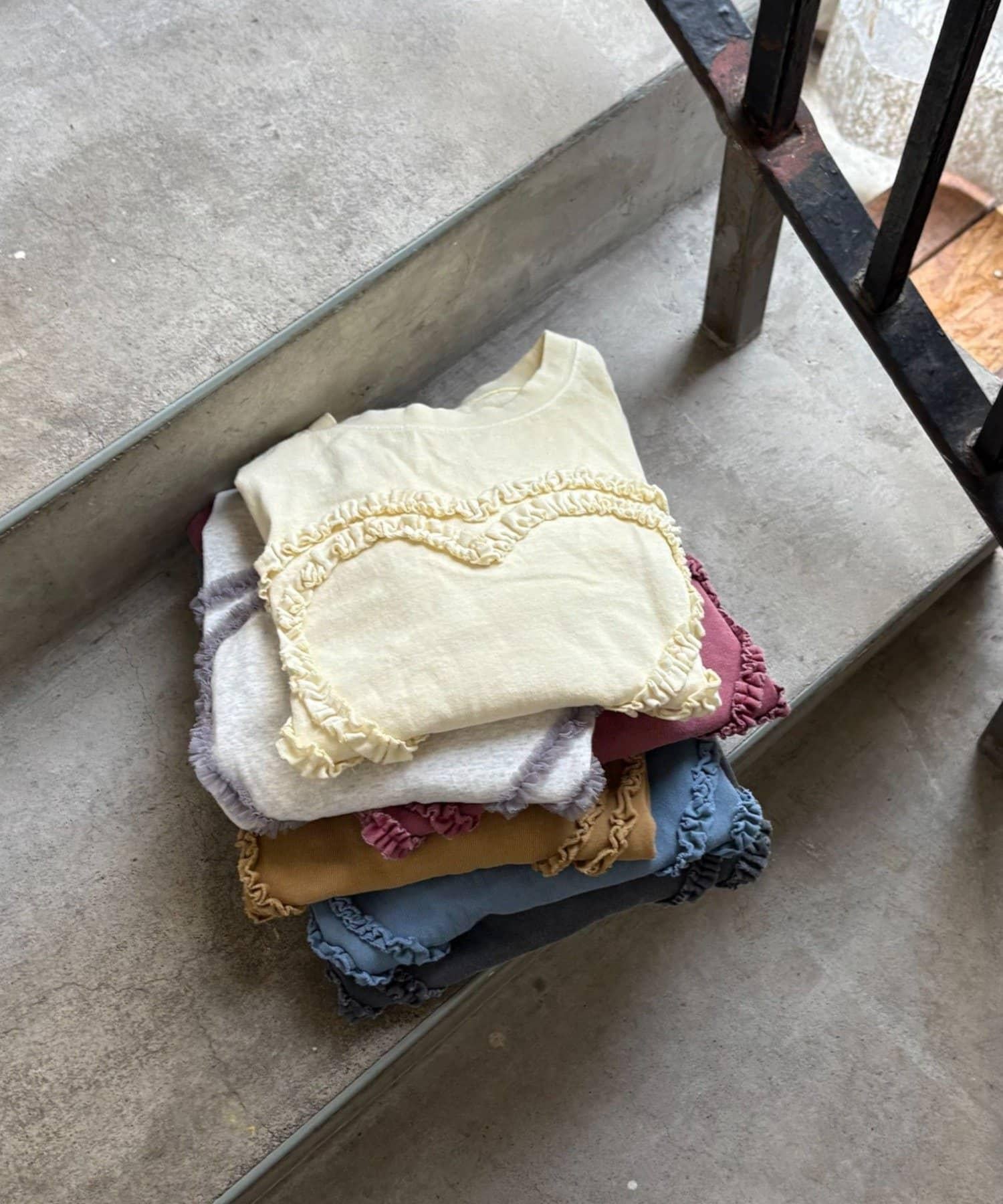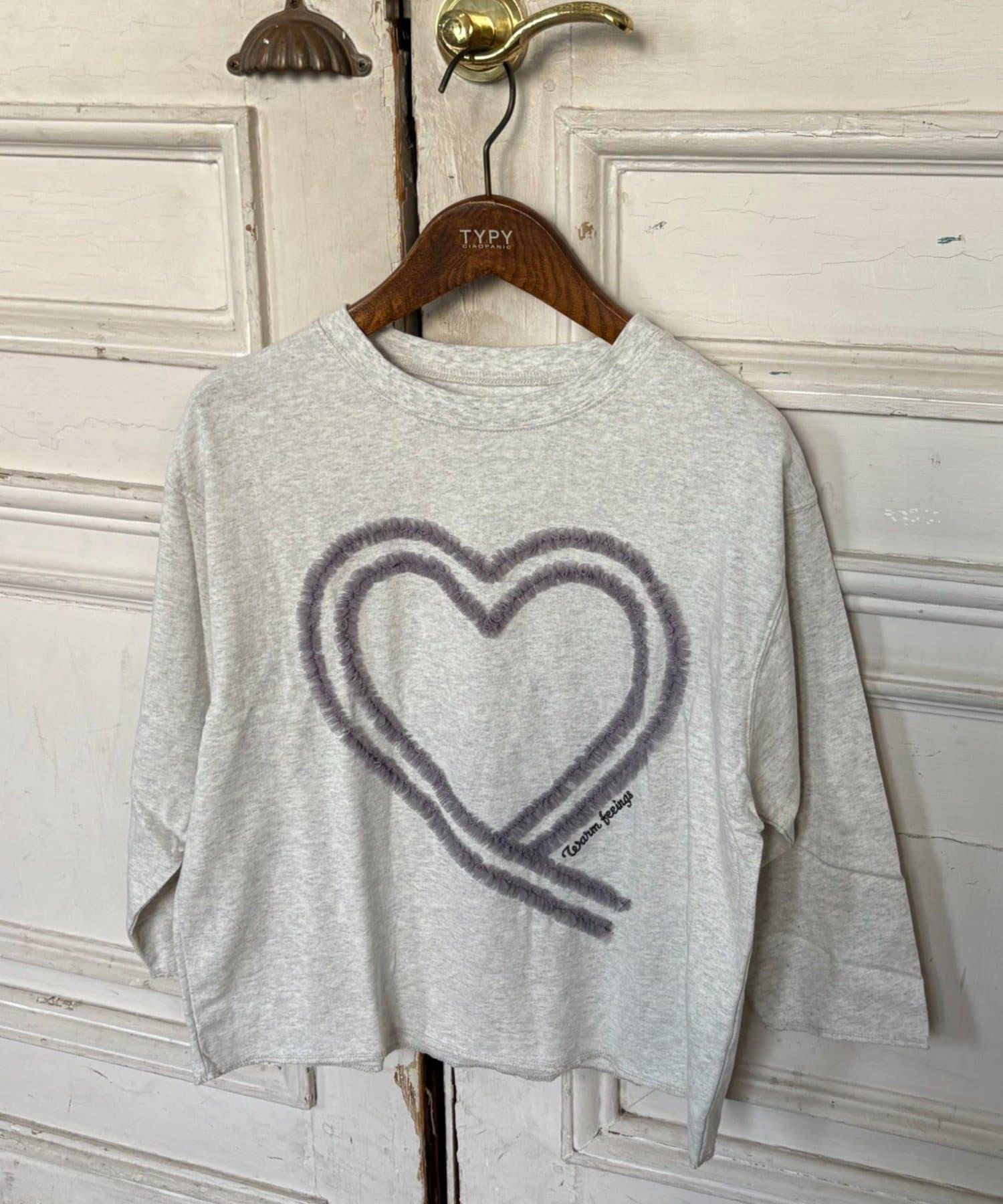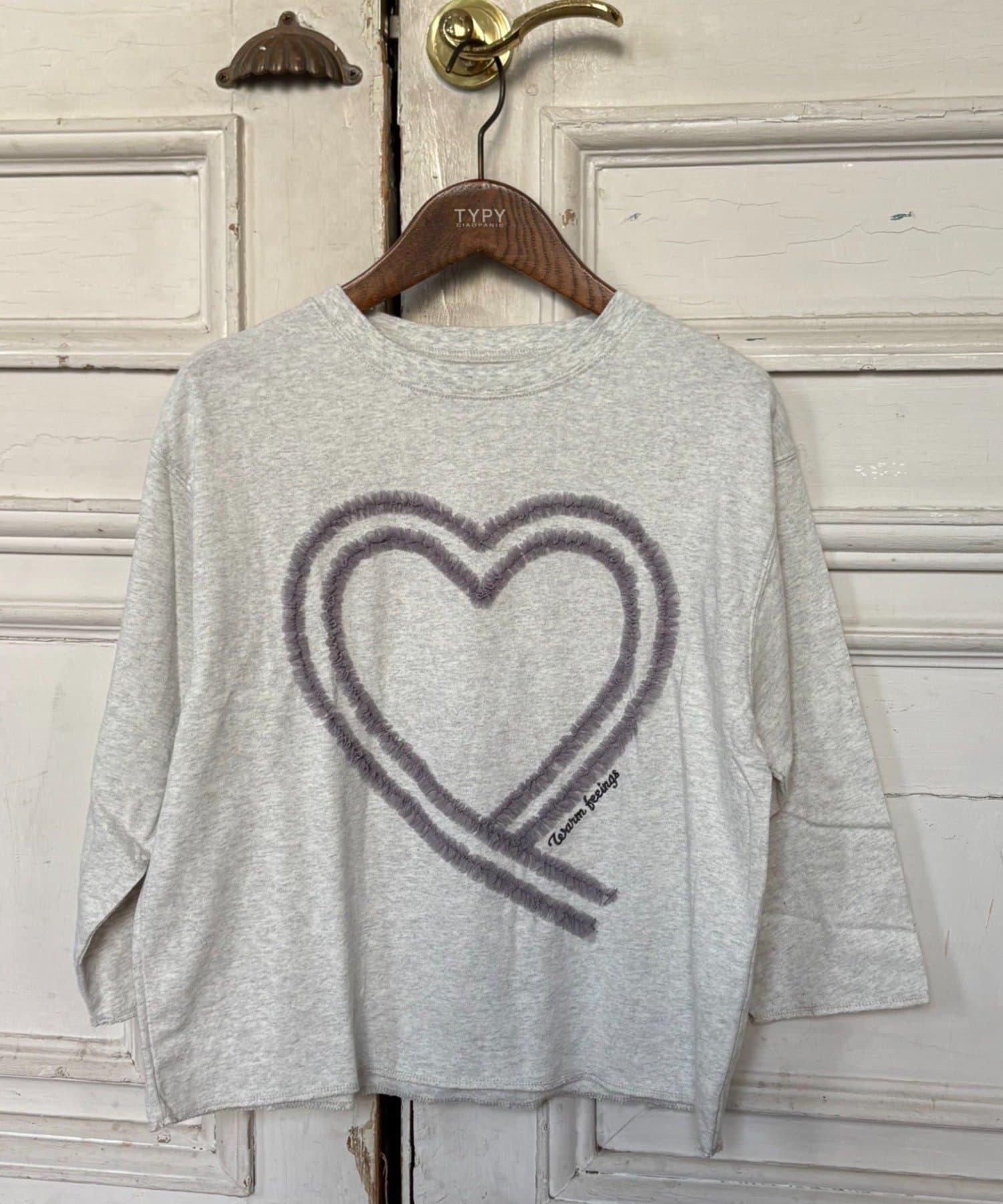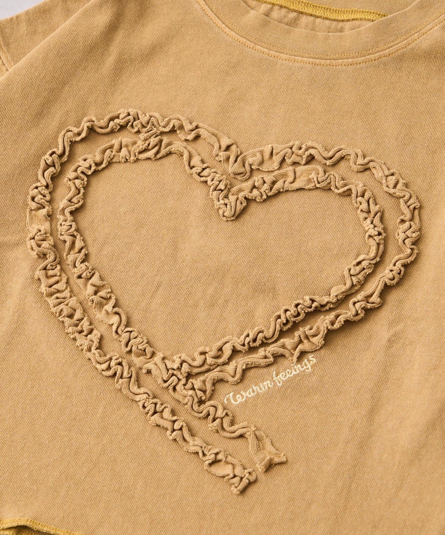 薄紗材質的心形圖案長款 T 恤,增添少女氣息。
