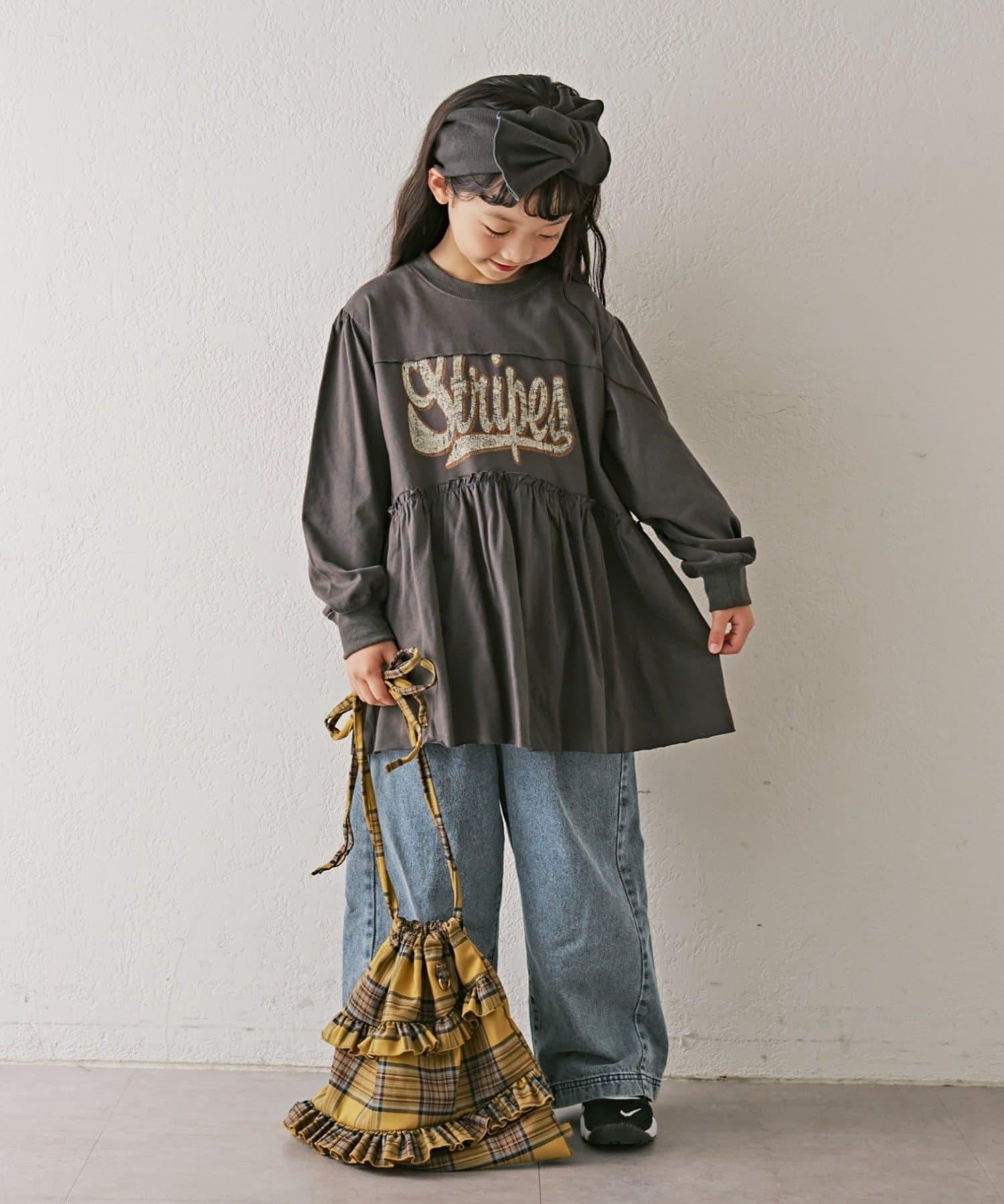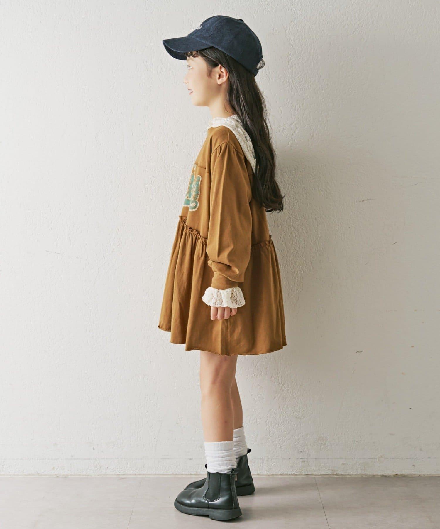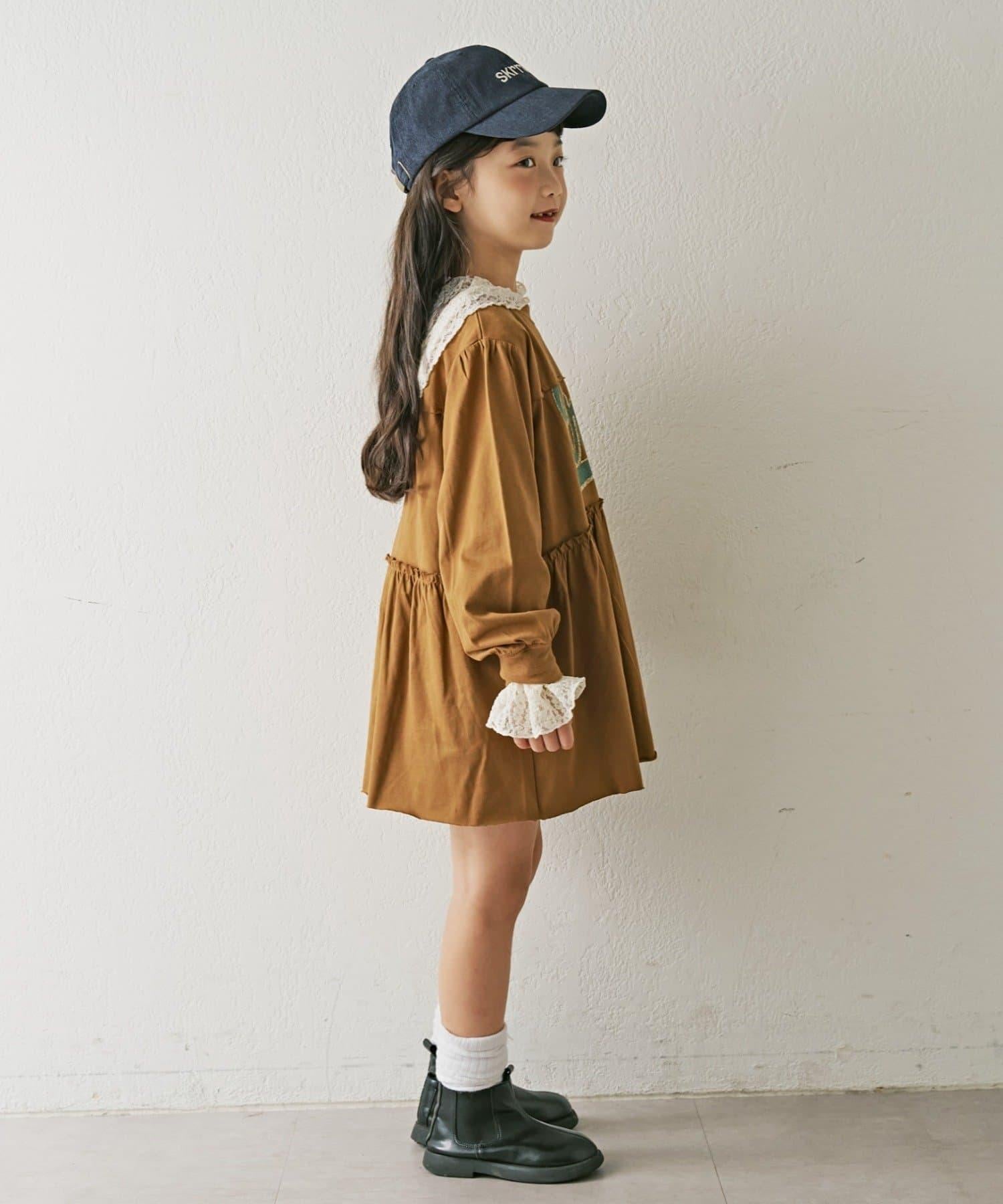 【KIDS】磨砂字母長袖束腰迷你連衣裙
