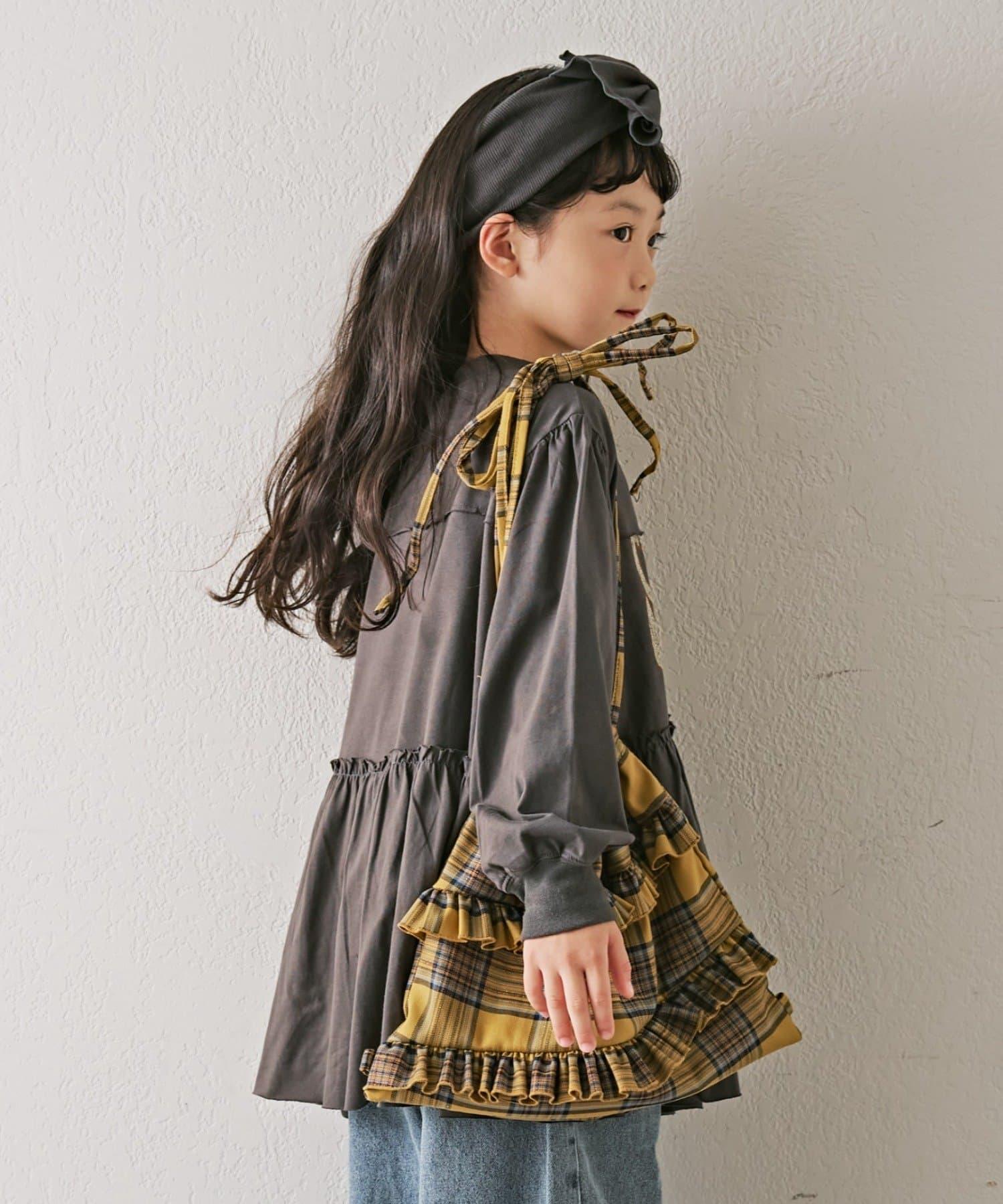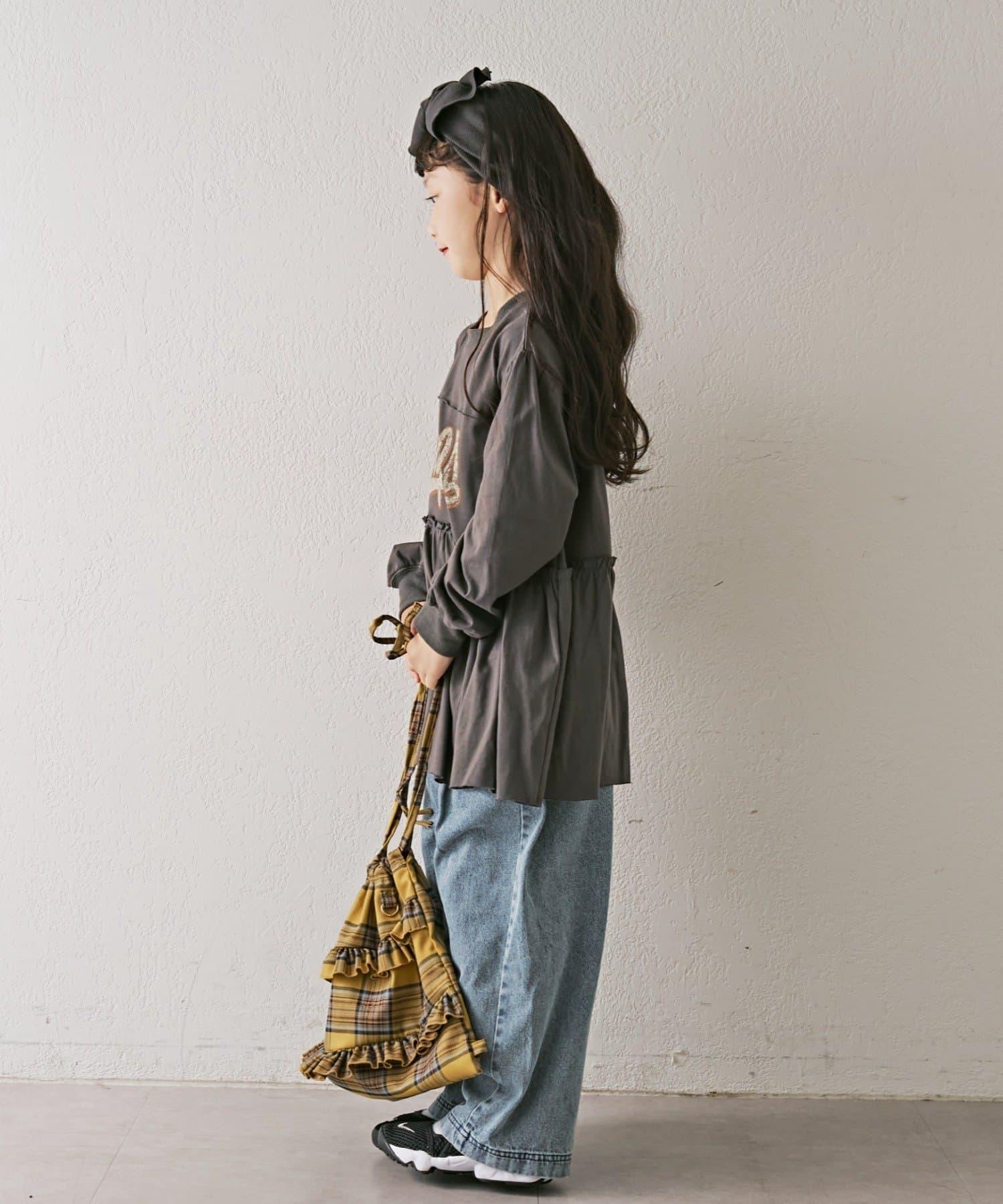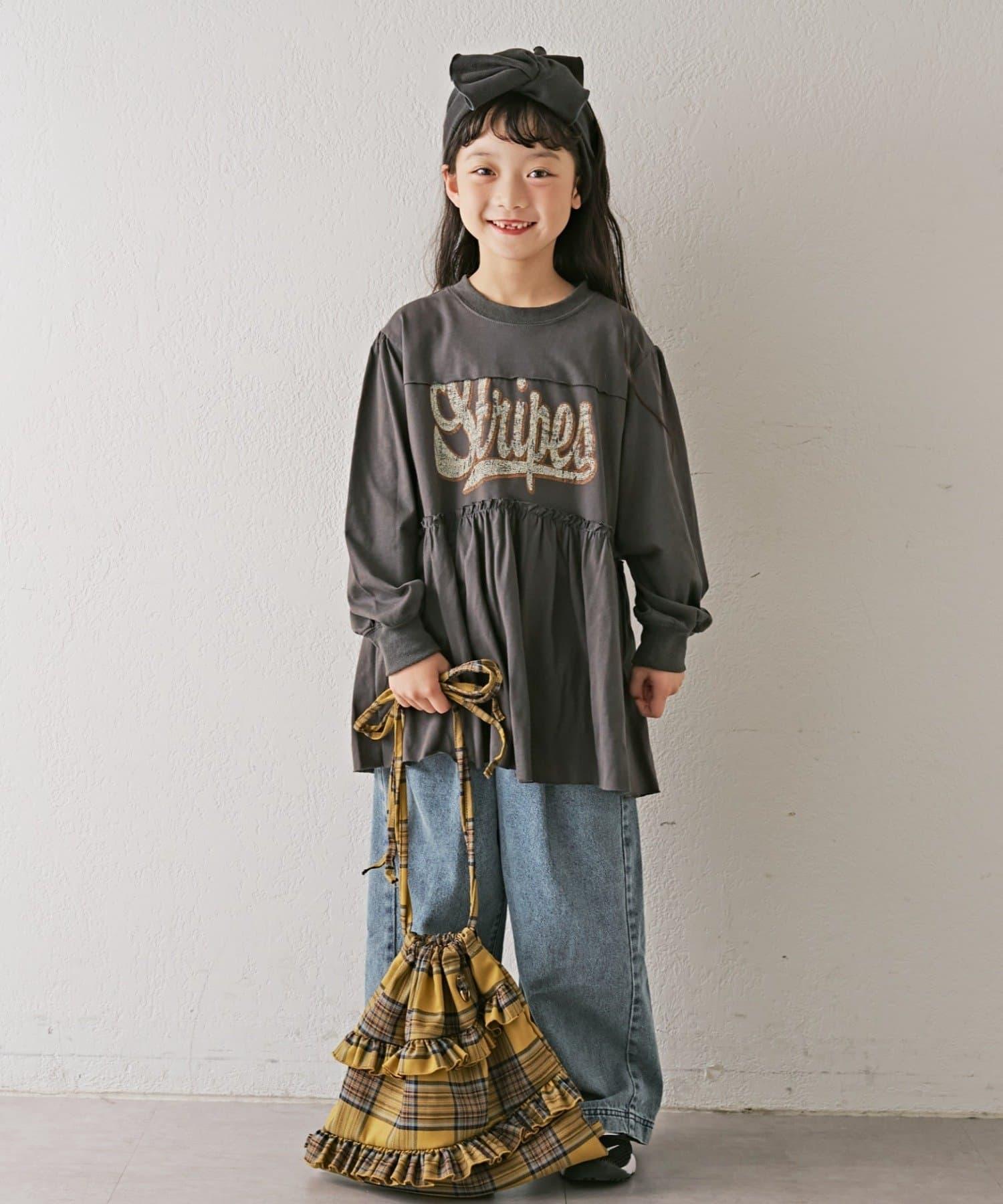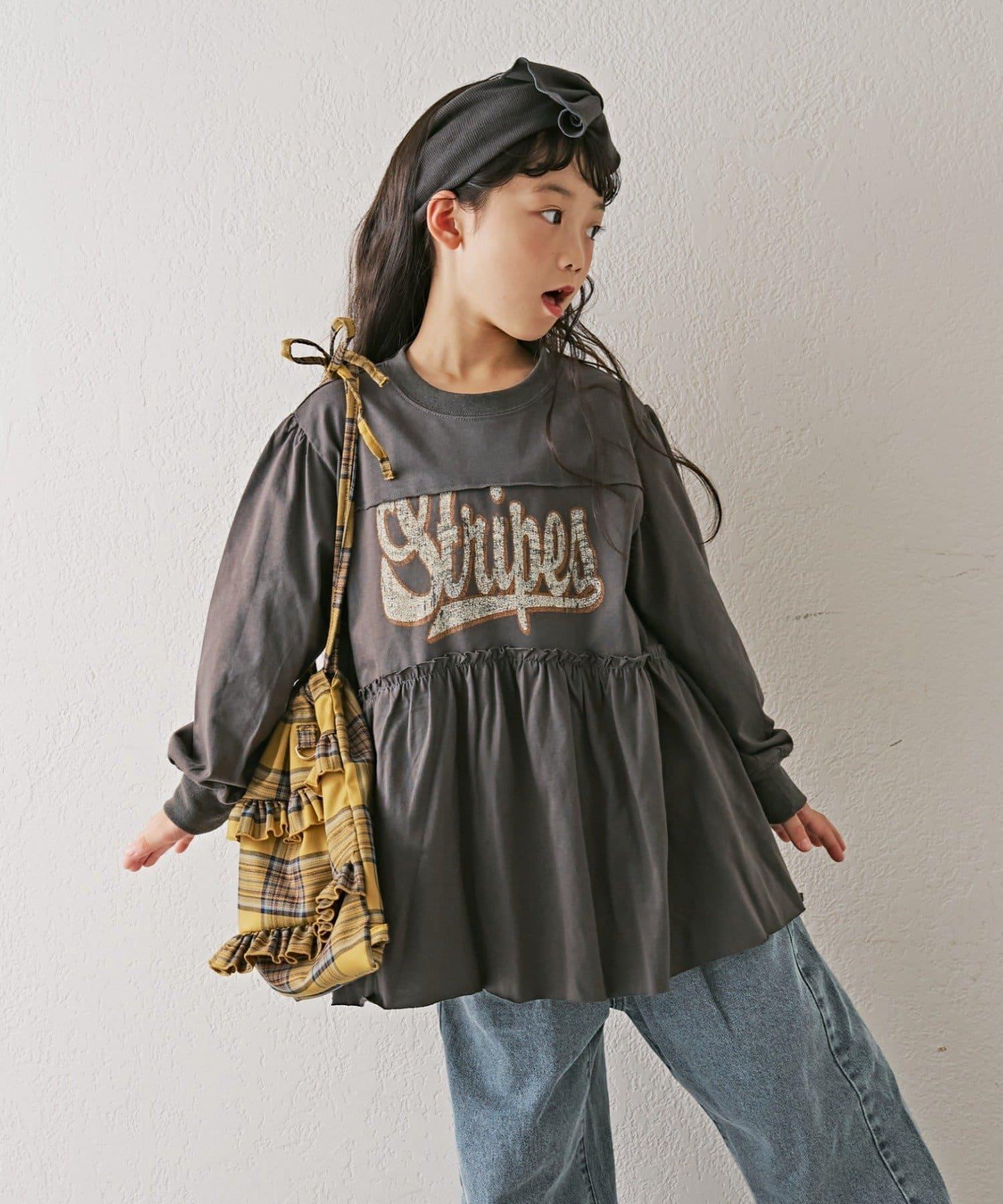 【KIDS】磨砂字母長袖束腰迷你連衣裙