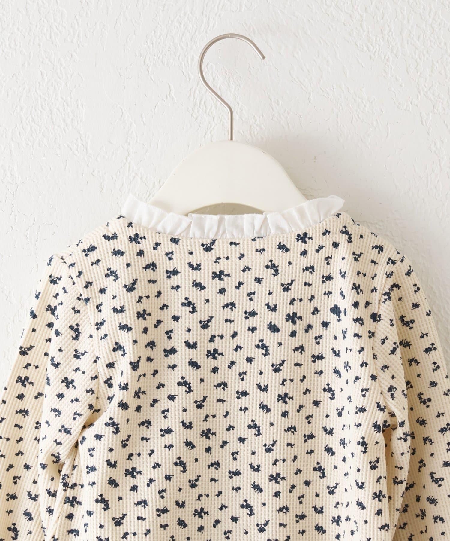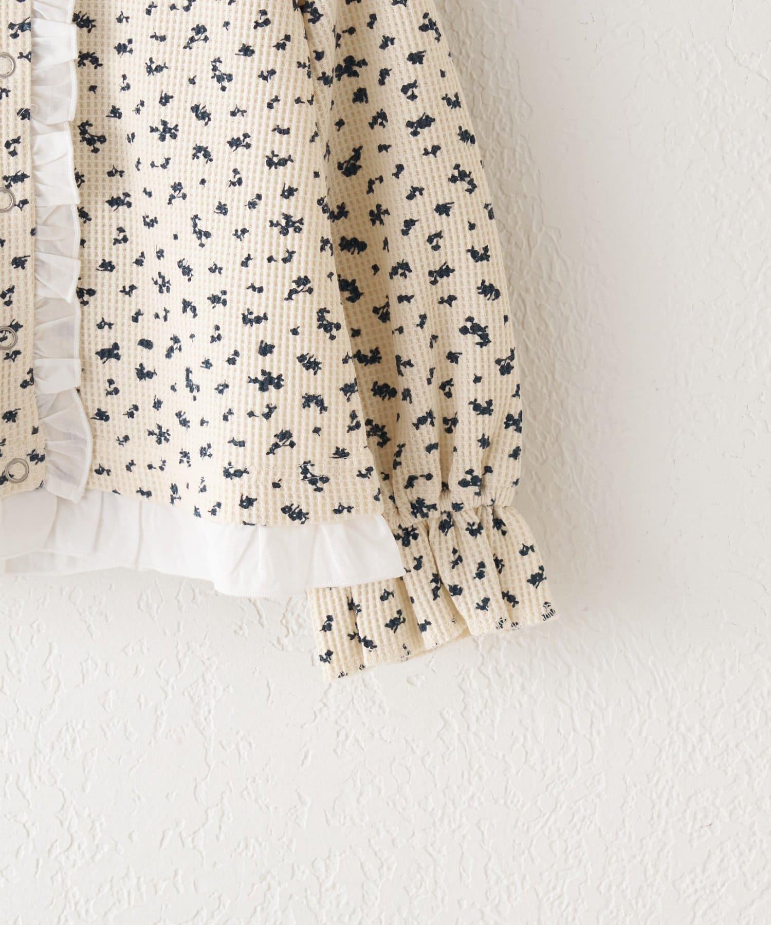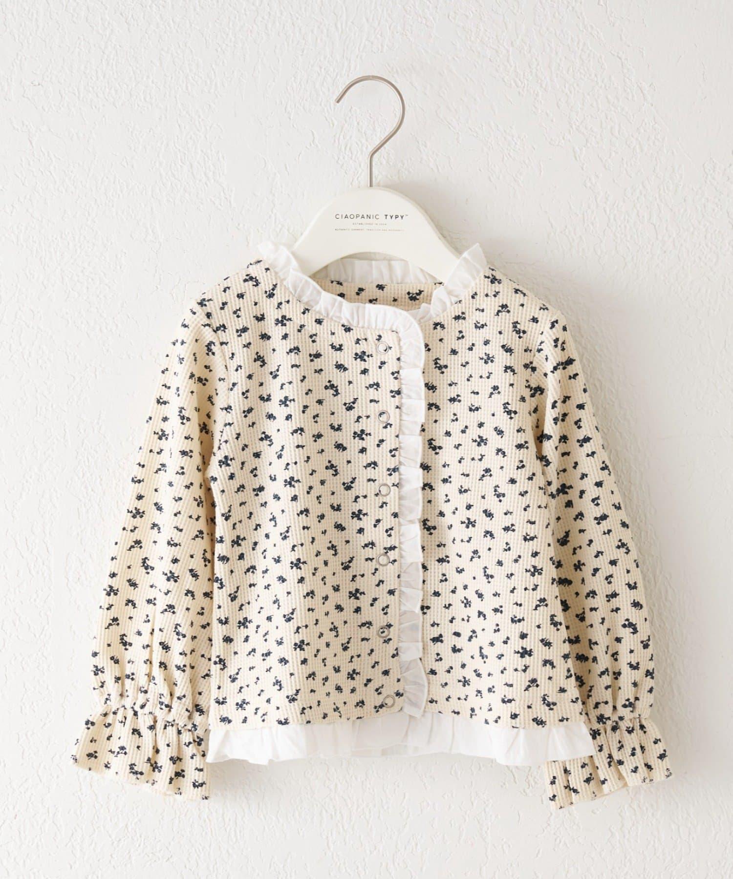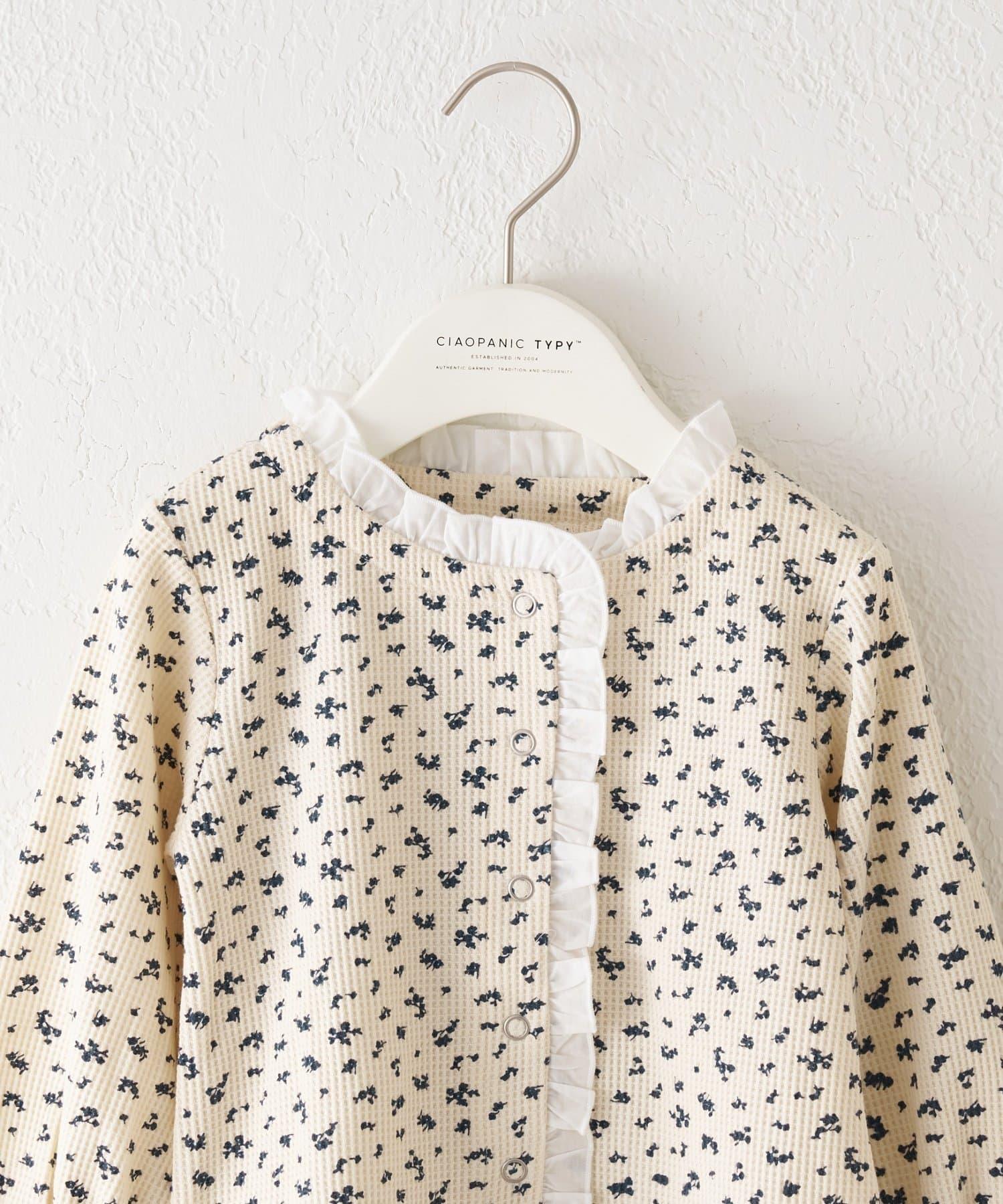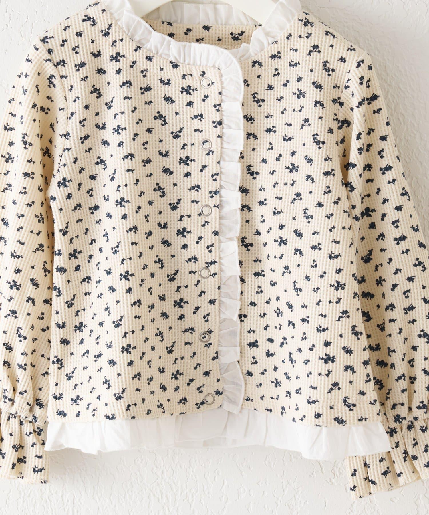 【KIDS】花卉印花荷葉邊華夫格按扣開衫