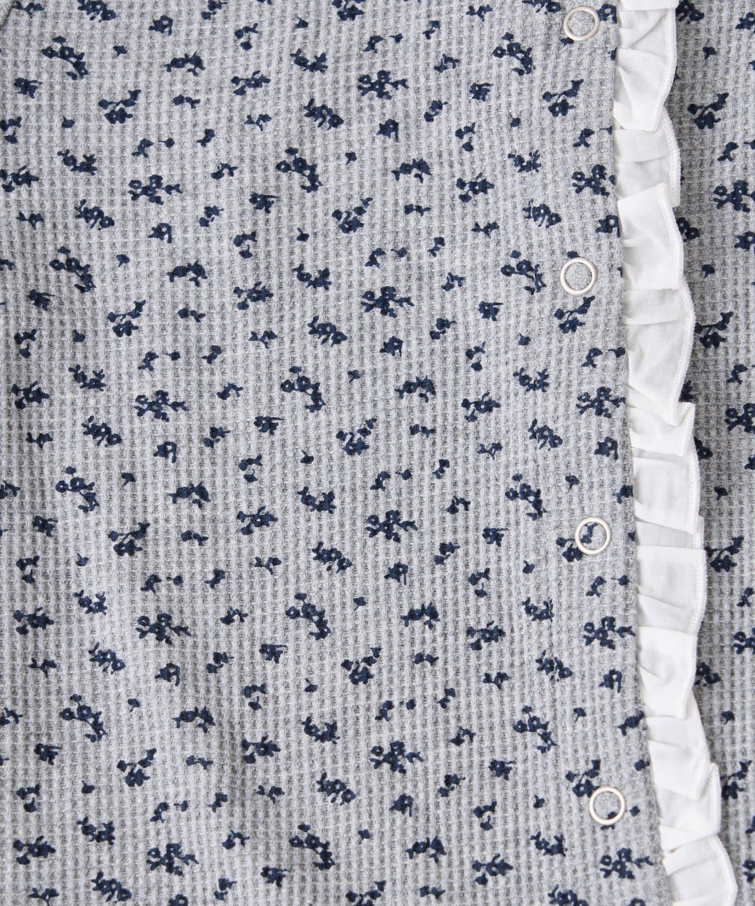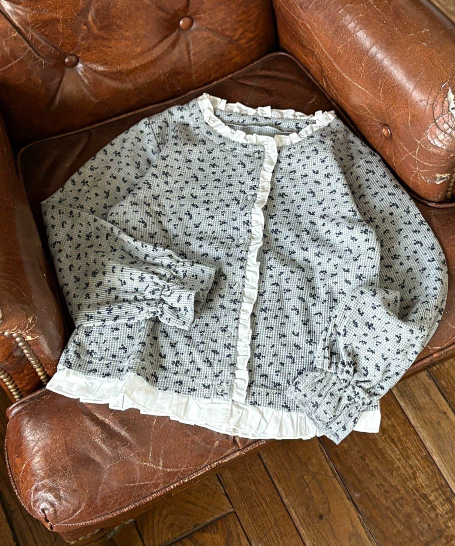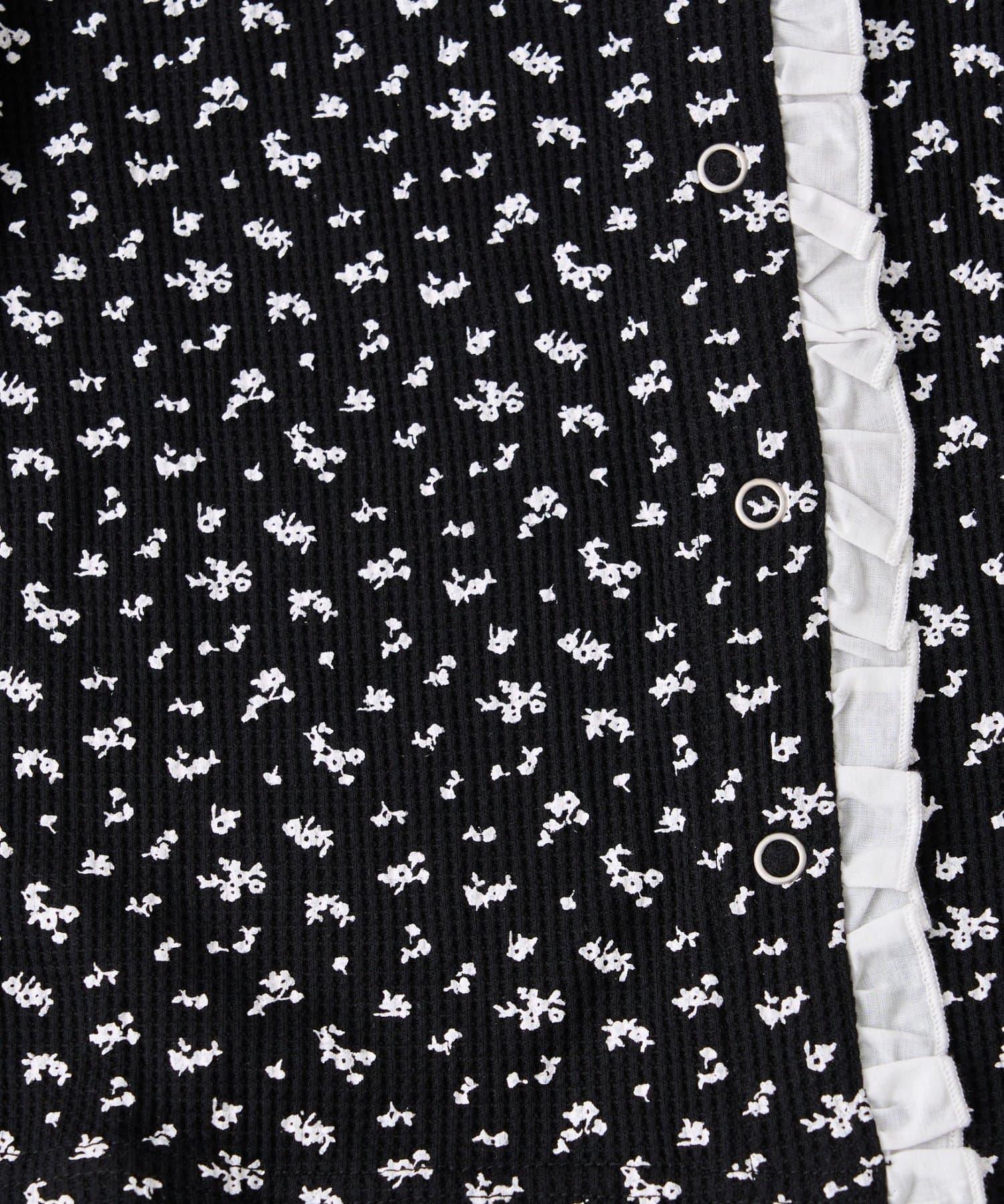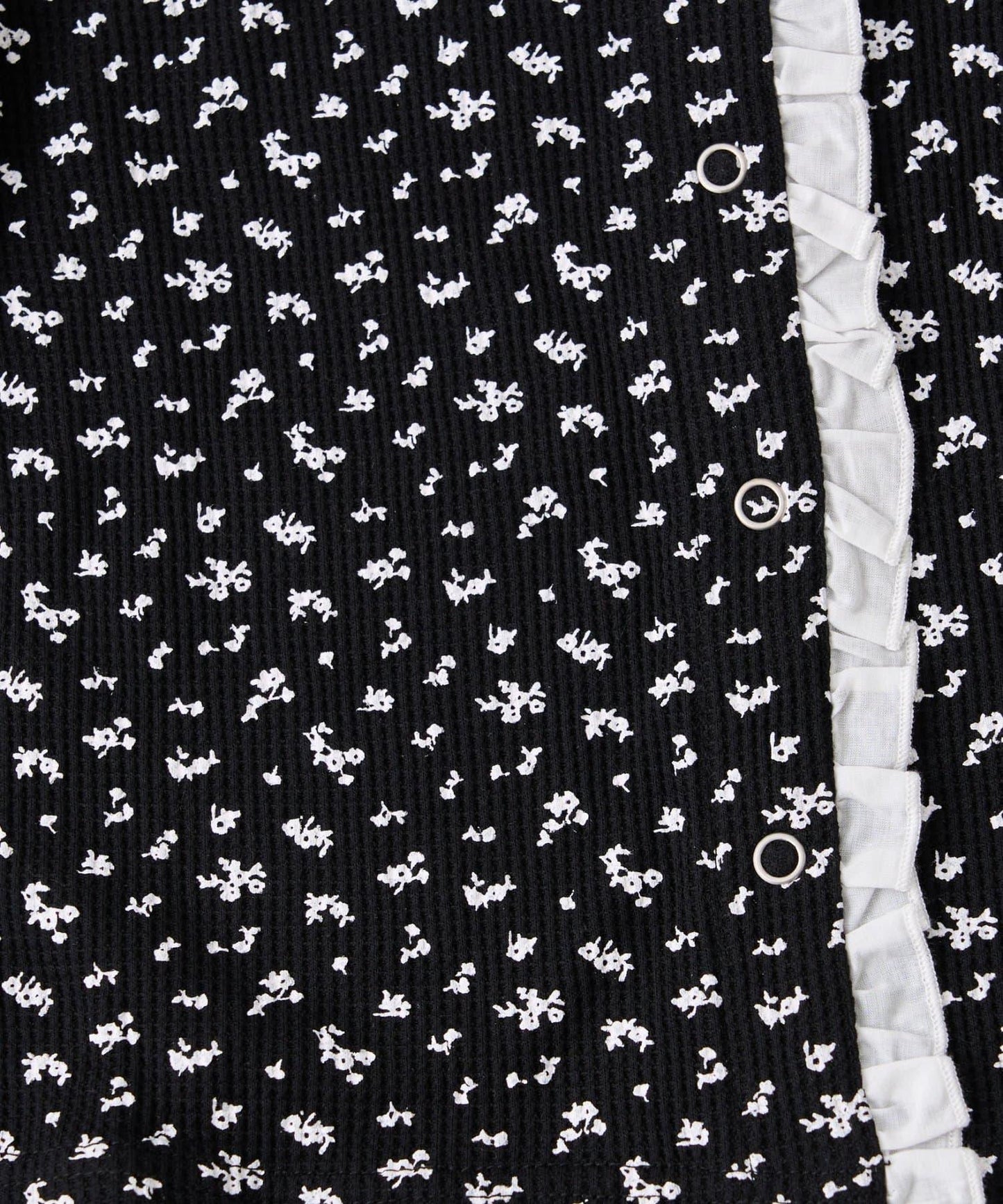 【KIDS】花卉印花荷葉邊華夫格按扣開衫